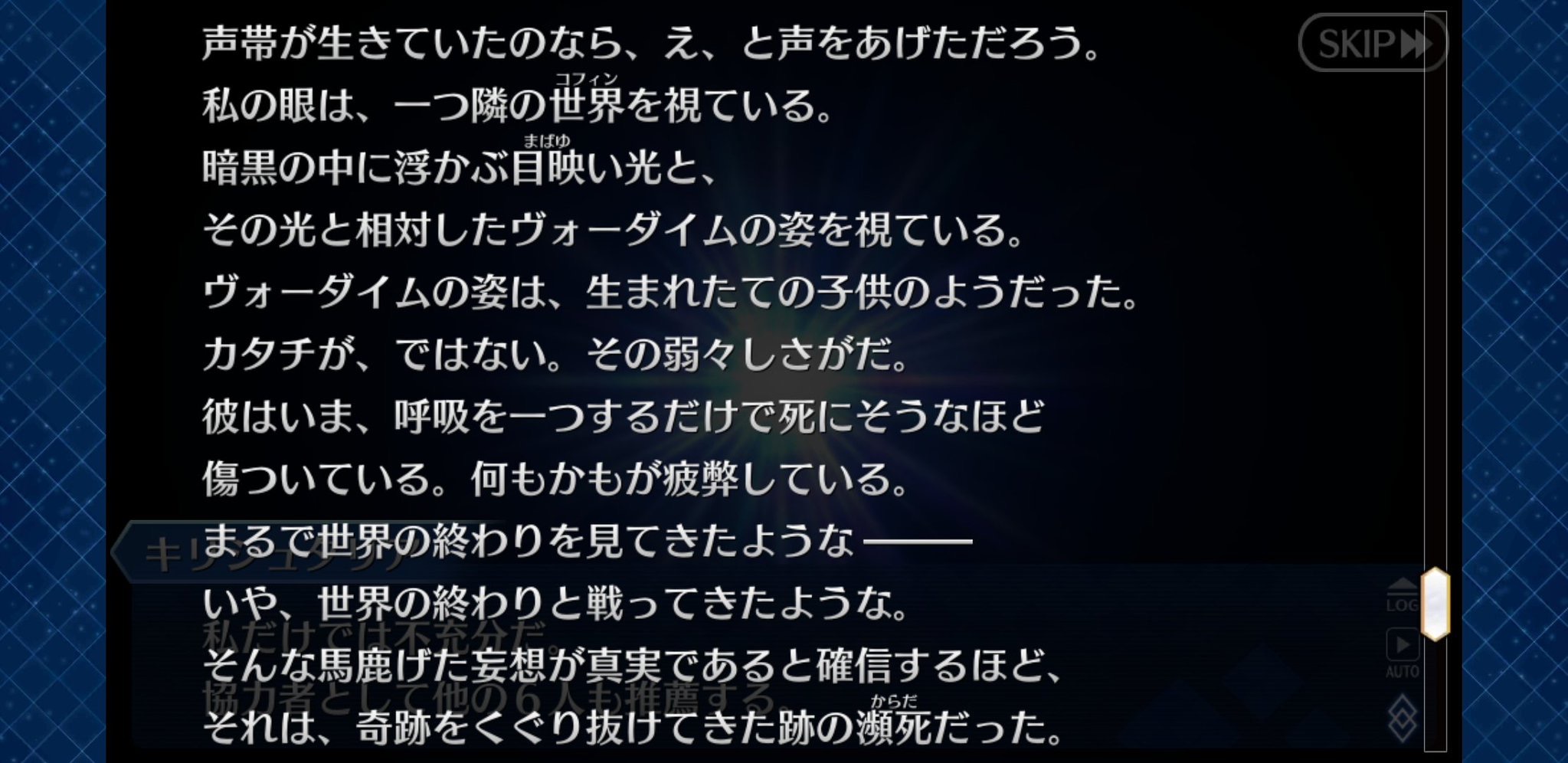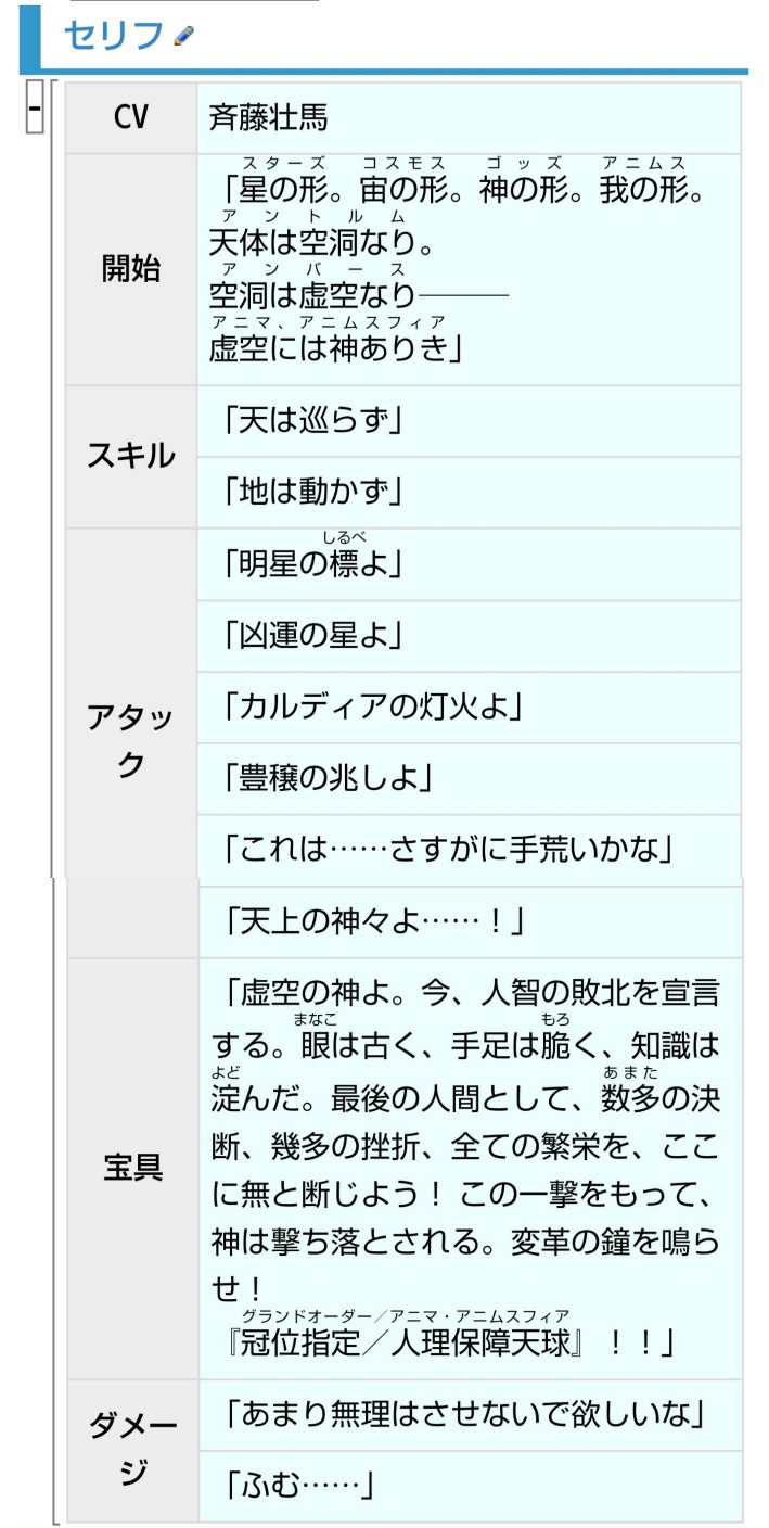 あるいは串刺しにした人間を燃料に燃やして太陽のふりをさせてるのかもしれない言峰が自分の仕事を「生まれ落ちる新たな生命の祝福」と言い、カドックがキリシュタリアに処刑されるかもと言ったら「その程度の人間であれば仕事が楽だった」と言っているのがなんか不穏すぎるよな…