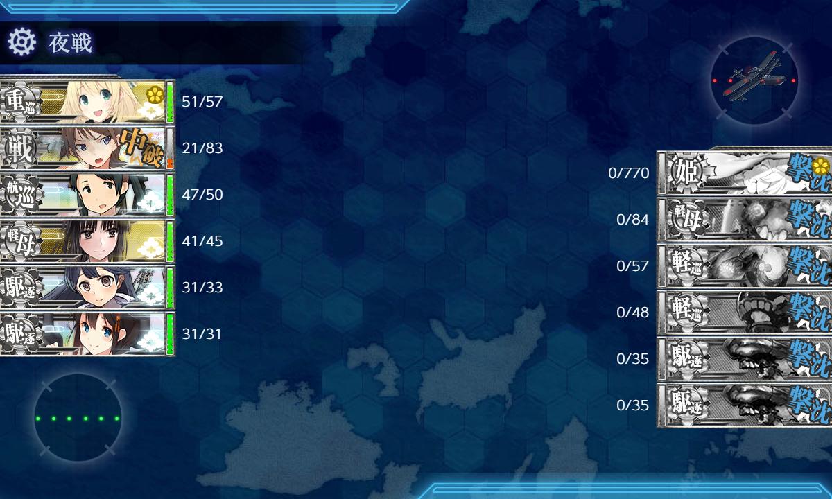 …個人的に制空は、命中や昼連撃での雑魚掃討・ボス削りの面からもなるだけ取ったほうがいいと思ってます。あと余裕があれば開幕空爆で打点を稼げますし…。ツ級も少ないので瑞雲もほぼ問題なく使えるはず…。