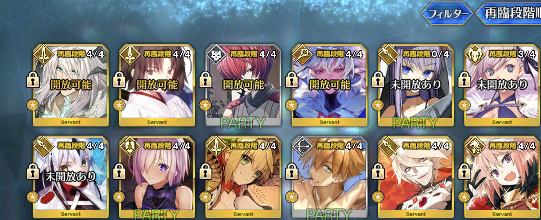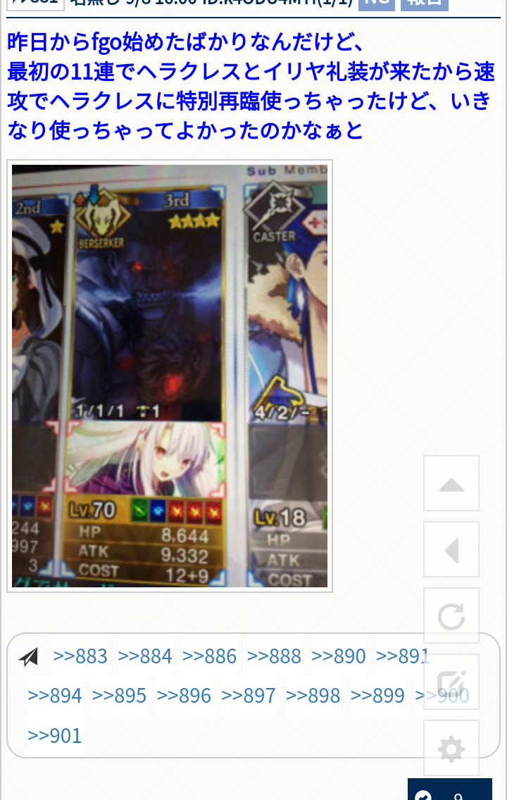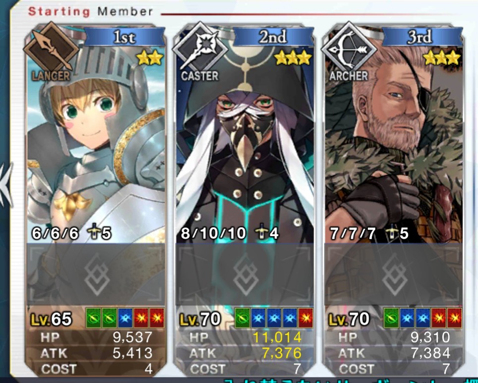 効率主義の人なら再臨素材云々で1.5部や2部のフリクエで落ちる素材を使う鯖を推すかもしれないけど、ガチ初心者なら素材集めの為に本編進めたりイベやるための戦力自体が足りないのだから気にするな>>881