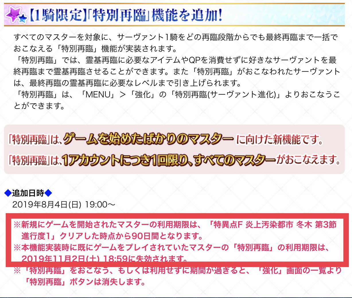 たしかに特別再臨は星五に使った方が得だけど、特別再臨期間中に星五が当たるって確定してる訳じゃないからね(スタートから一部攻略までの三ヶ月で結局一人も星五が来なかった)