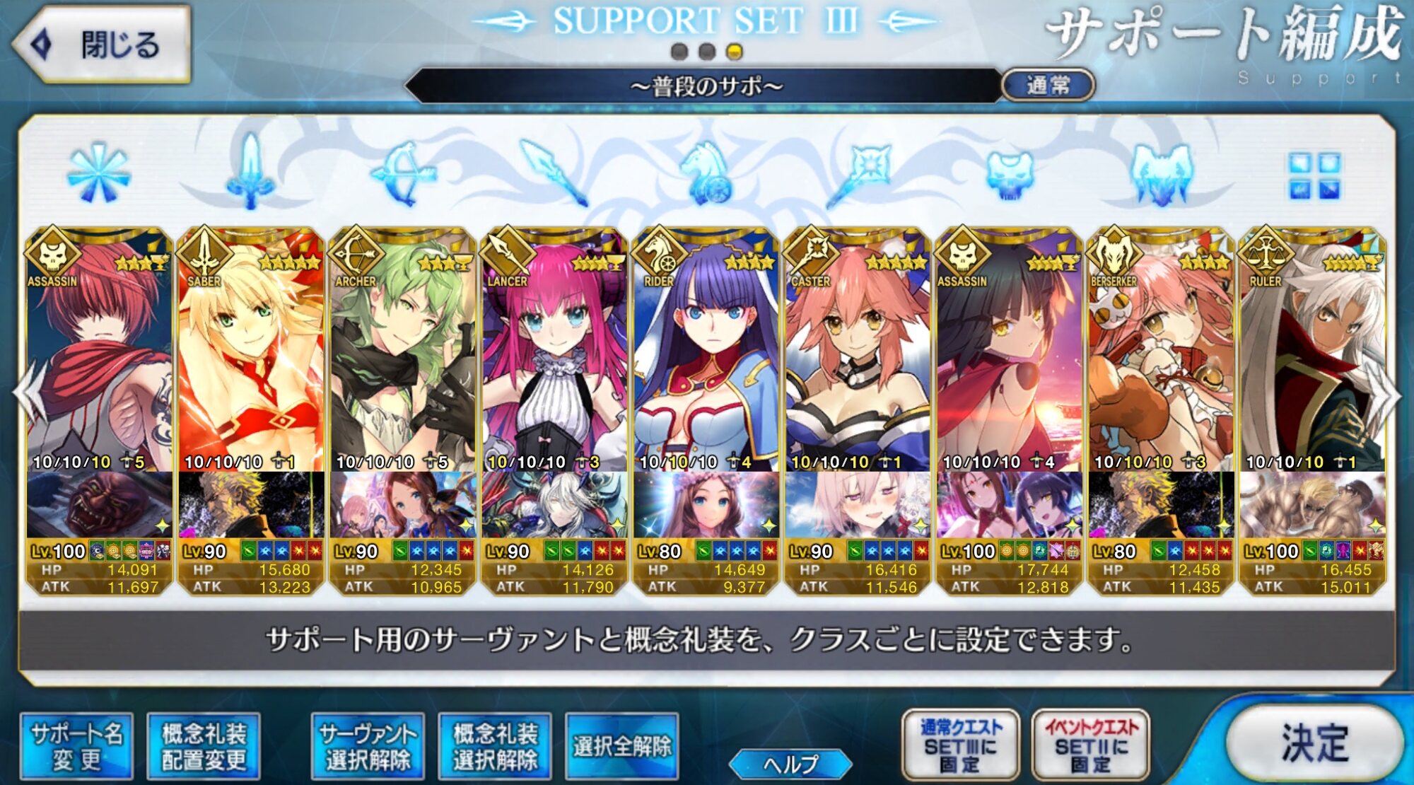 初心者の方は未育成でも構わないのでサポ欄は埋めれる所は埋めましょう