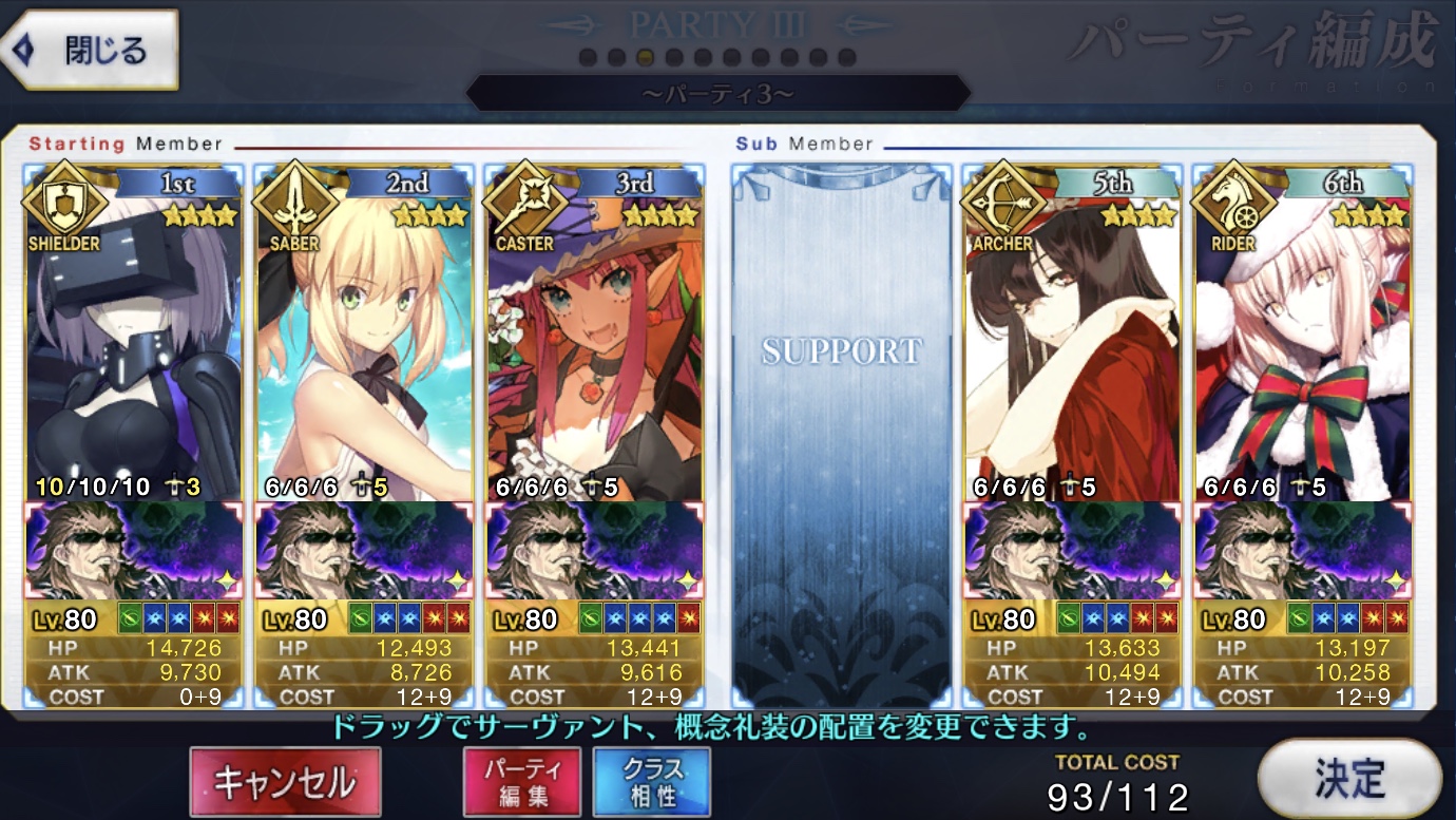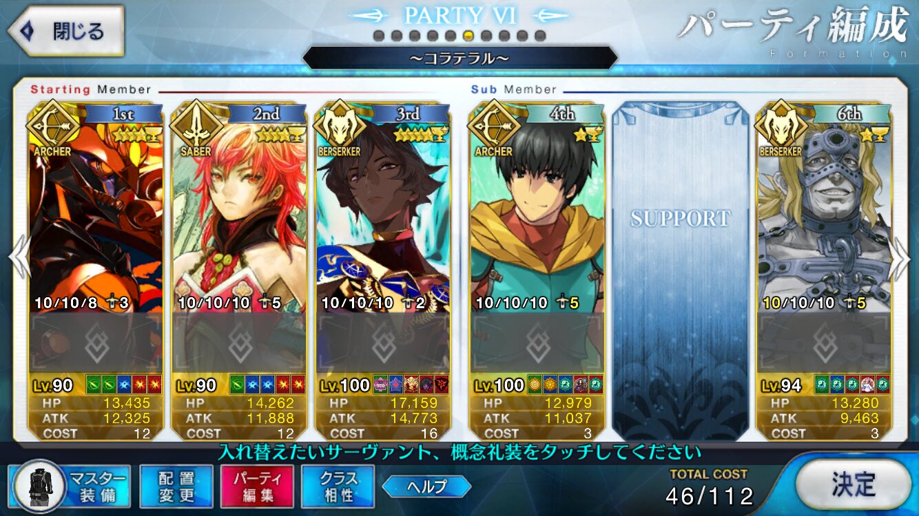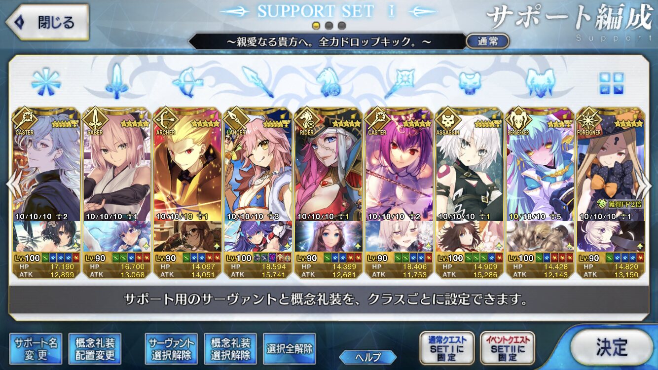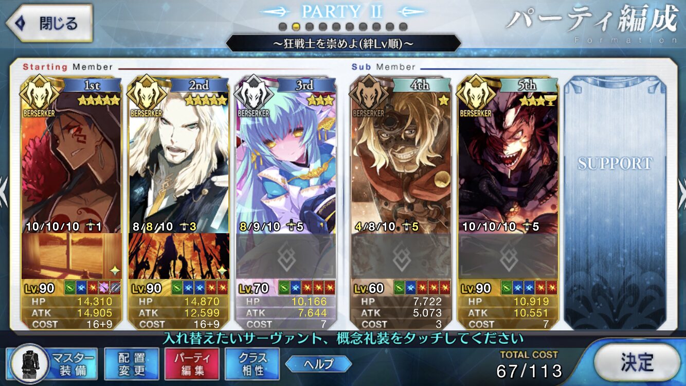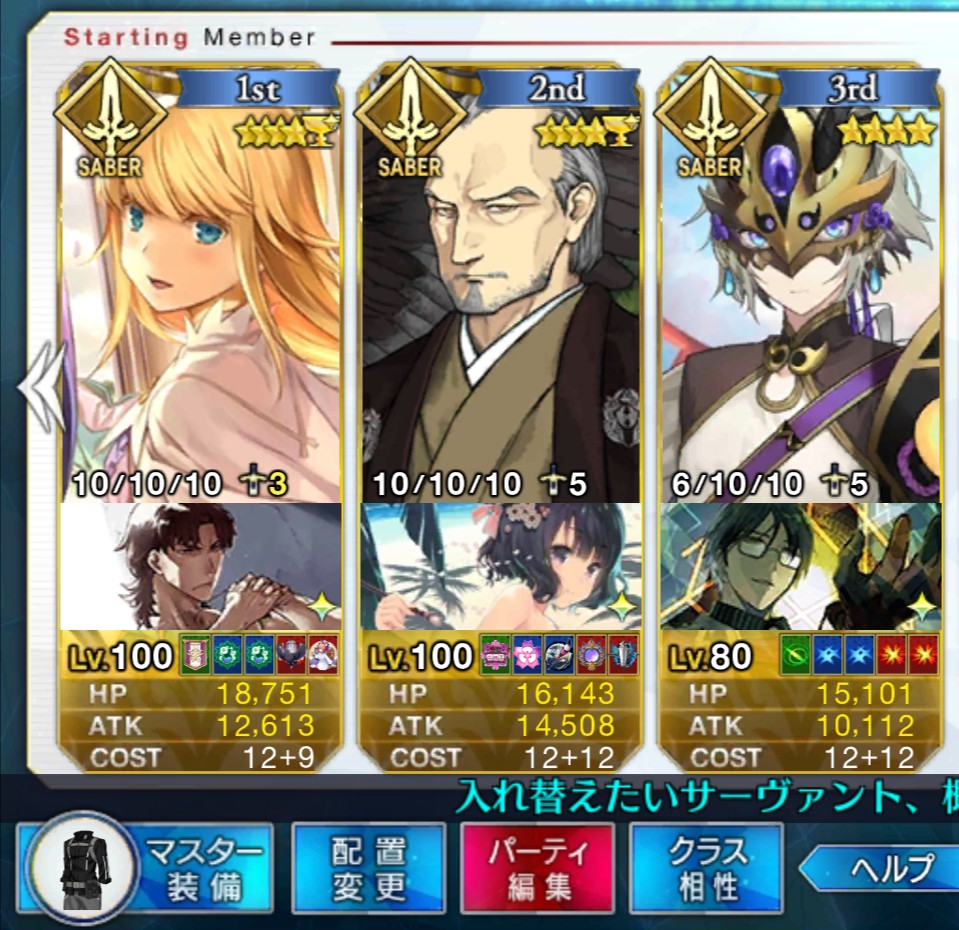 槍枠にレオニダス、騎枠にゲオルギウス(両方Lv.1かつ礼装なし)を置くとすごく助かるベテラン勢が多いぞ! フレポもちょっといい感じに稼いでくれるはずだ!パイセンの講義を真面目に聞いて息子を増やします