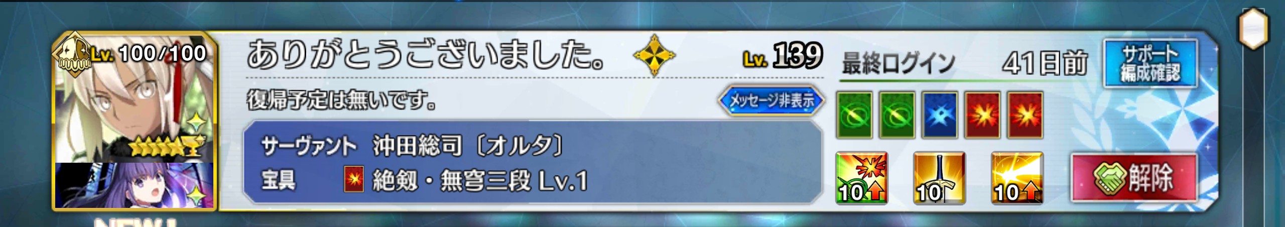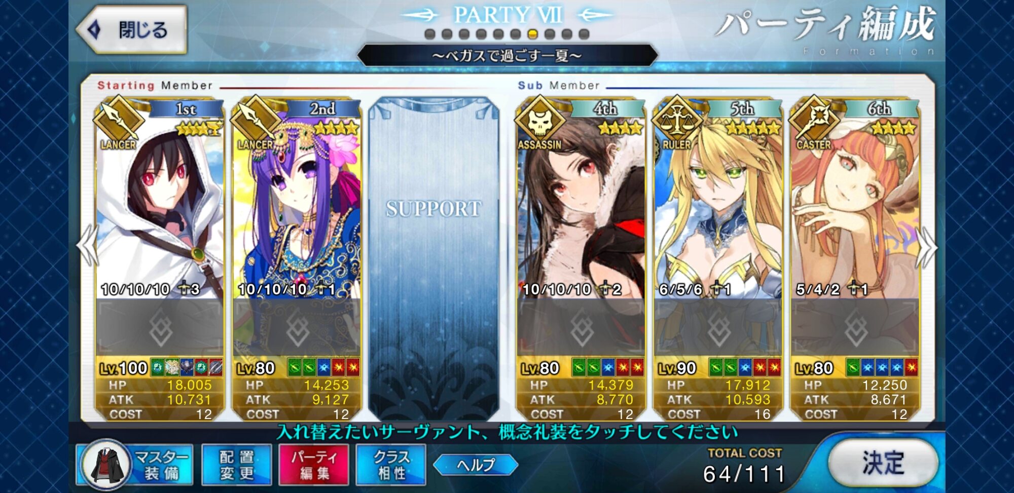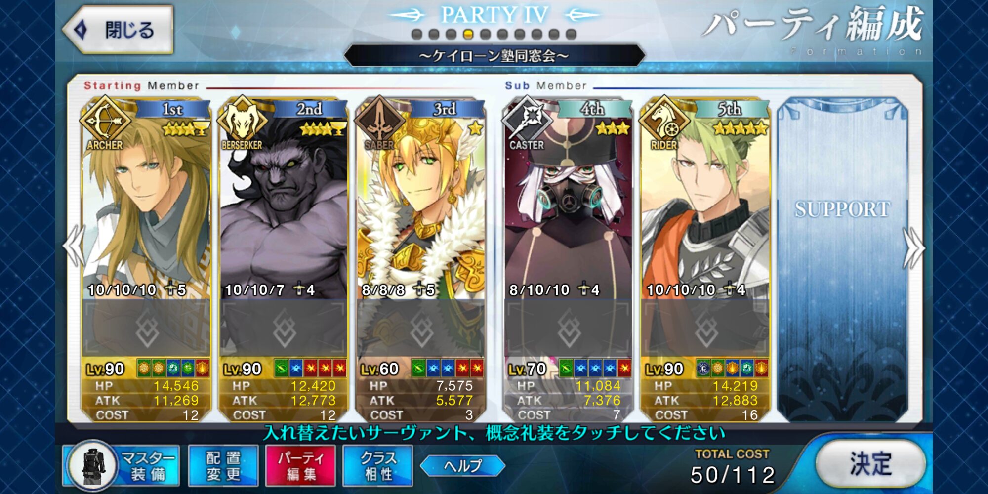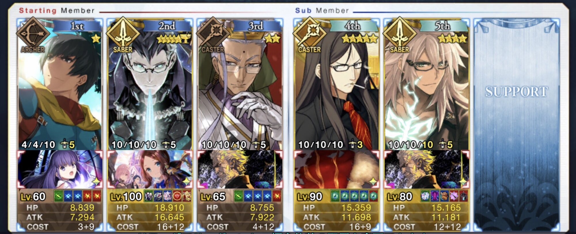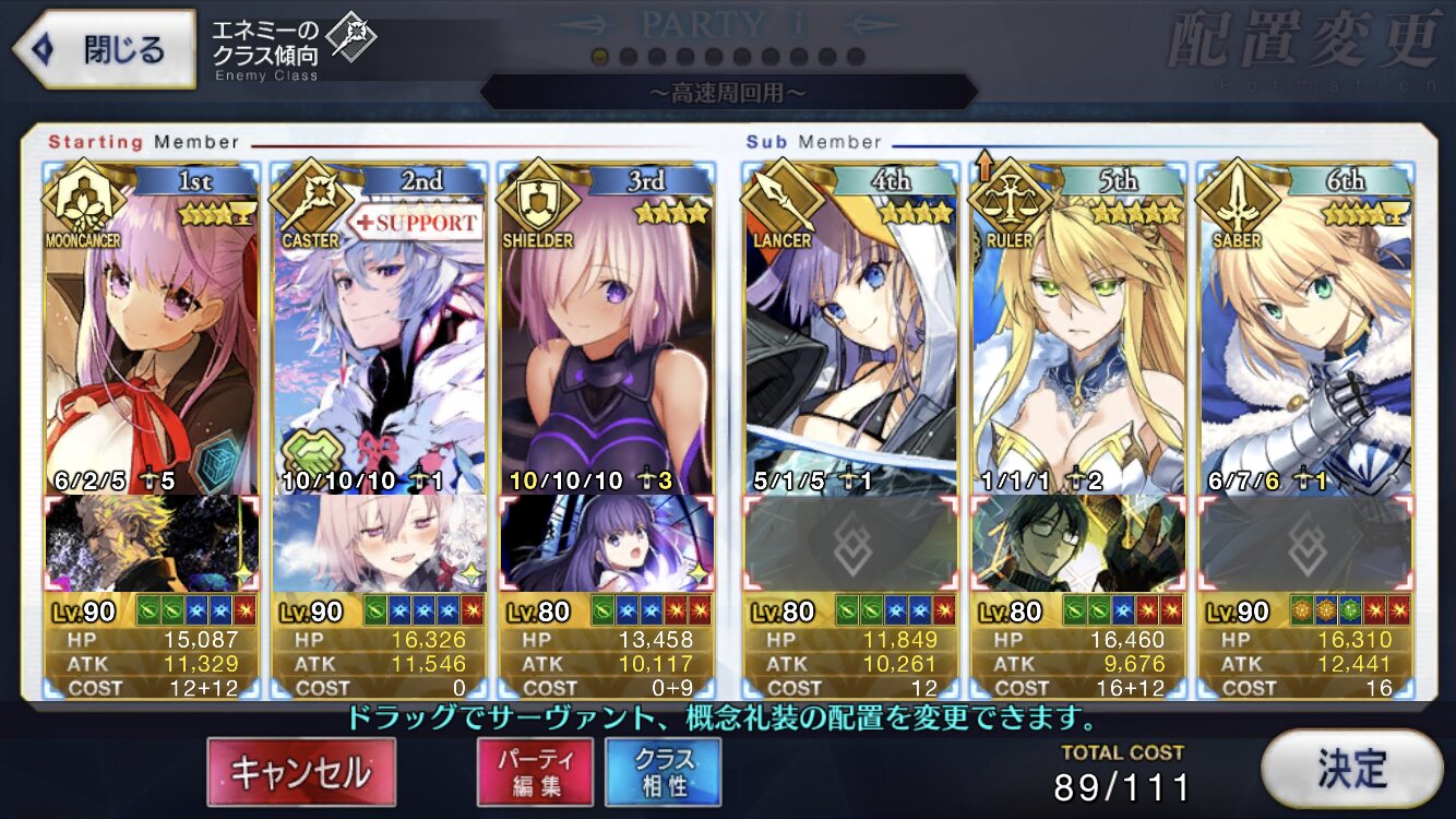 槍枠にレオニダス、騎枠にゲオルギウス(両方Lv.1かつ礼装なし)を置くとすごく助かるベテラン勢が多いぞ! フレポもちょっといい感じに稼いでくれるはずだ!パイセンの講義を真面目に聞いて息子を増やします