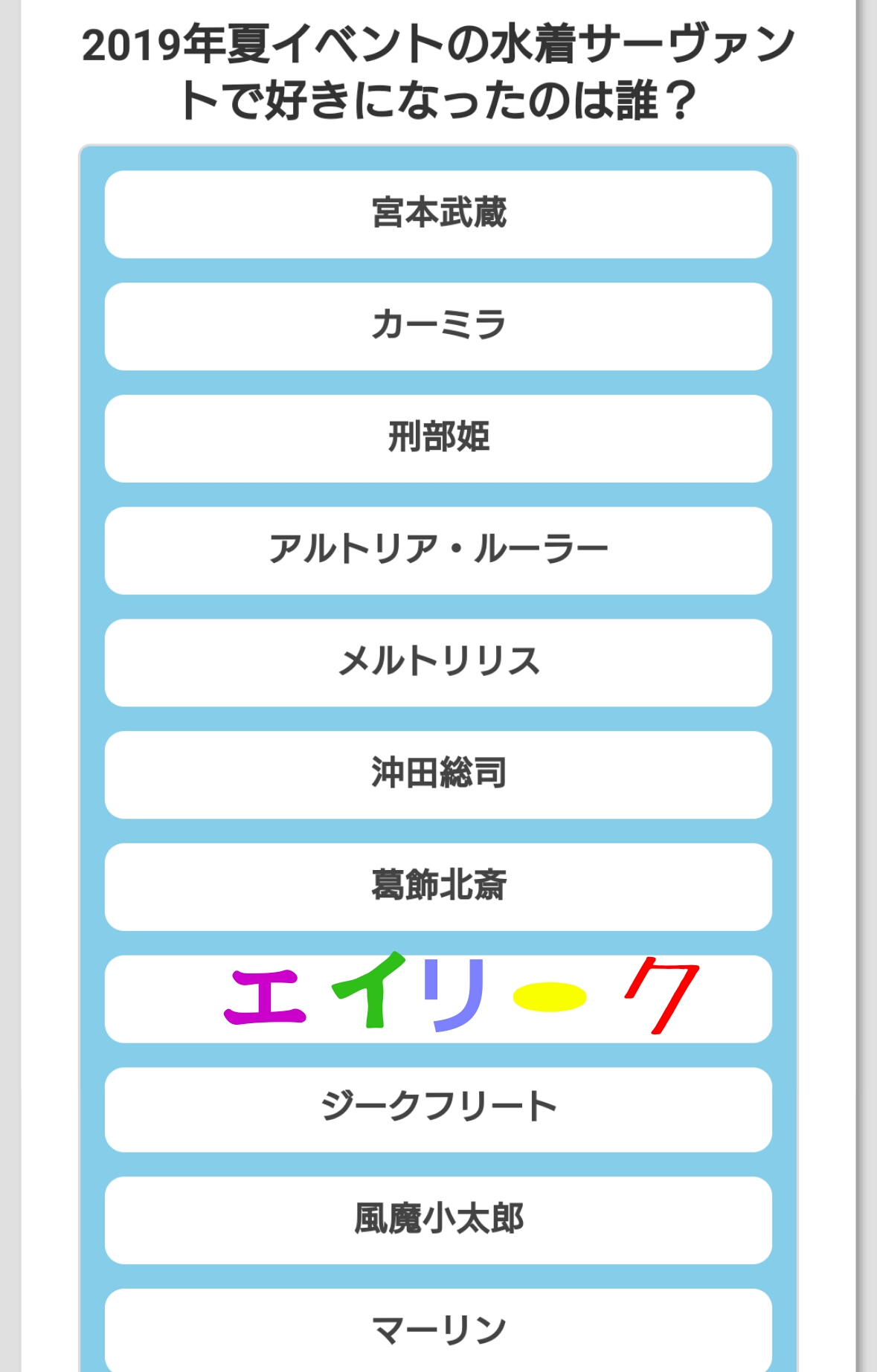 水着イベでマーリンきちゃったから、むしろマーリン以外が来る予感しかしねぇ……(爆死した人並の感想)