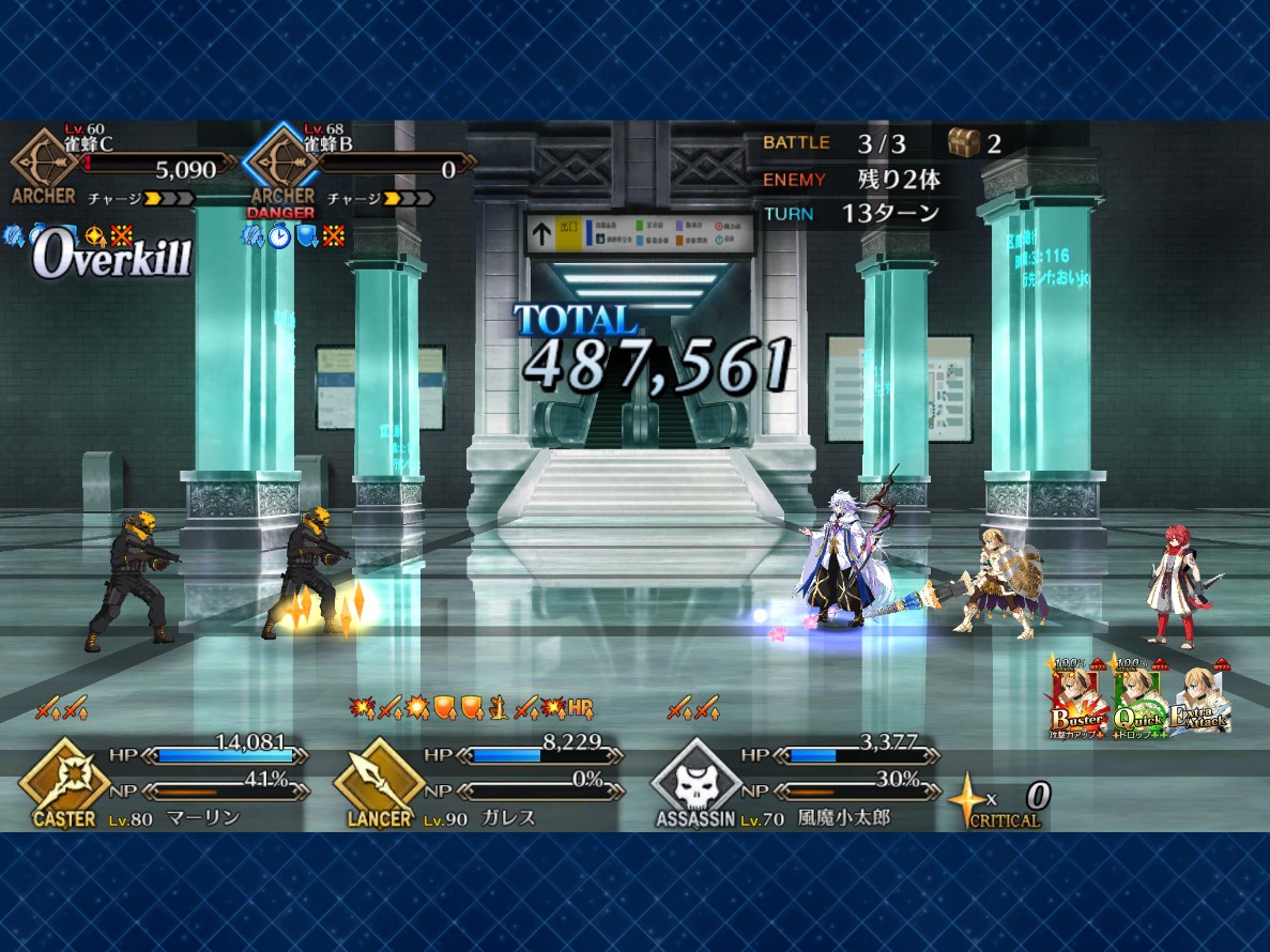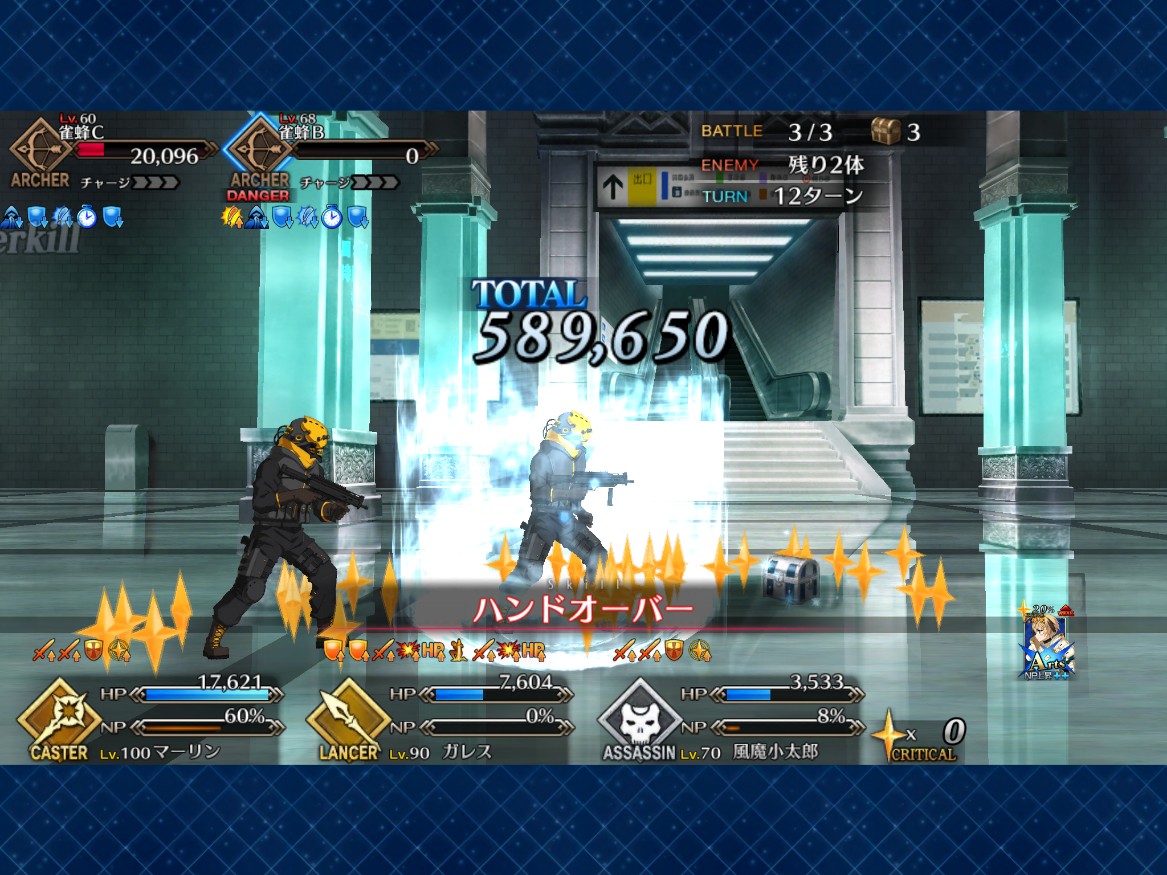 即死入らなくても、バフ無い状態で宝具で1万出るし、回避あるしで助かる