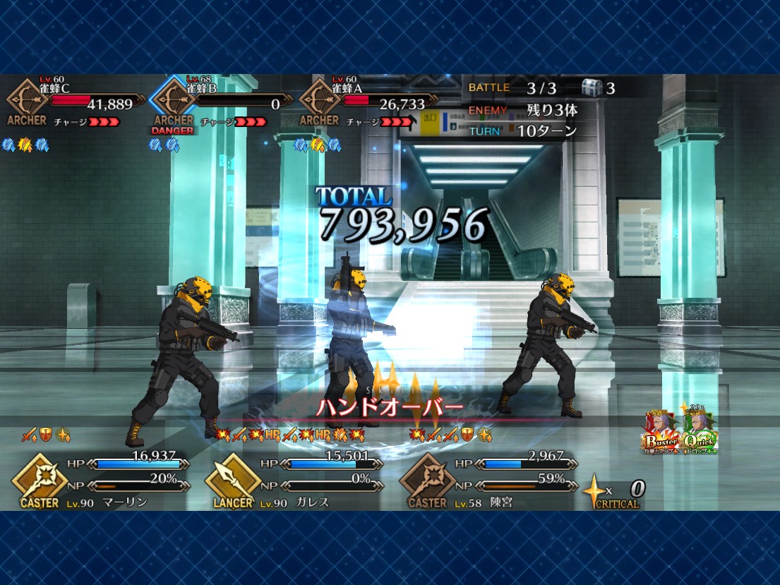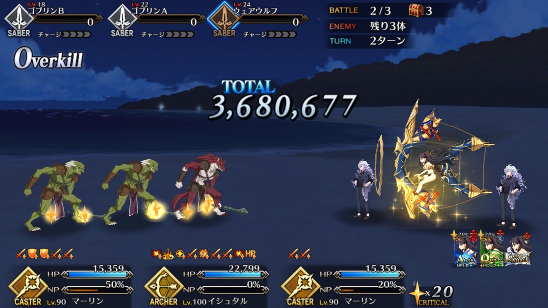 術ならこないだの水着イベでファラオカジノ3ターンは工夫していけた。ただシャーロットで何度か試してみたものの術以外はオバキルが決まってもNPが貯まりづらいっぽい。