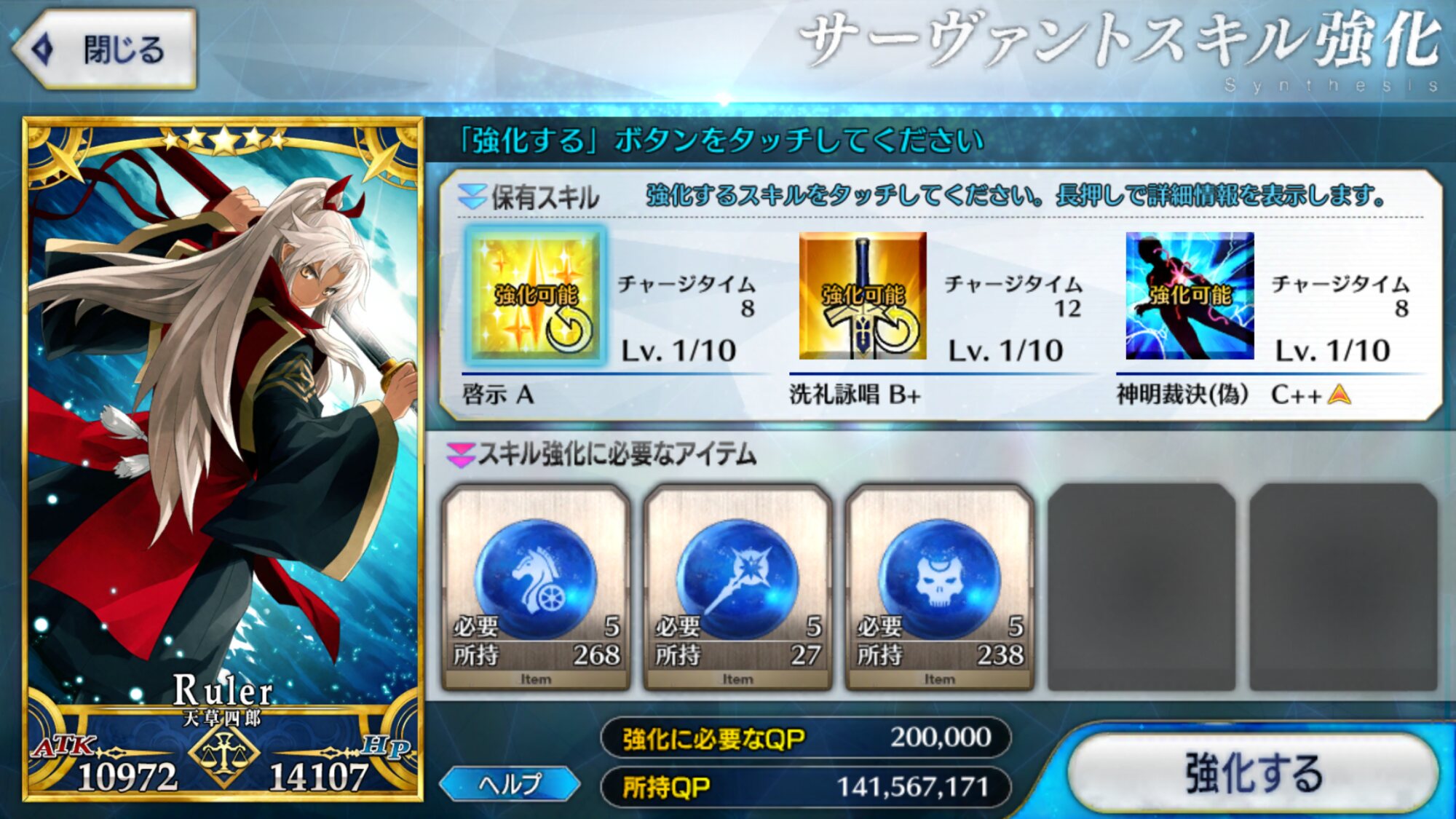 亀じゃが一応……えー洗礼詠唱がおすすめですねLv10でNPが毎ターン20増えます