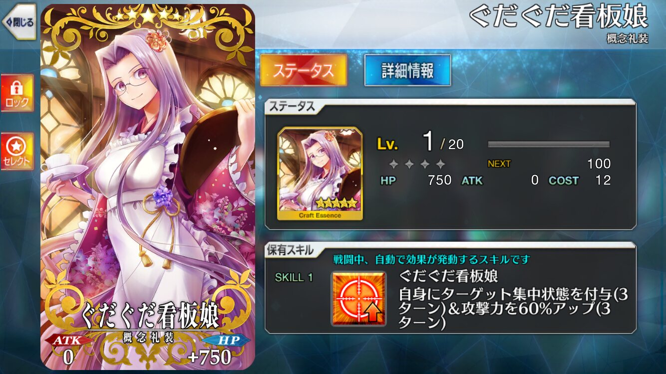 スキルマであれば未凸宝石剣で十分なので編成にも非常に優しい