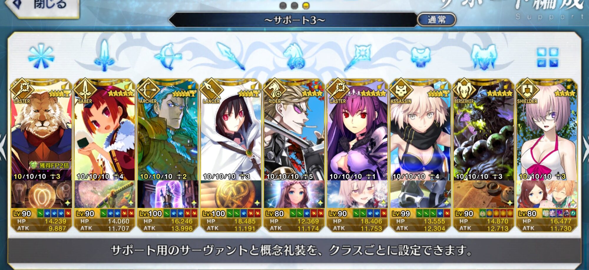 個人的おすすめはデオンでケイネス先生の礼装を持たせたりして心眼と合わせて2ターン攻撃をしのぐことも出来ます。