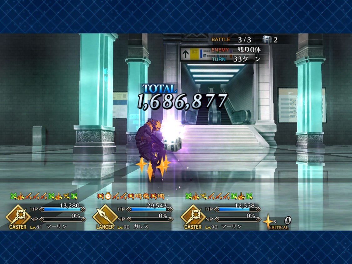 ②パラPの賢者の石を使用後、フレスカディ様にオダチェン。凍える吹雪、原初のルーンを使用したのち、バソ氏の宝具ぶっぱ
