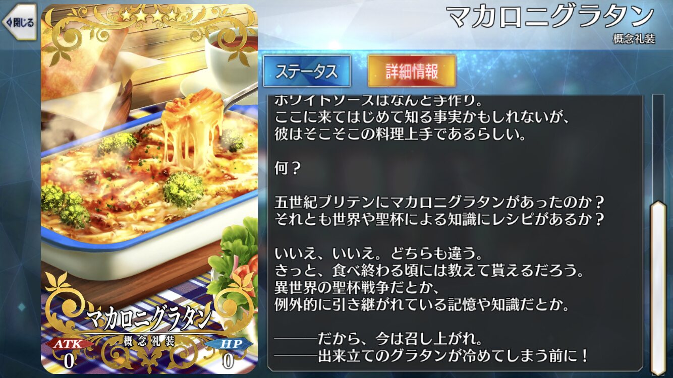 中原さんがアーサーのマテリアルで「マカロニグラタン作れるようになってるのずるい」って書いてた>>72