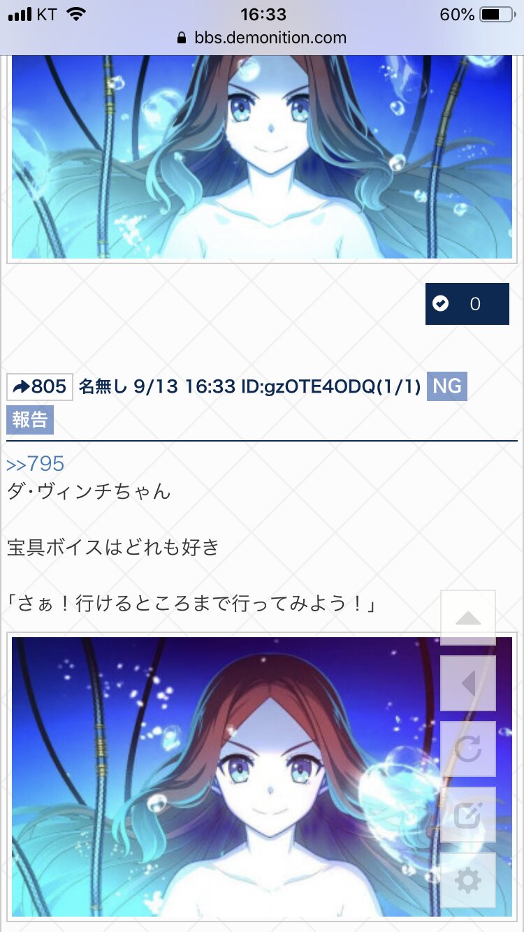 「ご覧ください、アレがカルデアステンノキツツキの求愛行動です。尊みが一定以上になるとあのように壁に頭を打ち付けます。求愛行動とは言いますが、本質にあるのは愛を求めるのではなく愛を捧げたいという本能に近い欲ではないかと最新の研究では唱えられています。」>>899