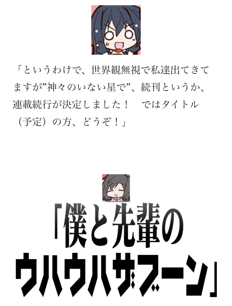 ラジアータストーリーズのコミカライズの作者の「アホリズム」好きだよ。ガンガンONLINEで連載してたけど一部完結になって、今続編が二作連載してて、片方は次で最終回らしいけど。>>987