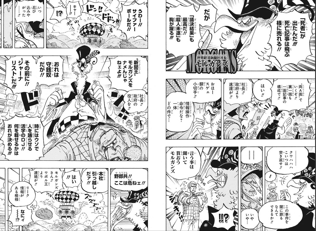 これぐらい言わせておけば流石に……サイファーポール=世界政府に恐れず特ダネを流すモルガンズと称号剥奪されても恐れない(バギー以外)王下七武海かっけぇ
