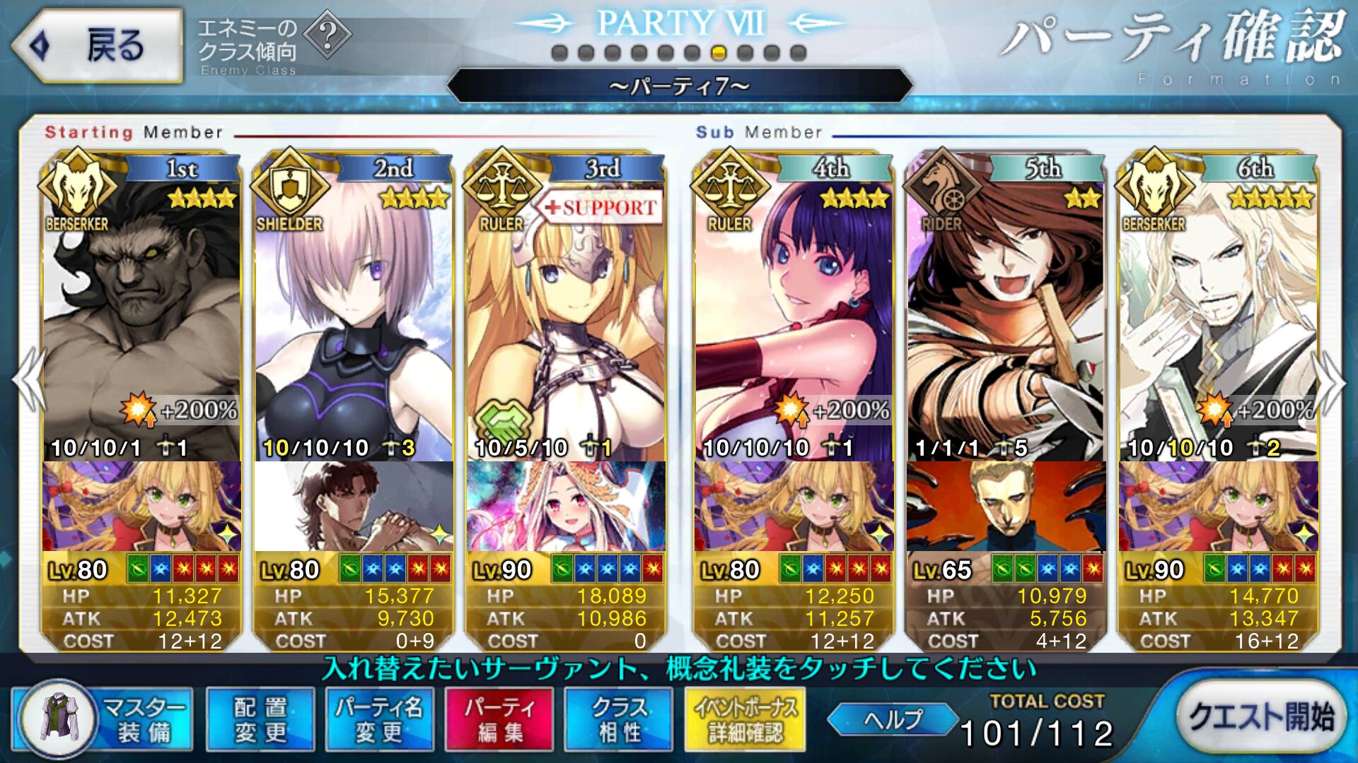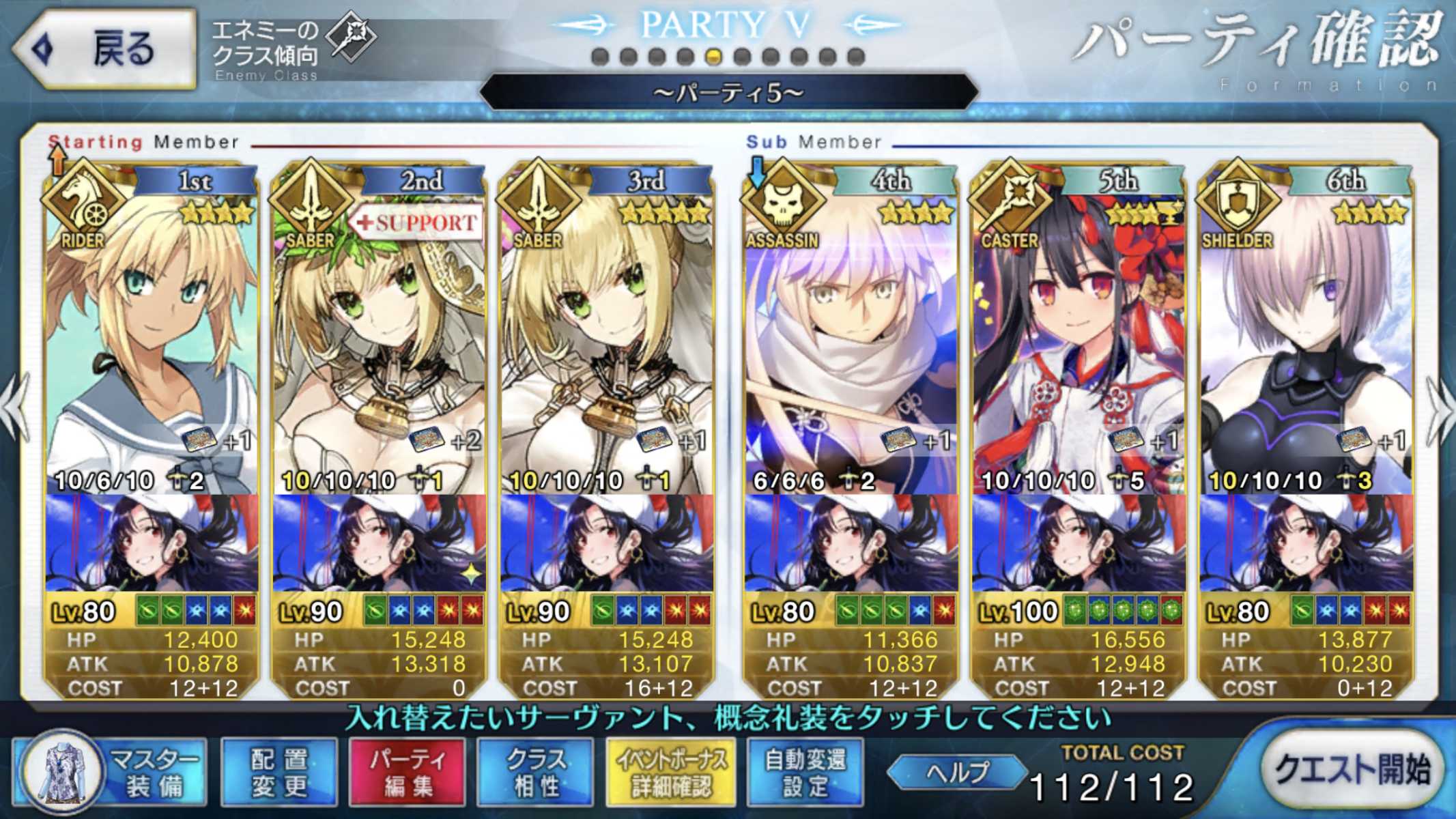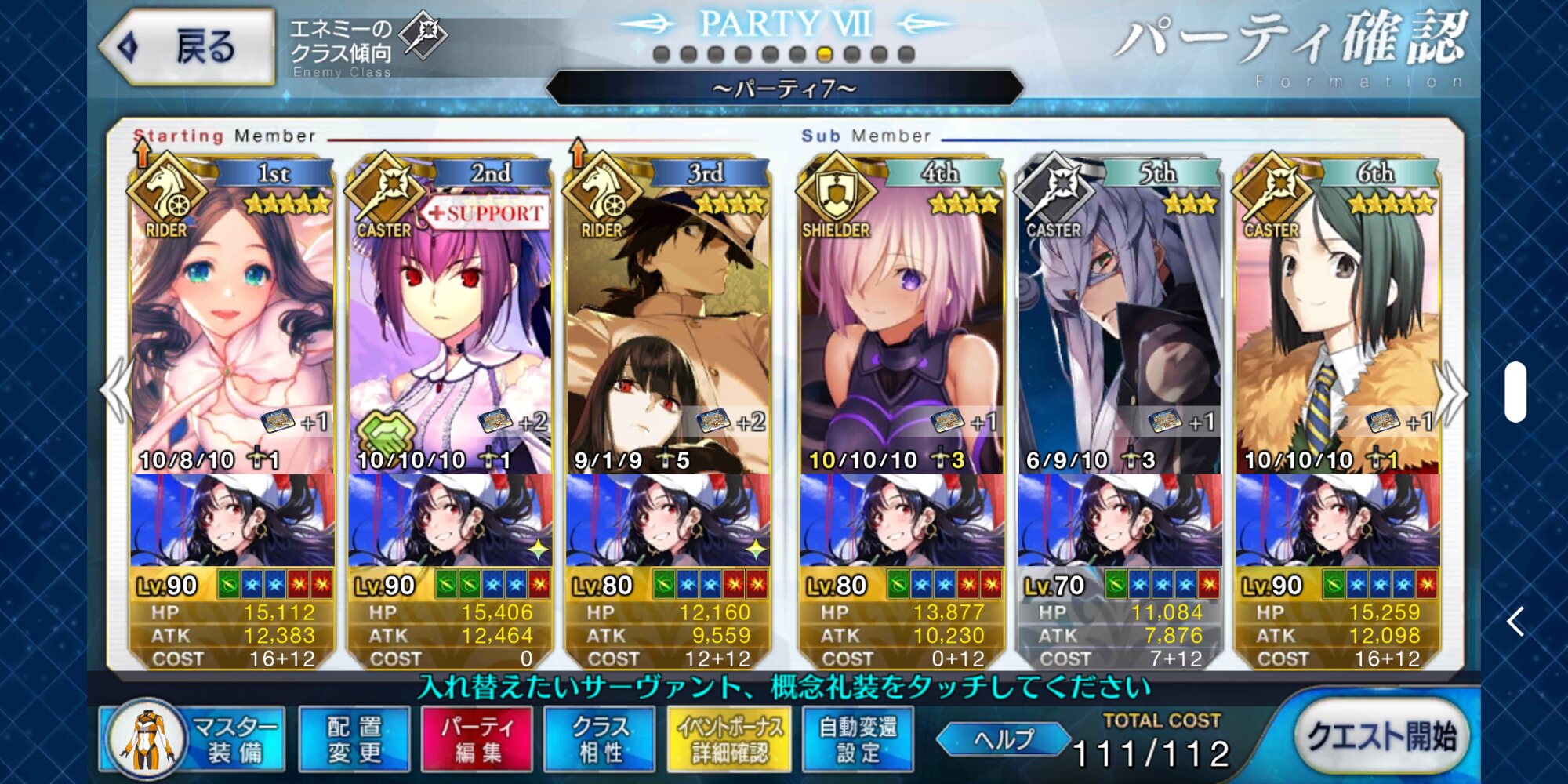 今気づいたけど後半は耐久だからサポートの礼装朕の為の欠片よりプリコスの方が良かったかな・・・