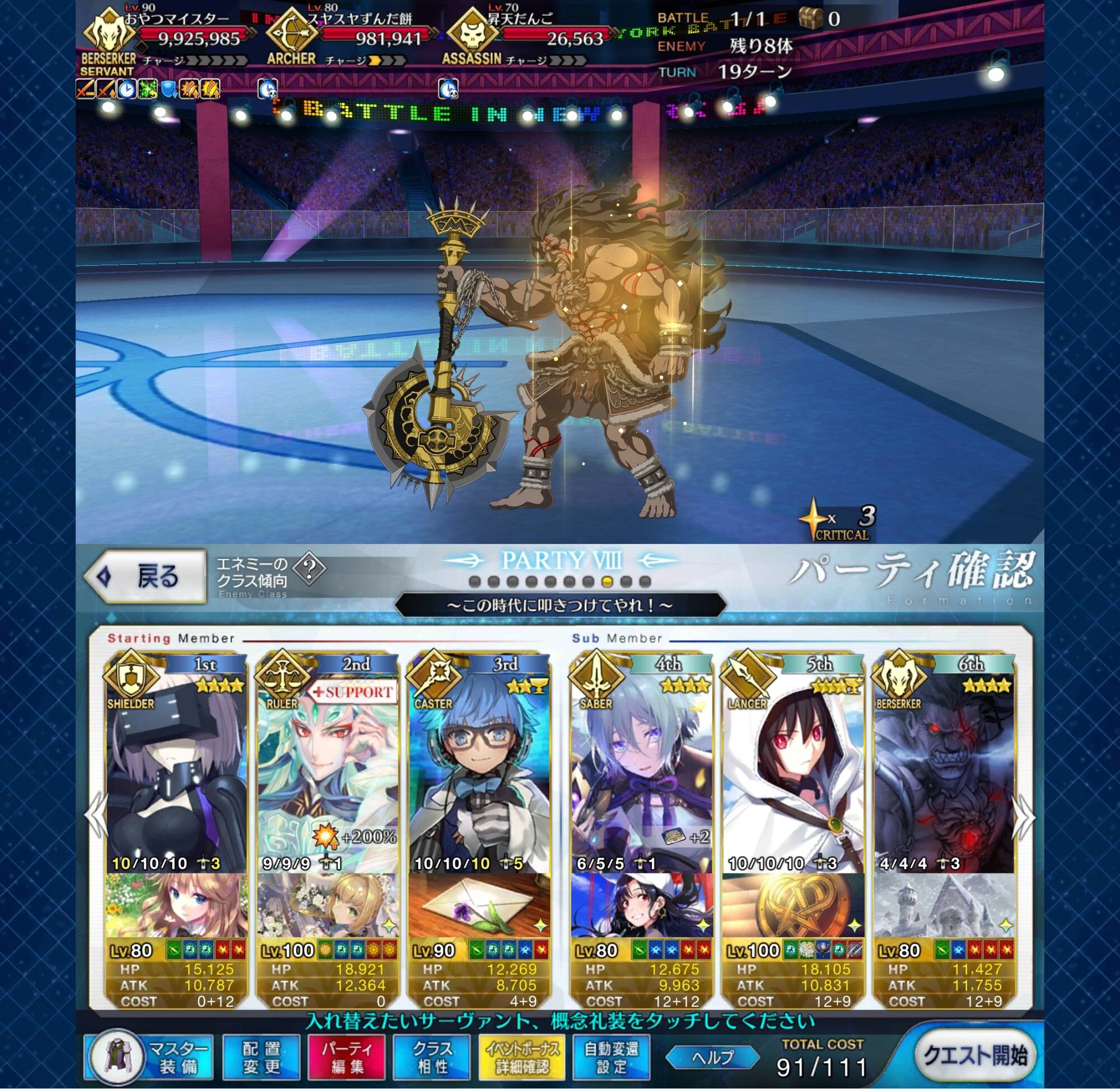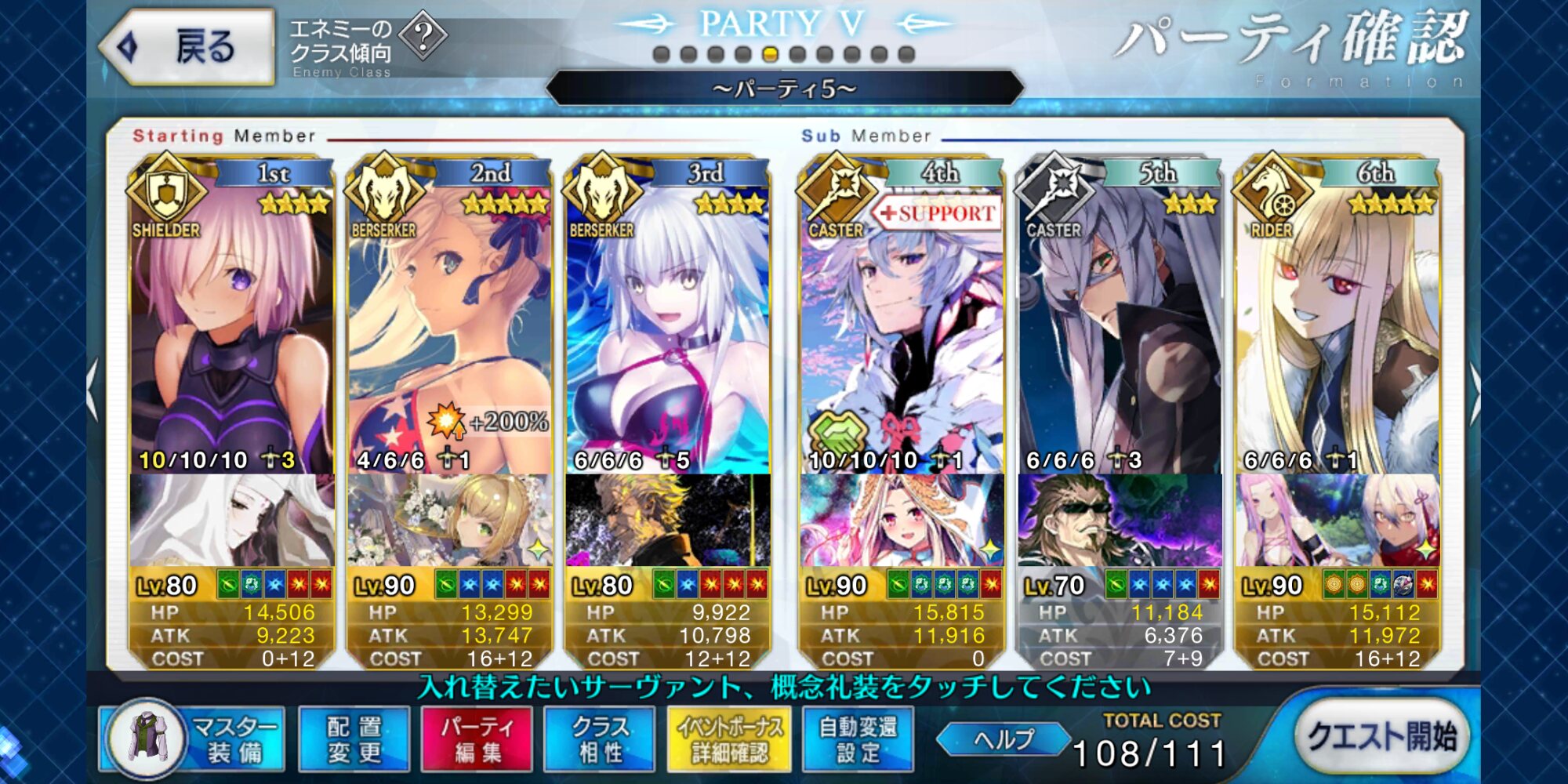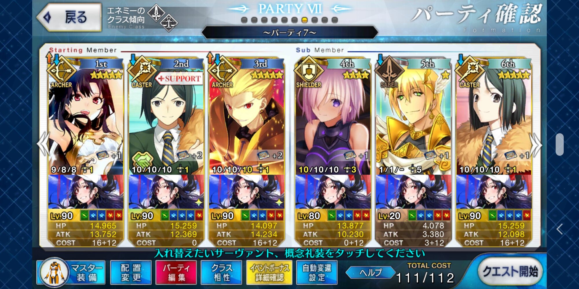 今気づいたけど後半は耐久だからサポートの礼装朕の為の欠片よりプリコスの方が良かったかな・・・
