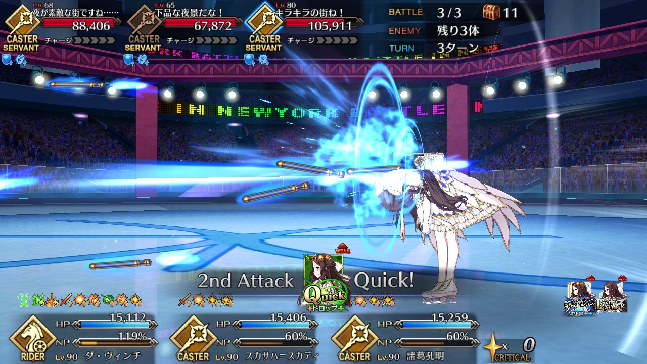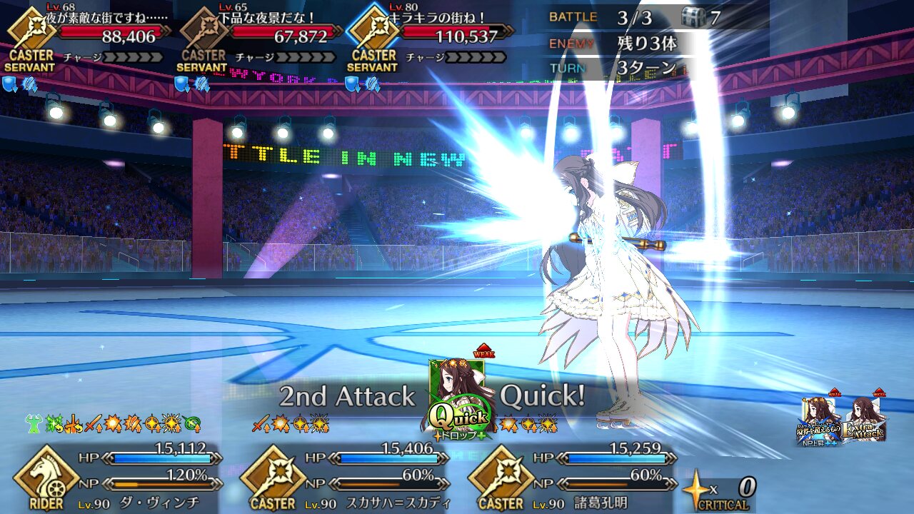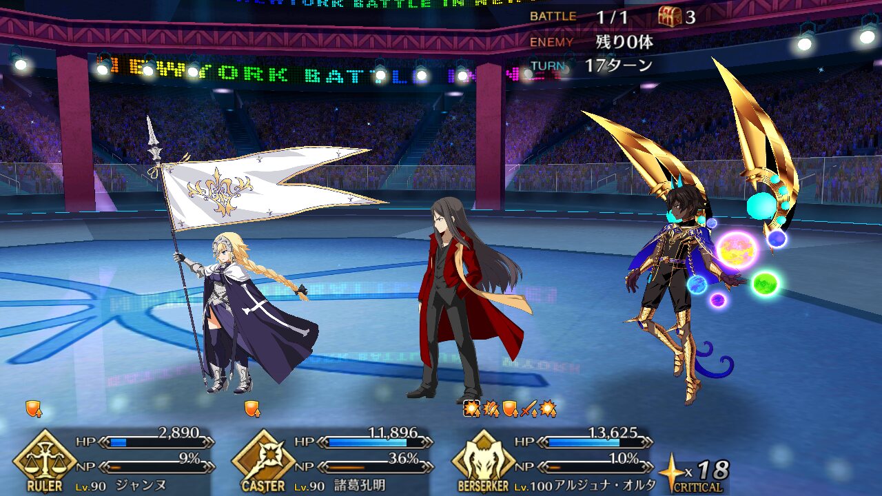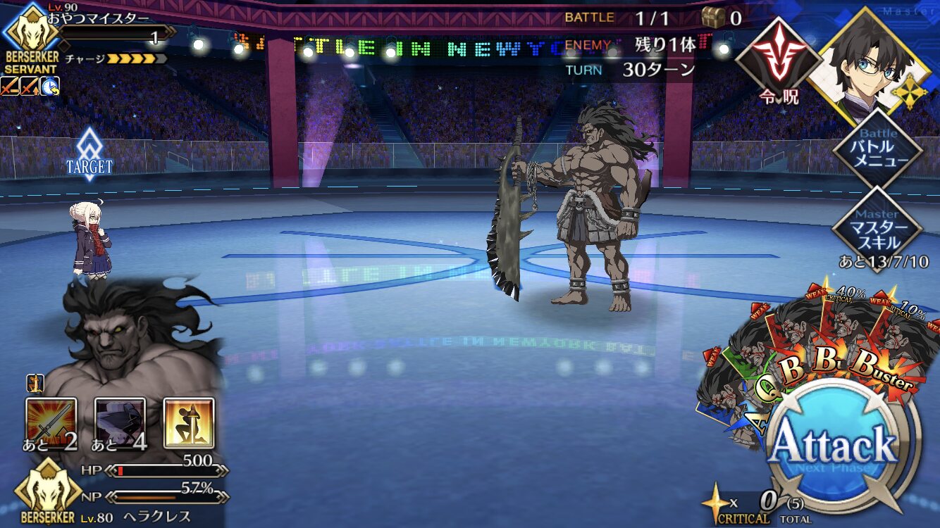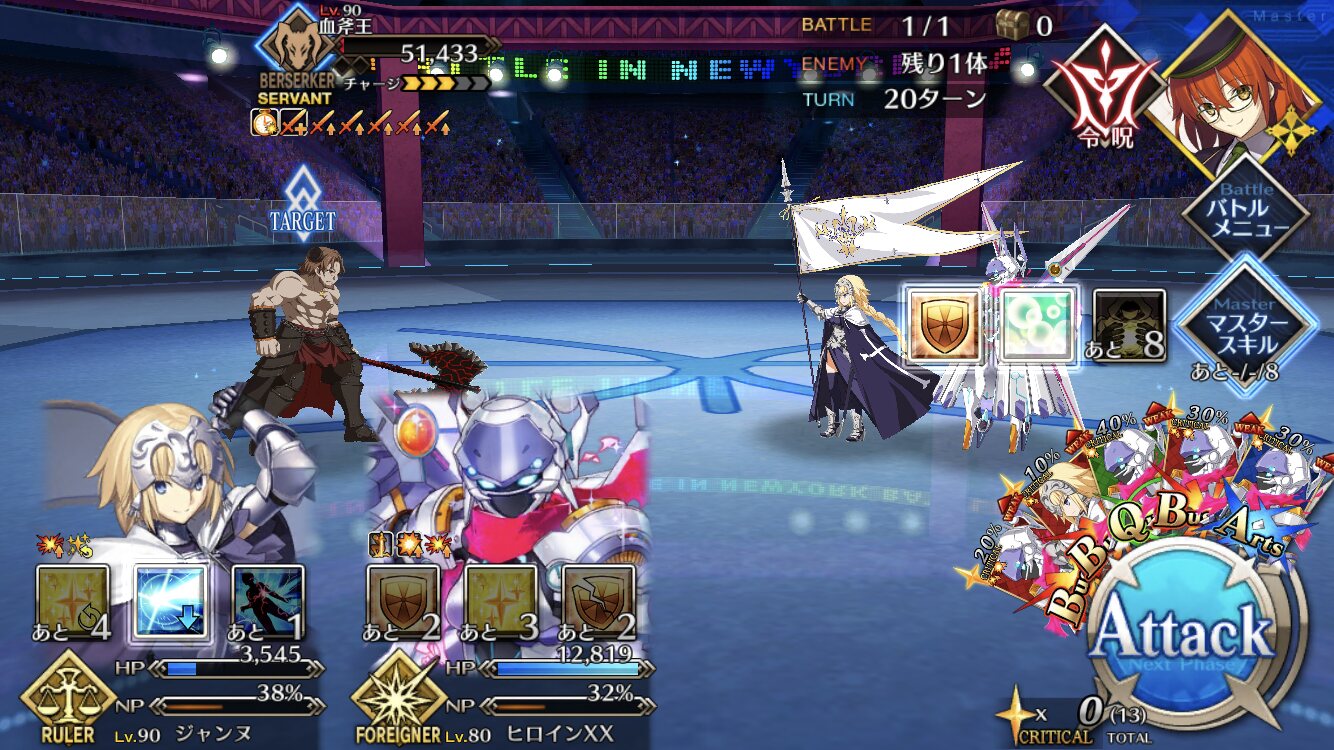 確実に3ターン、黒ごま取られても魔術礼装やスキルの回避をうまく使えば5ターン単騎で耐えられる今年もジャガーの国はめんどくささの塊みたいなクエストだったな…あの手この手を試してみて令呪も残り一画になってしまって、イライラしながら試しにフレの神ジュナ借りたら舐めプしながら勝てたのがやけに腹立つ
