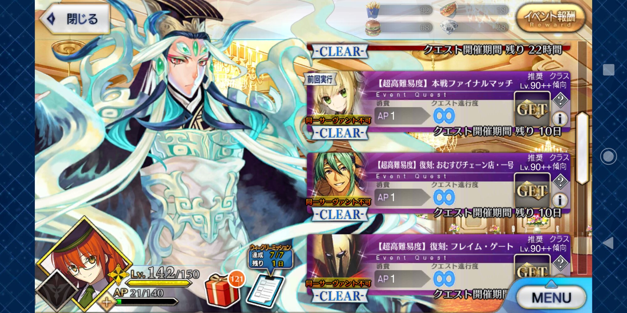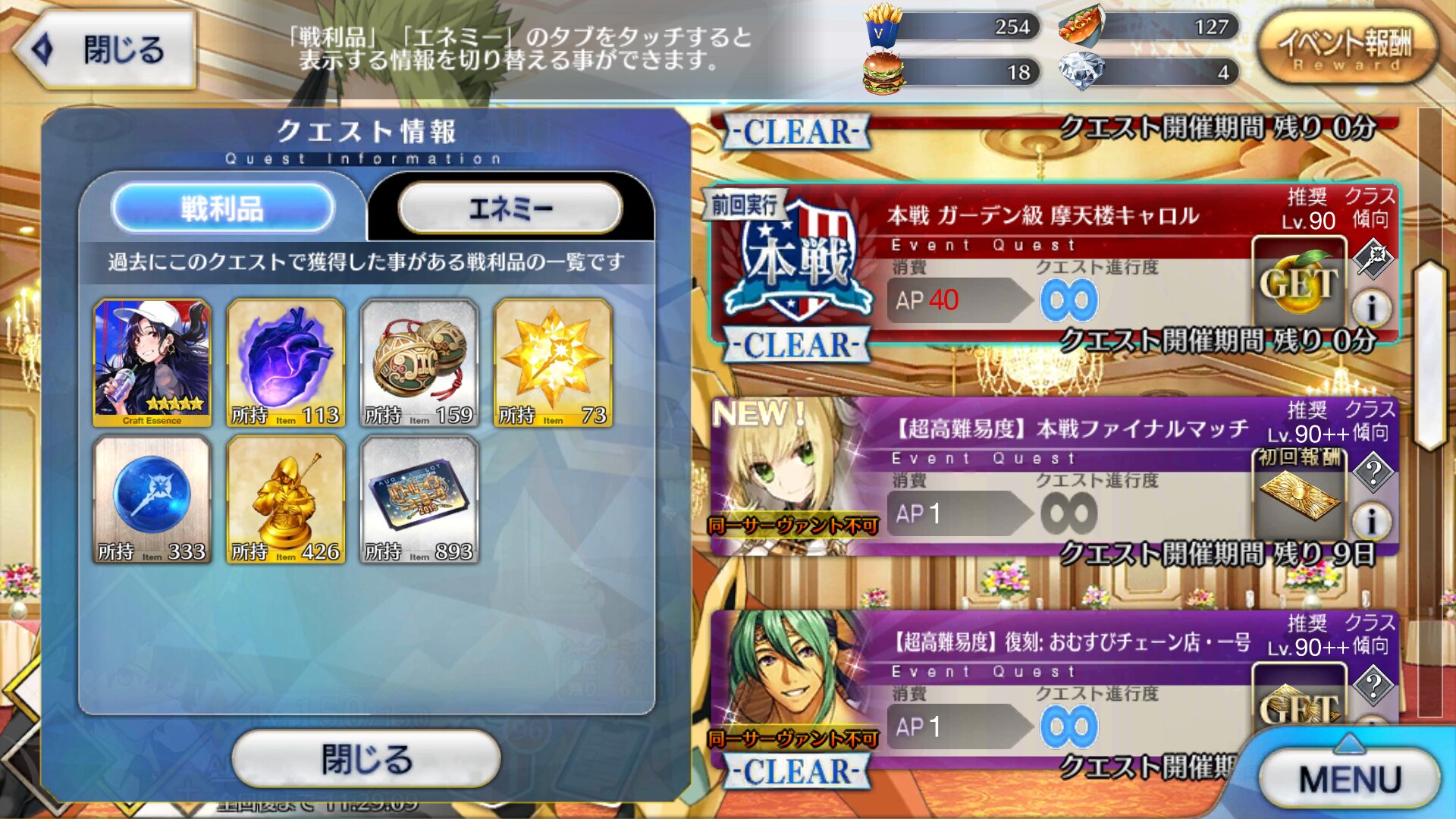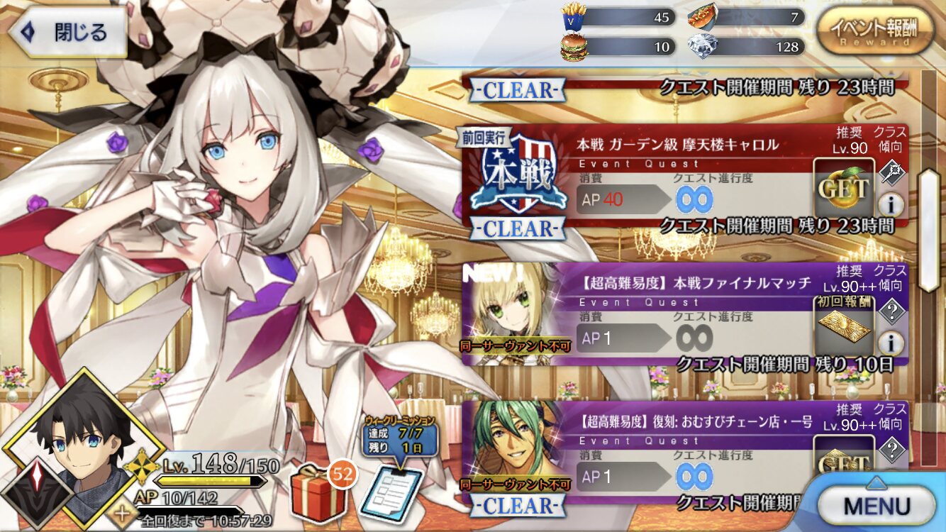 勇み足で令呪切っちゃうのほんと直したい…朕の性別忘れてたせいでクリア出来たけど令呪全て使ってしまった…、明日以降の高難易度どうするかなぁ
