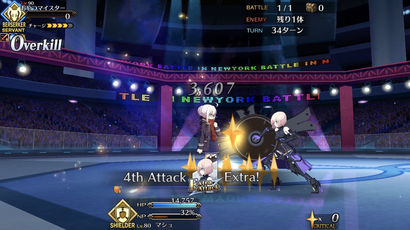 序盤=適当にお菓子を食べる。えっちゃんの通常攻撃はマシュと孔明の防御バフで軽減しよう。クリティカルはどうにもならないのでそこは運。DX黒ごまを撃破したらえっちゃんを即ブレイクする。