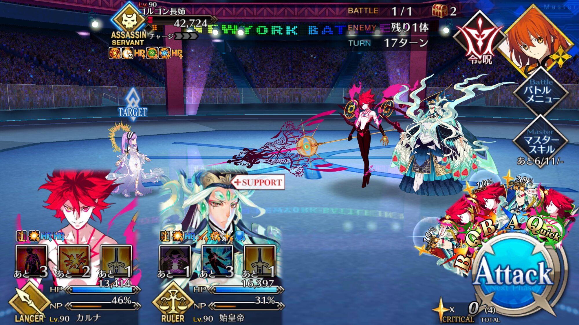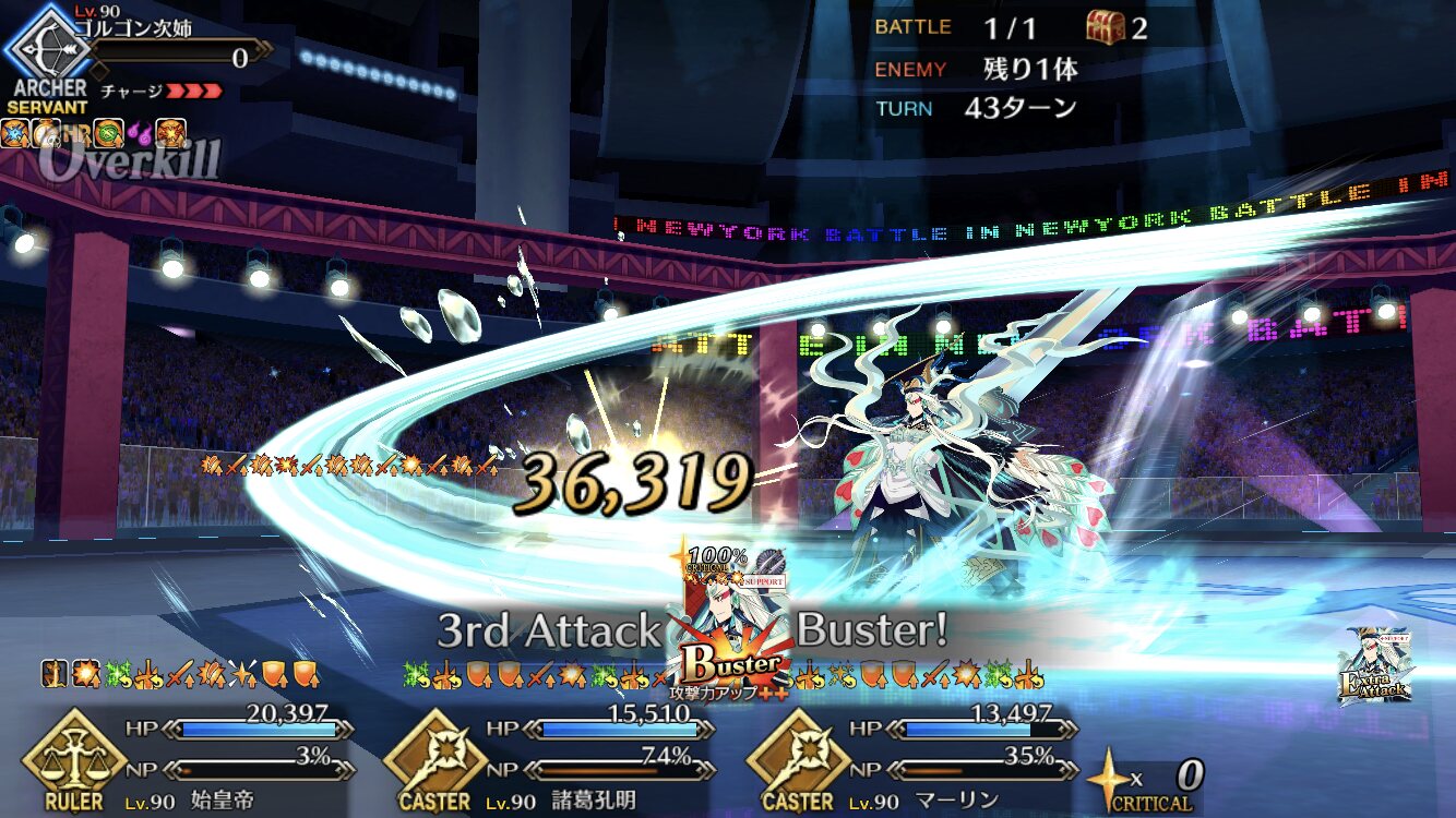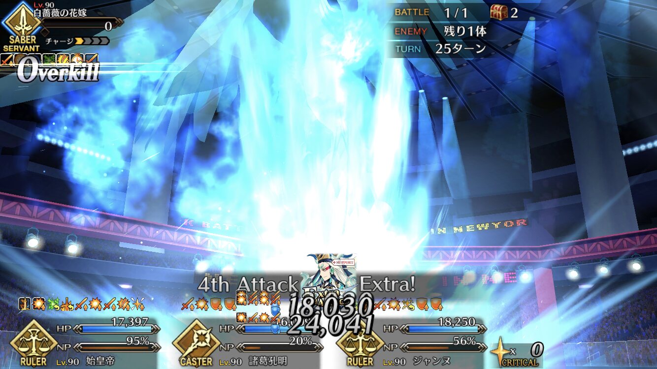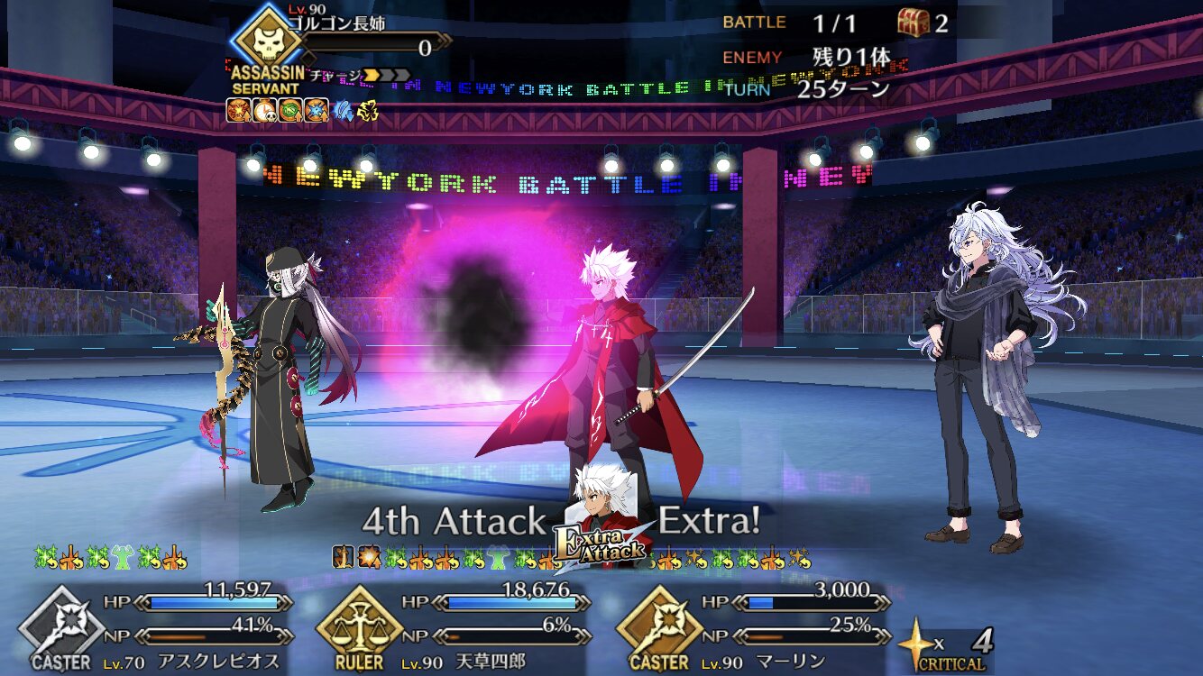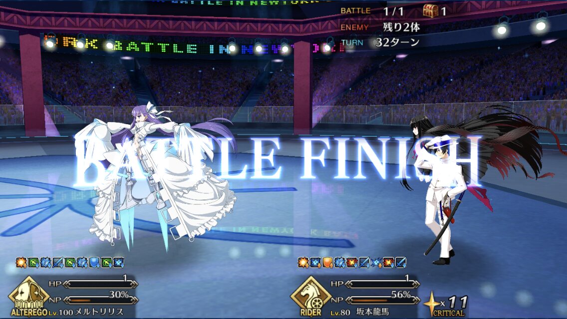 この2ターン前、下姉様だけになったタイミングまで生き延びてガッツとNPサポの潤滑油になってくれた、ありがとう医者先生