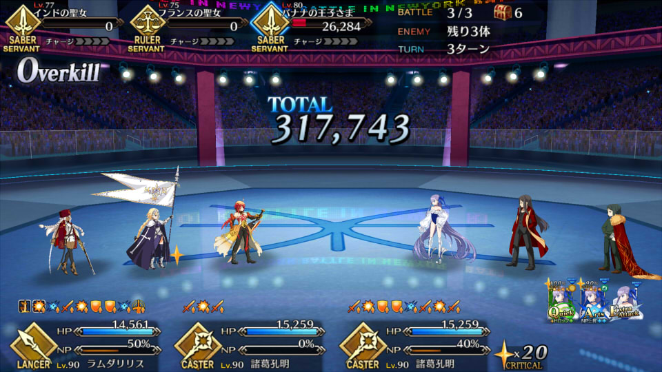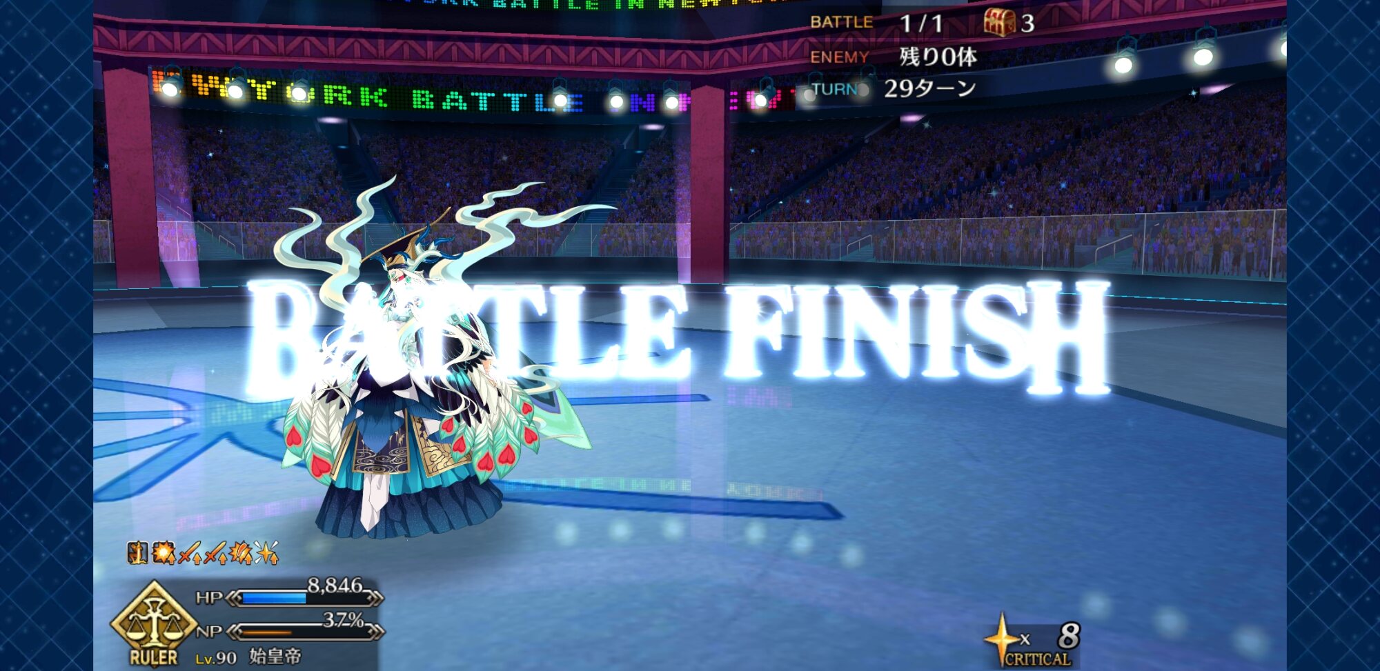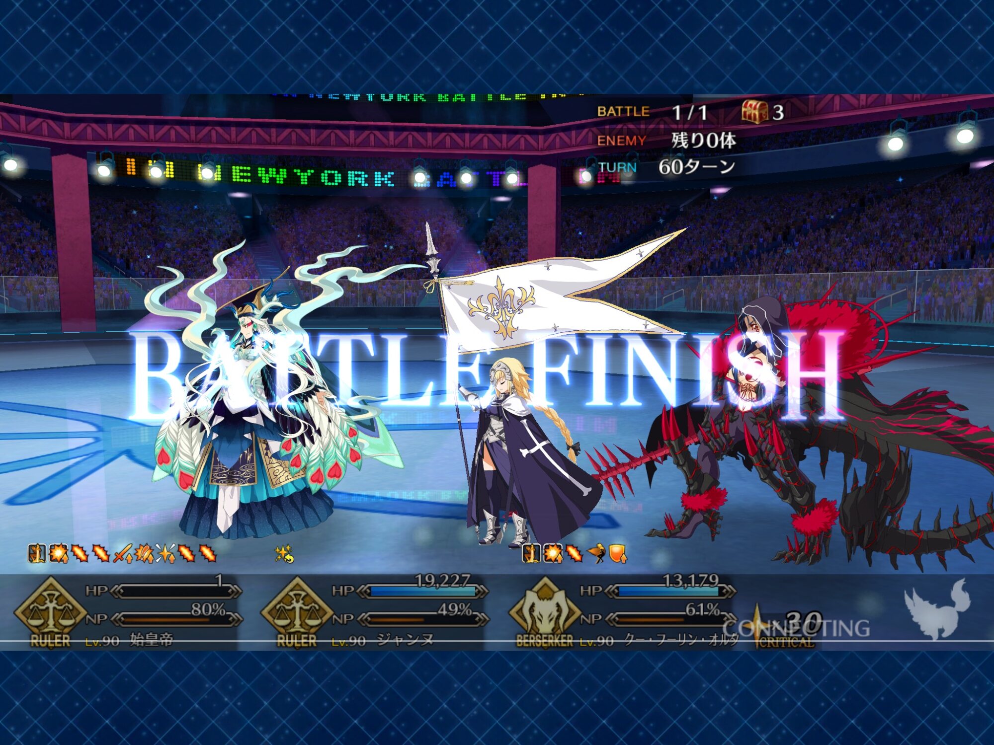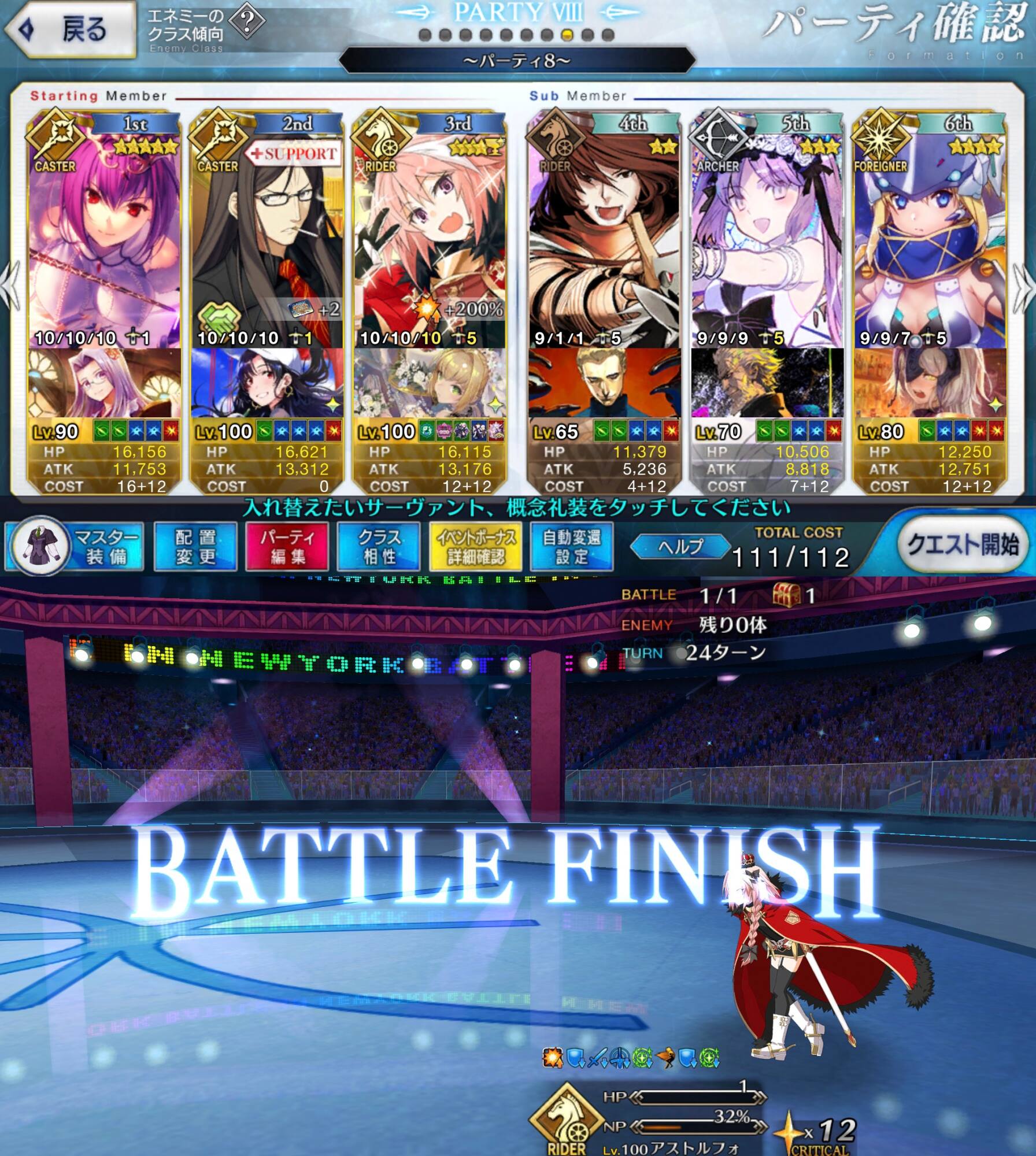 この2ターン前、下姉様だけになったタイミングまで生き延びてガッツとNPサポの潤滑油になってくれた、ありがとう医者先生