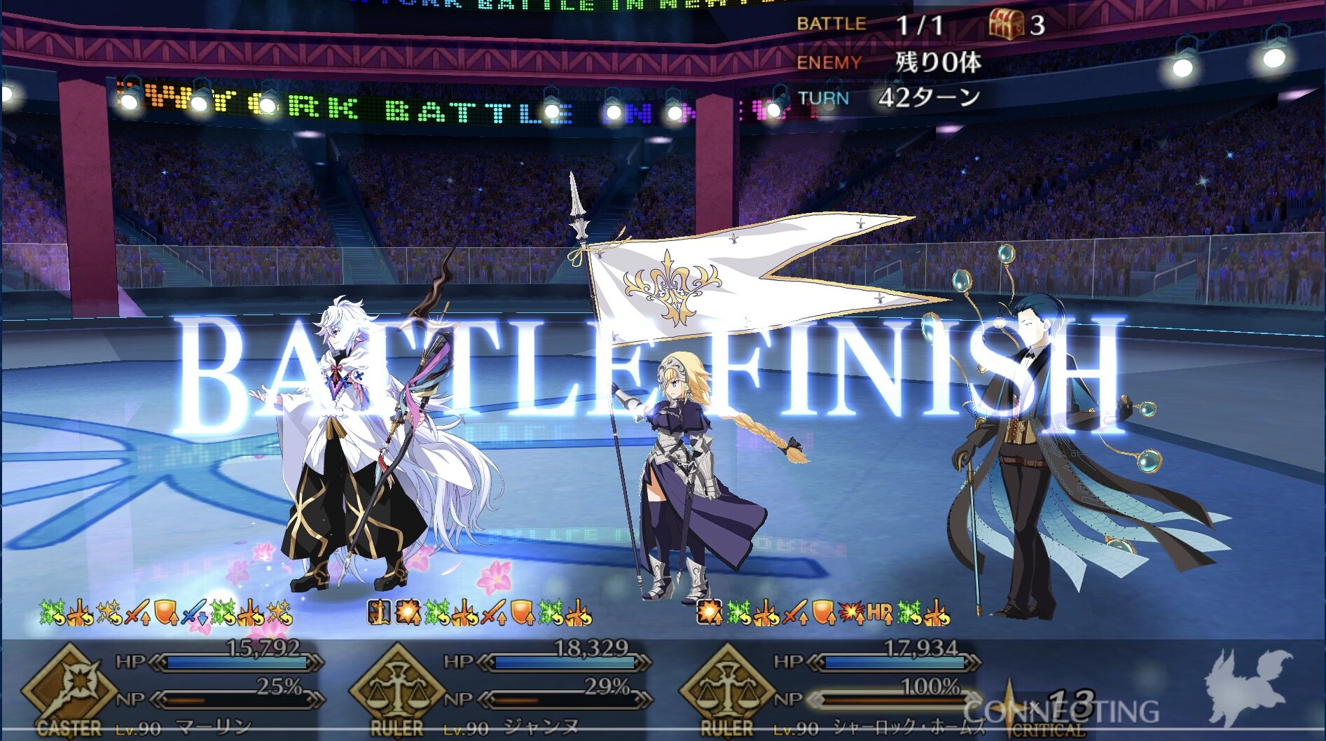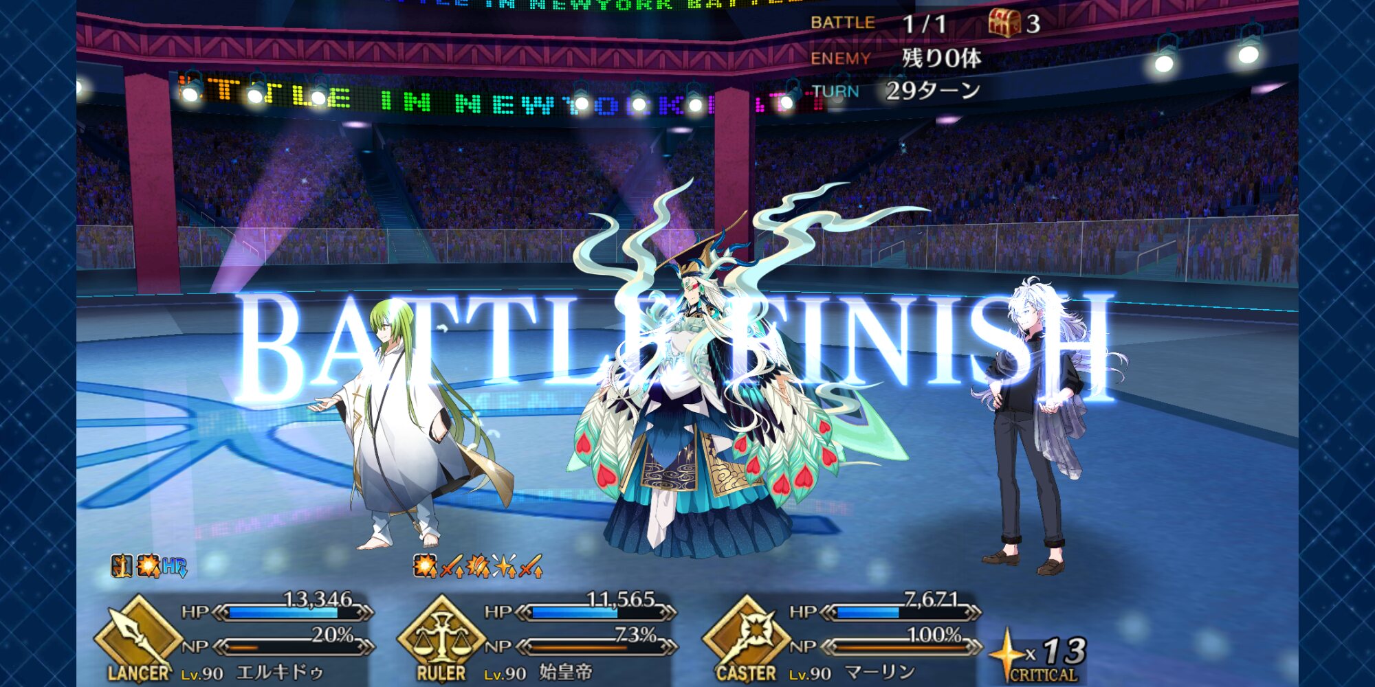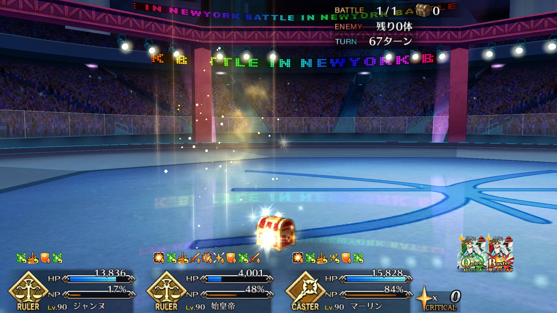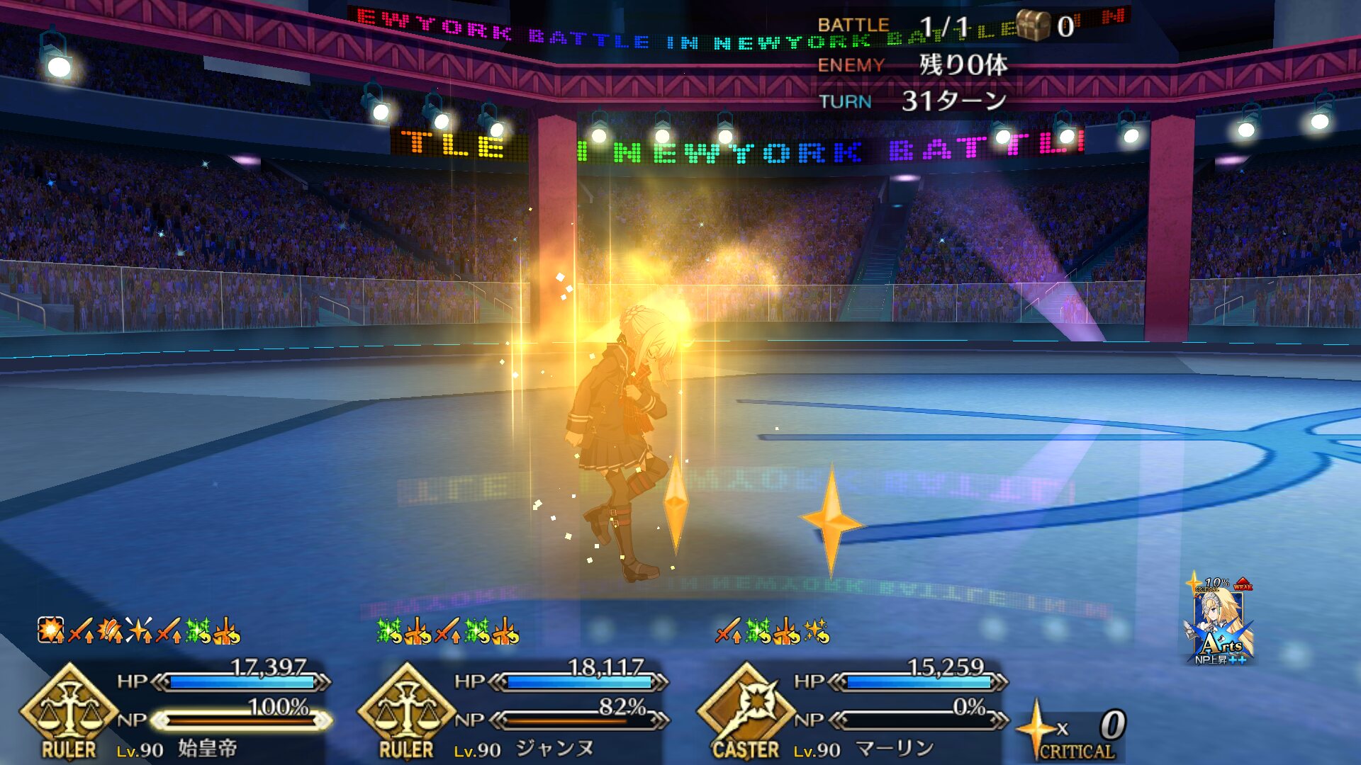 この2ターン前、下姉様だけになったタイミングまで生き延びてガッツとNPサポの潤滑油になってくれた、ありがとう医者先生