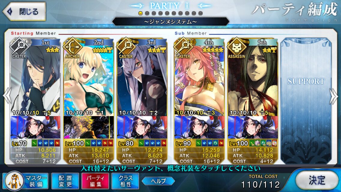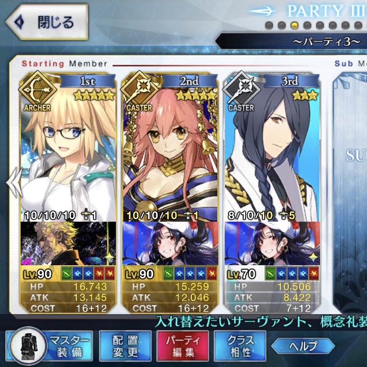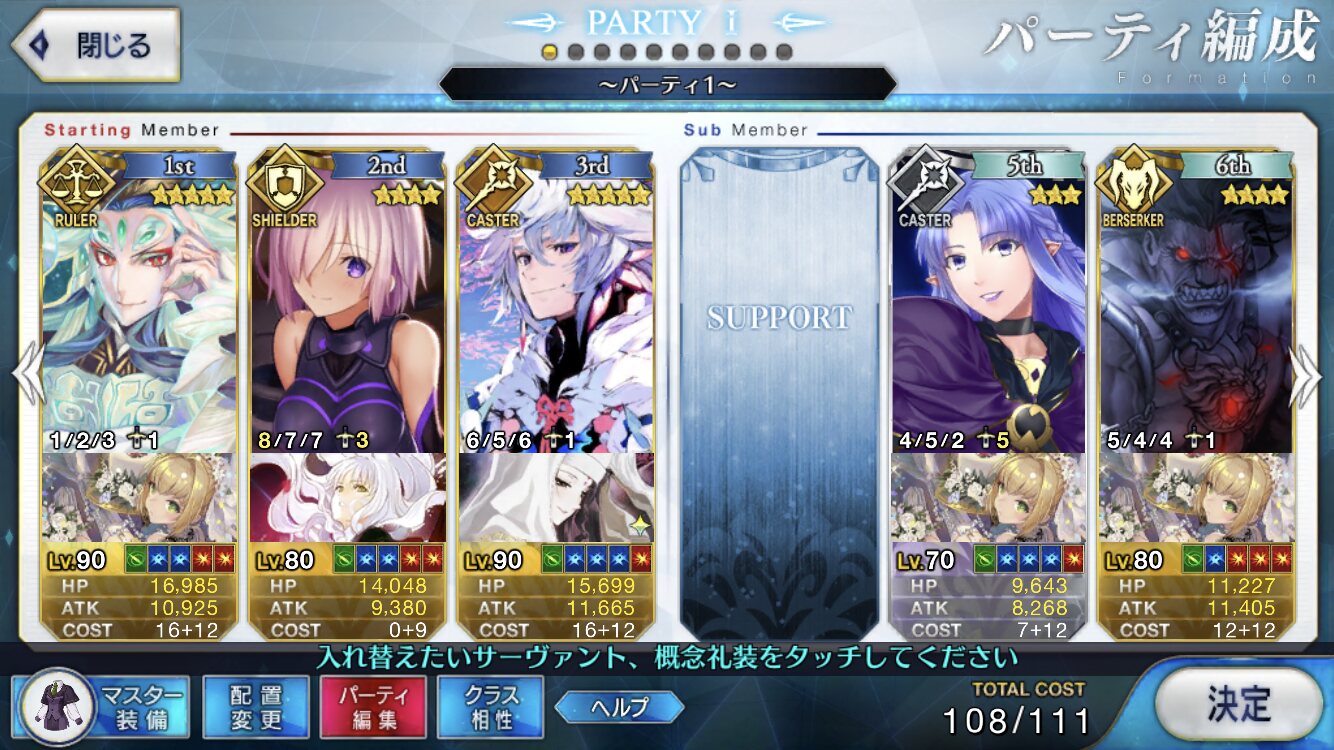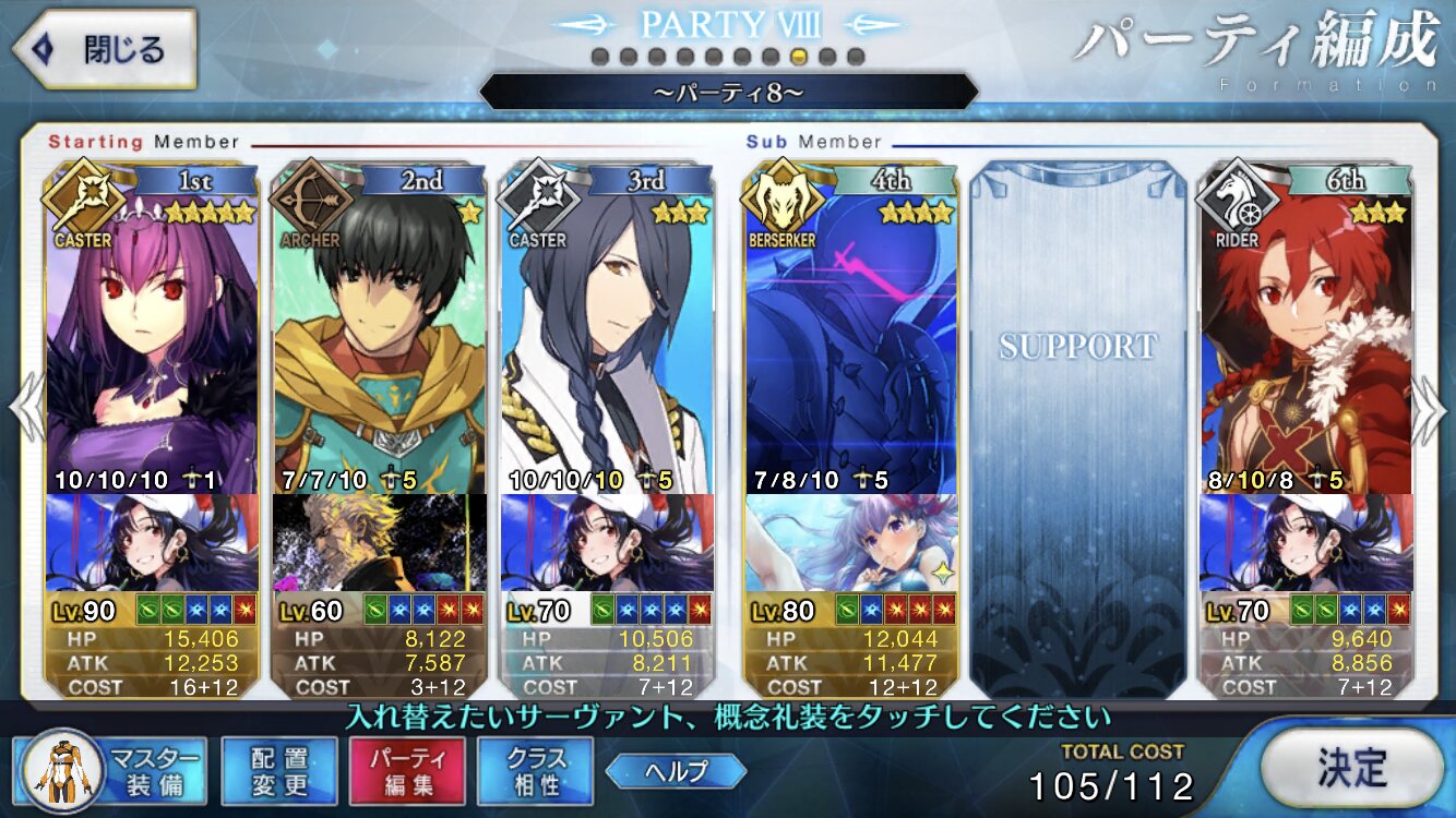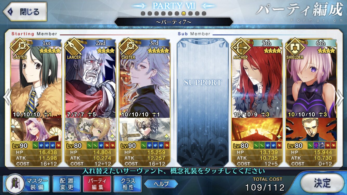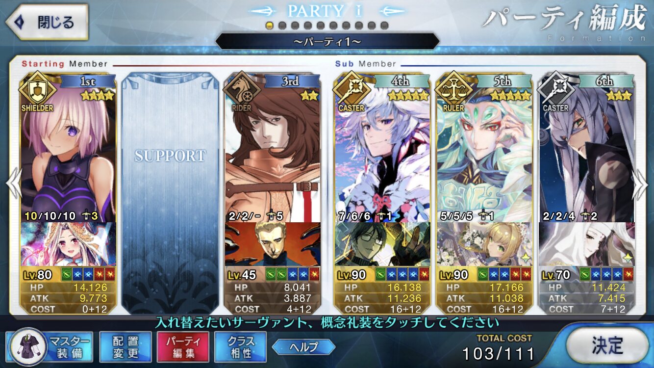 取り敢えず、かなり短時間で宝具使う場面が出てくるから孔明とマーリンが逆にして、次にフレンド枠をゲオルギウスや絆ヘラクレスのように確実に数ターン凌げる連中にしておくと良いと思う>>38