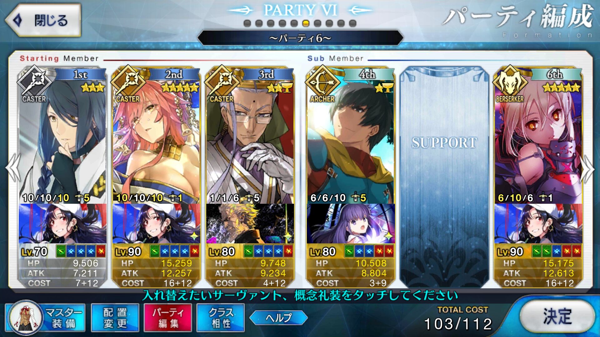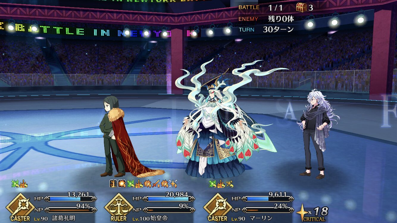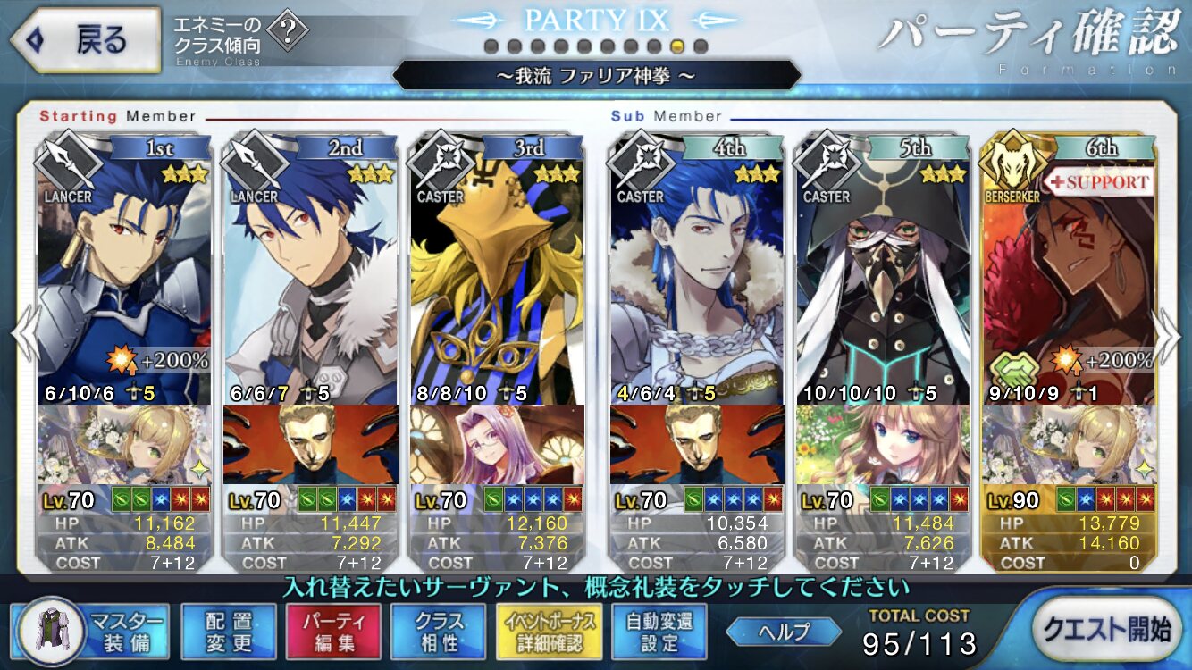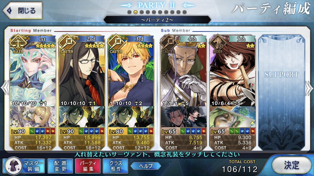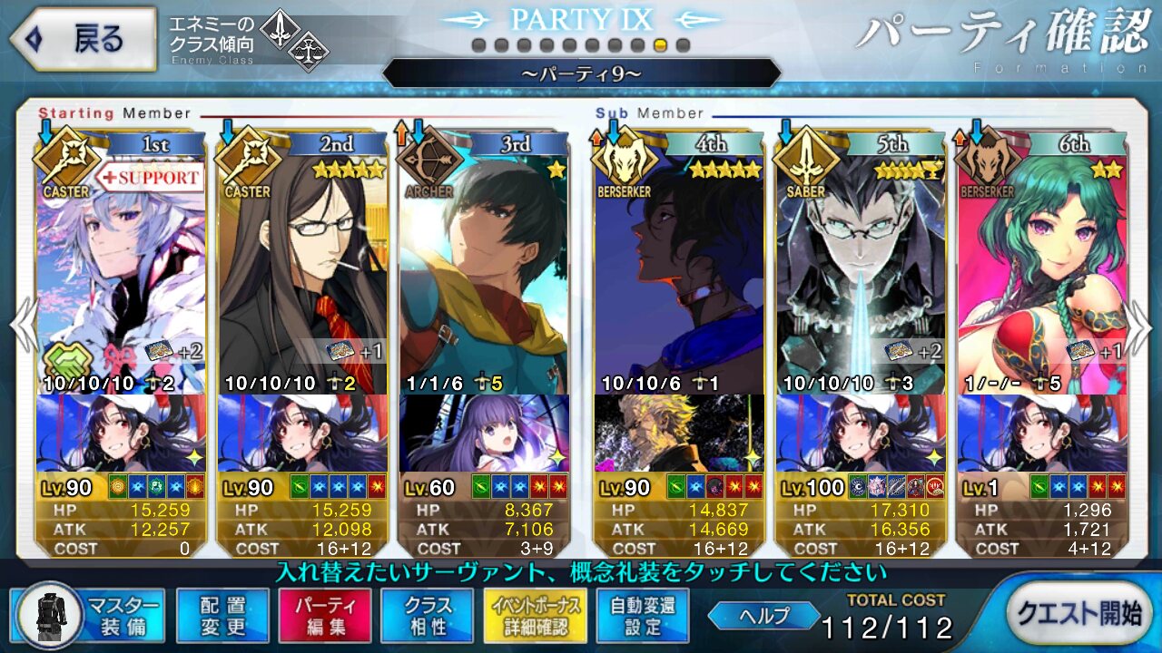 取り敢えず、かなり短時間で宝具使う場面が出てくるから孔明とマーリンが逆にして、次にフレンド枠をゲオルギウスや絆ヘラクレスのように確実に数ターン凌げる連中にしておくと良いと思う>>38