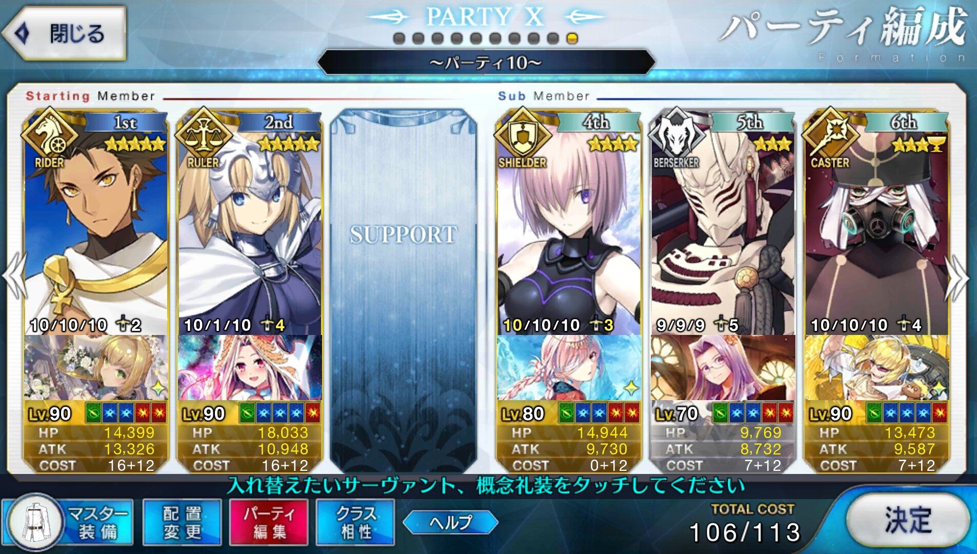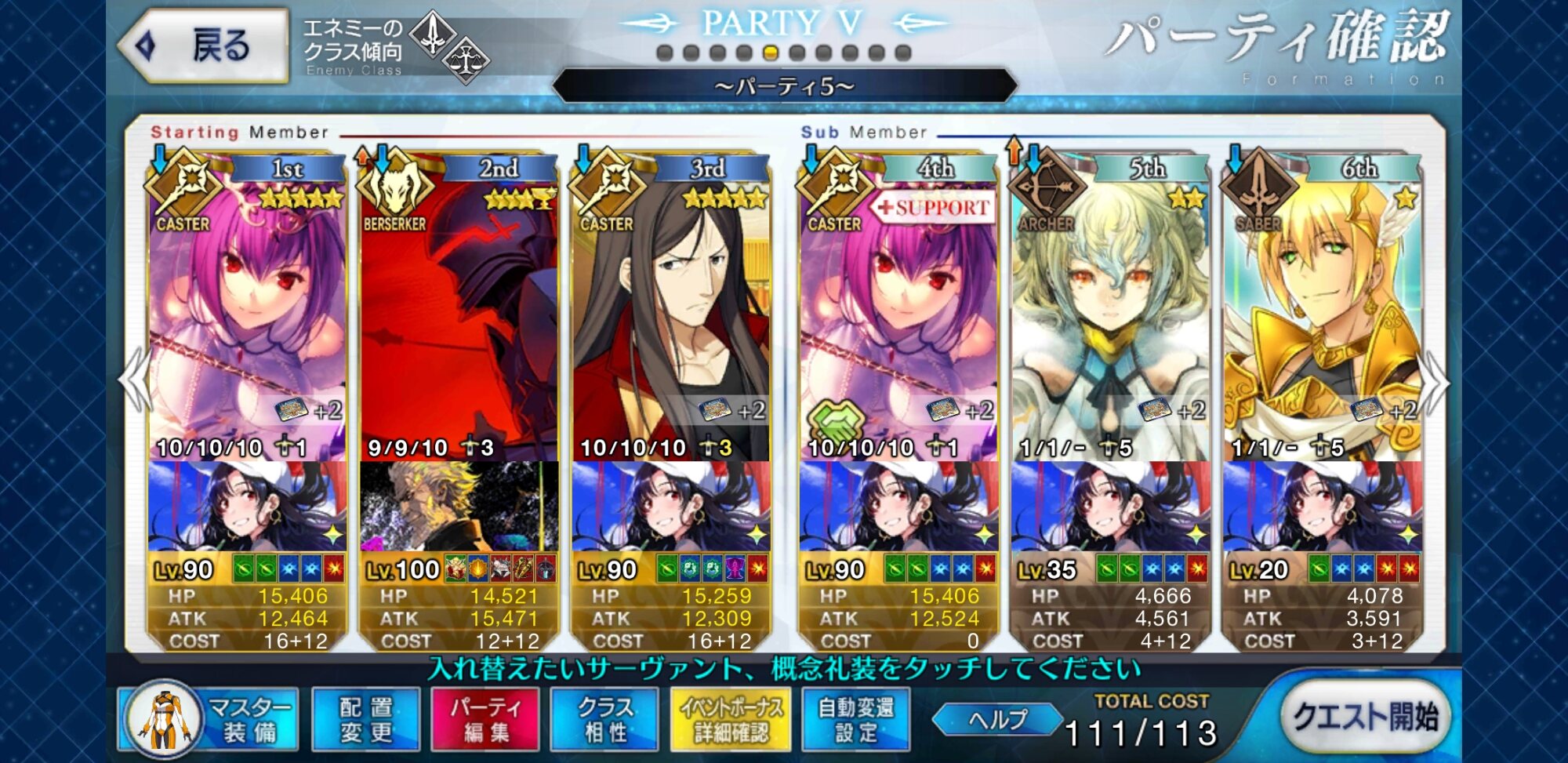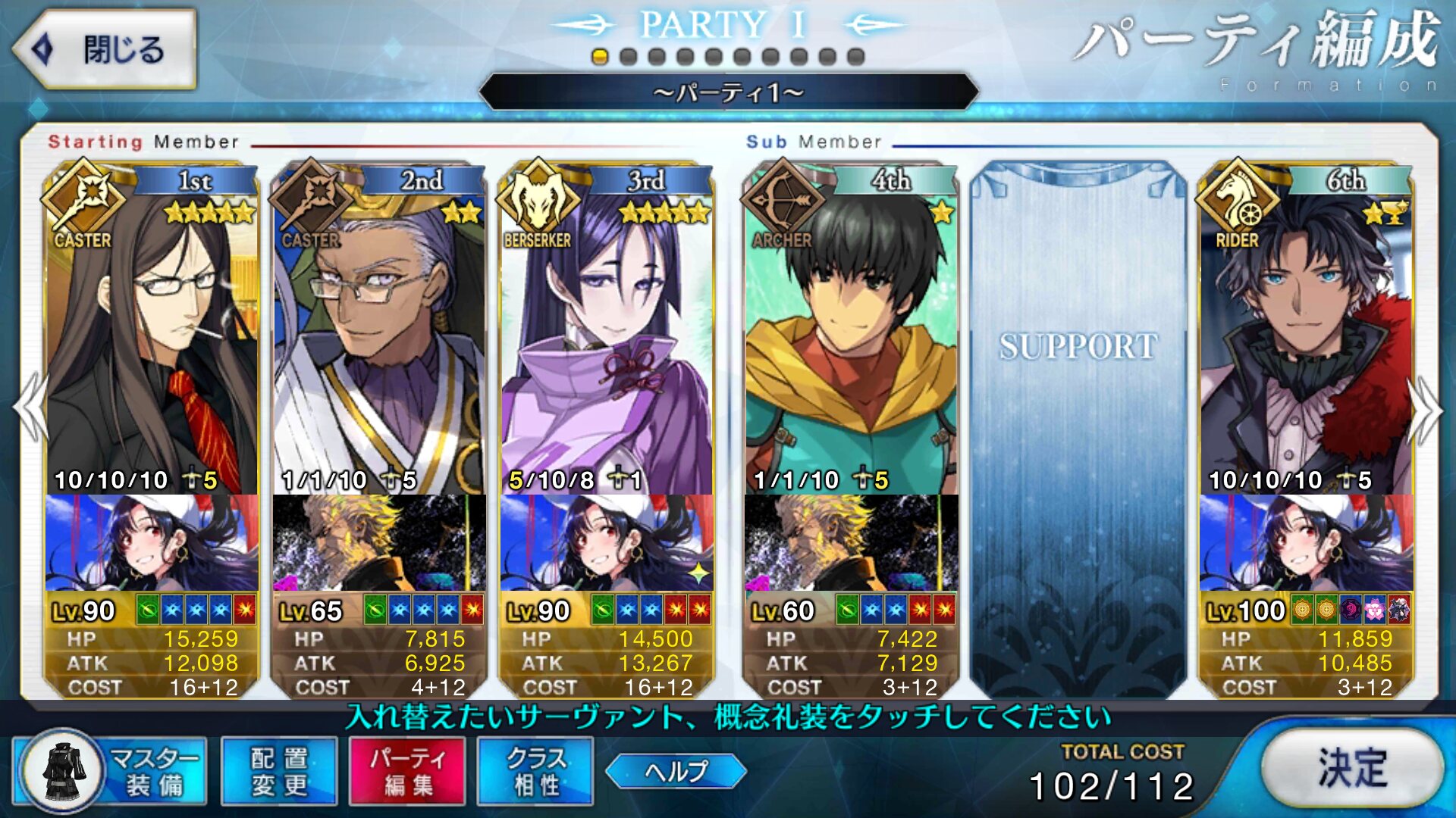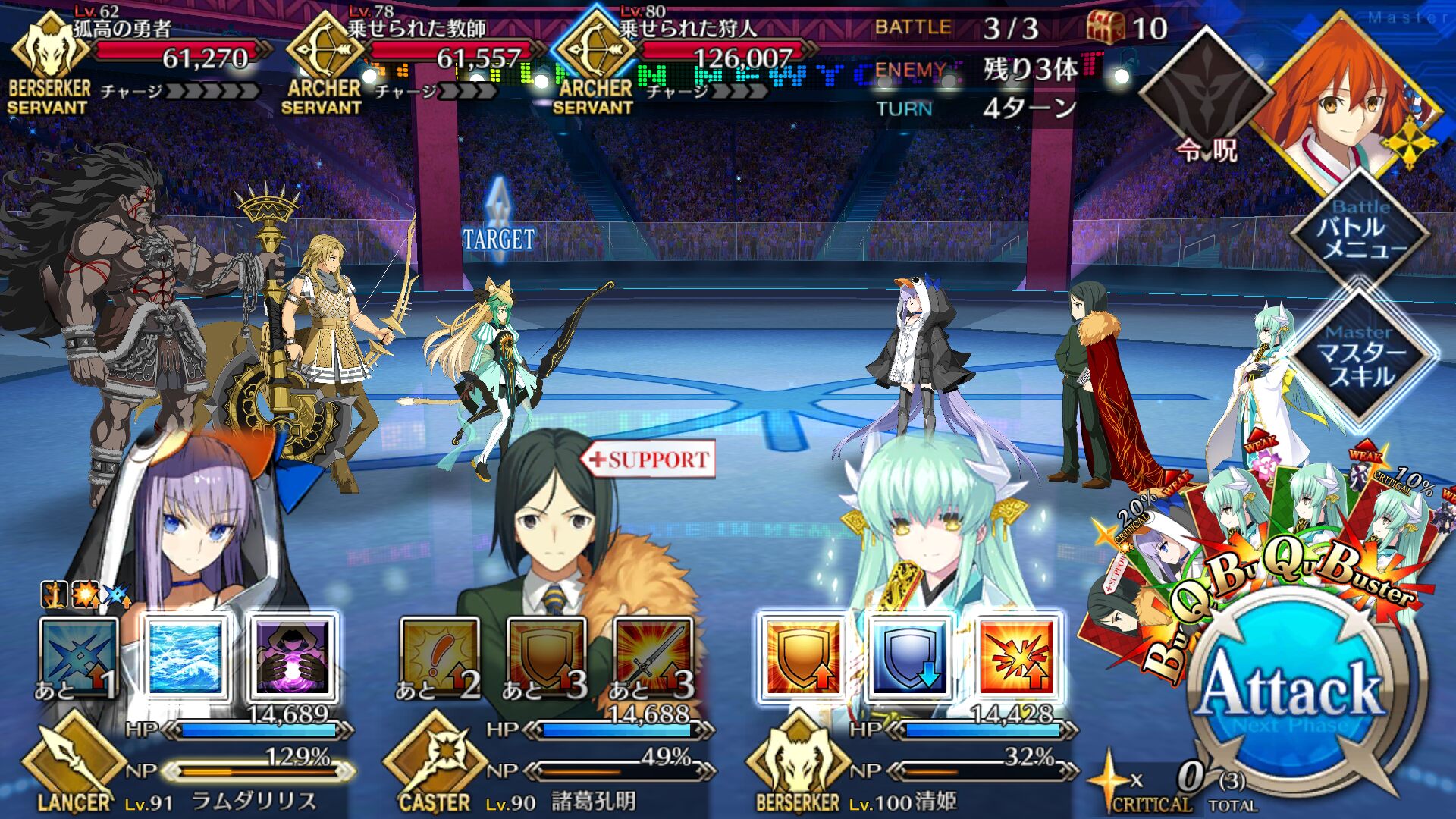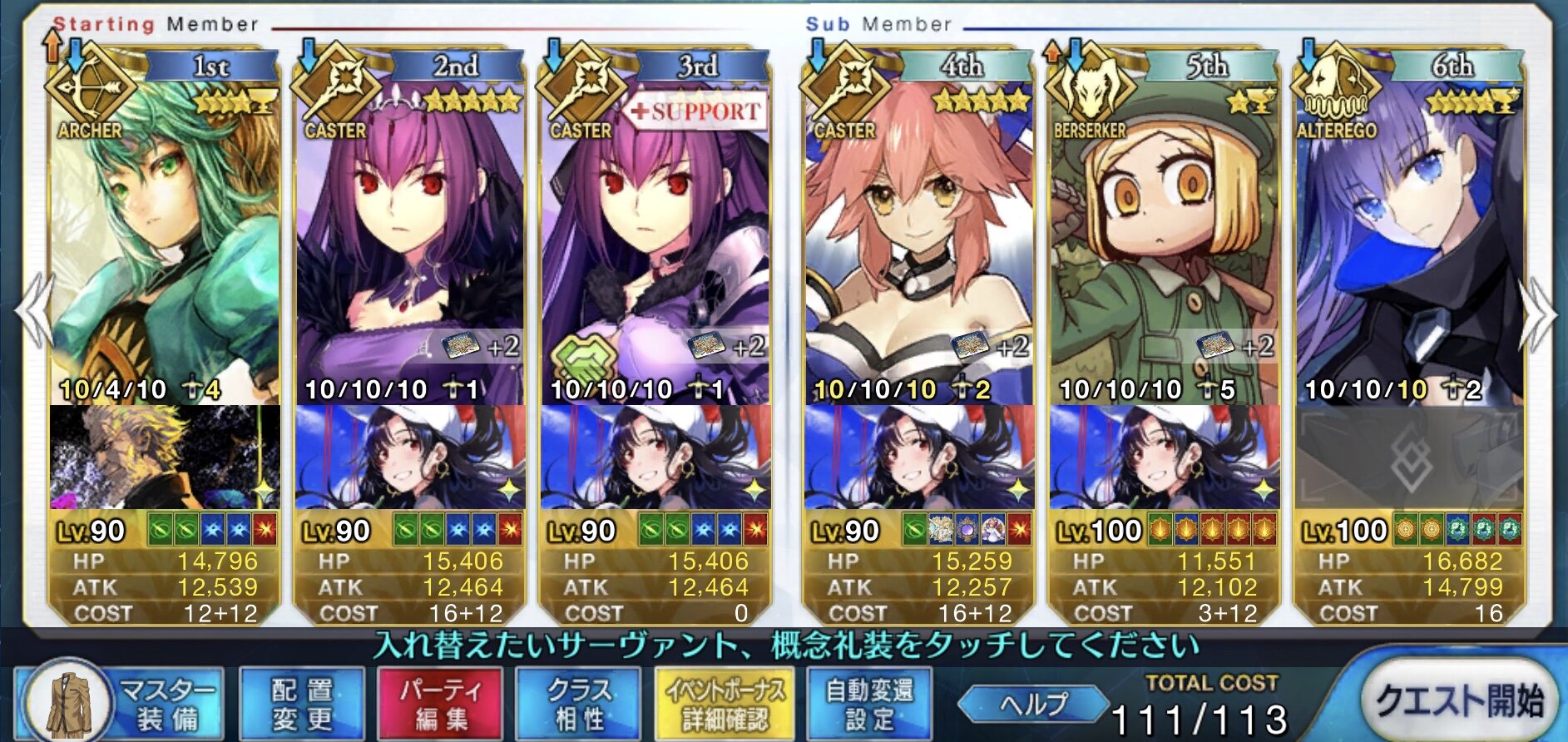 取り敢えず、かなり短時間で宝具使う場面が出てくるから孔明とマーリンが逆にして、次にフレンド枠をゲオルギウスや絆ヘラクレスのように確実に数ターン凌げる連中にしておくと良いと思う>>38