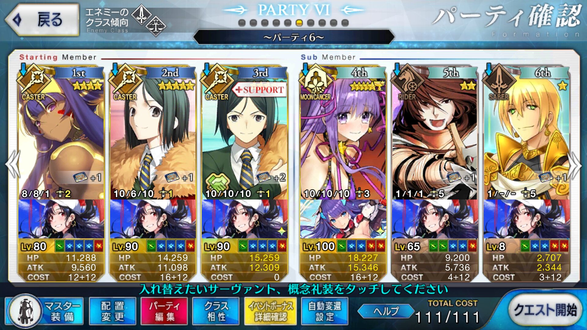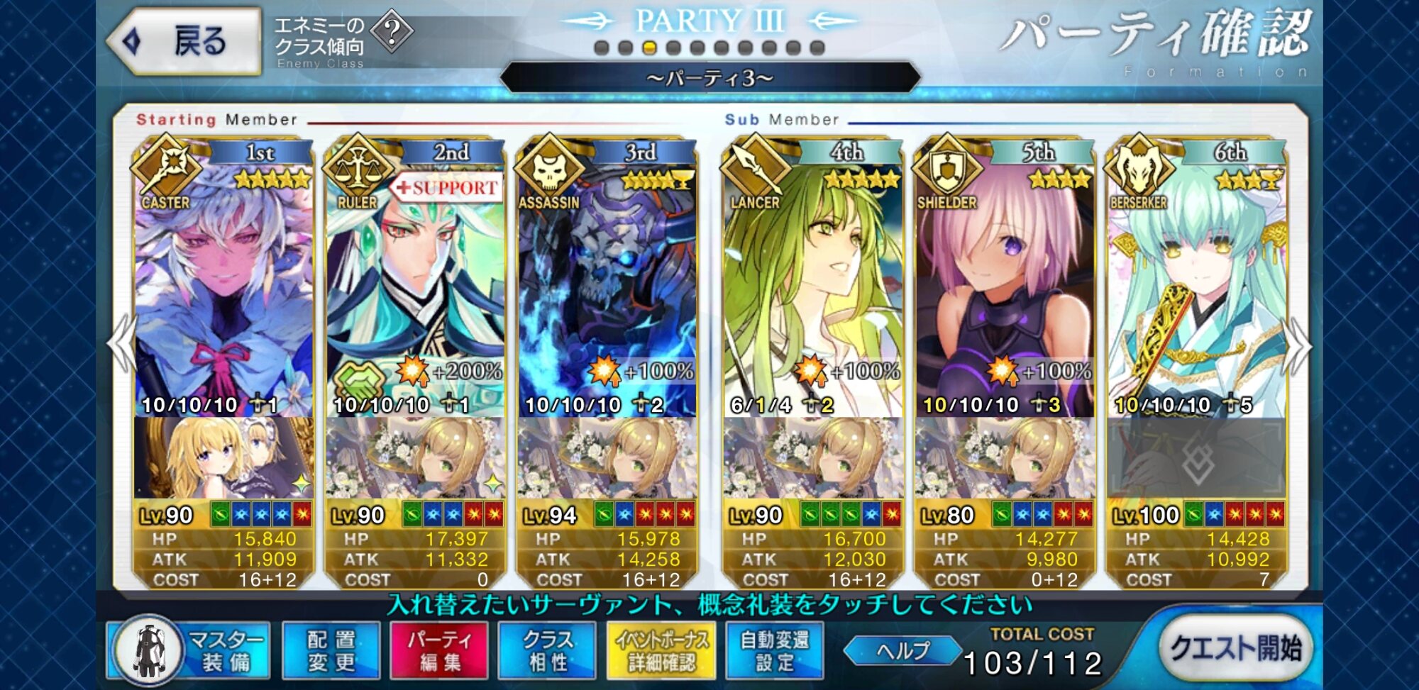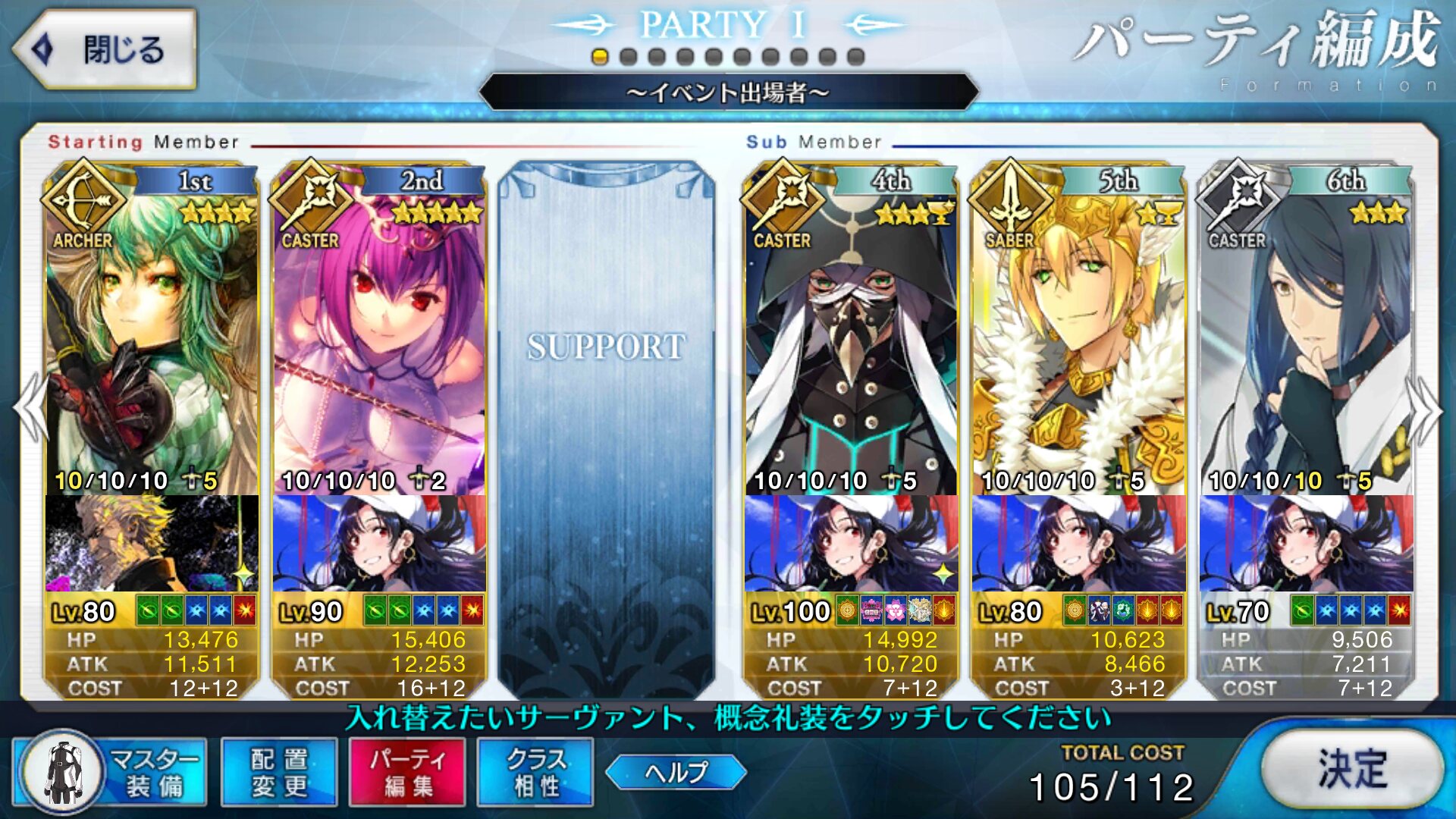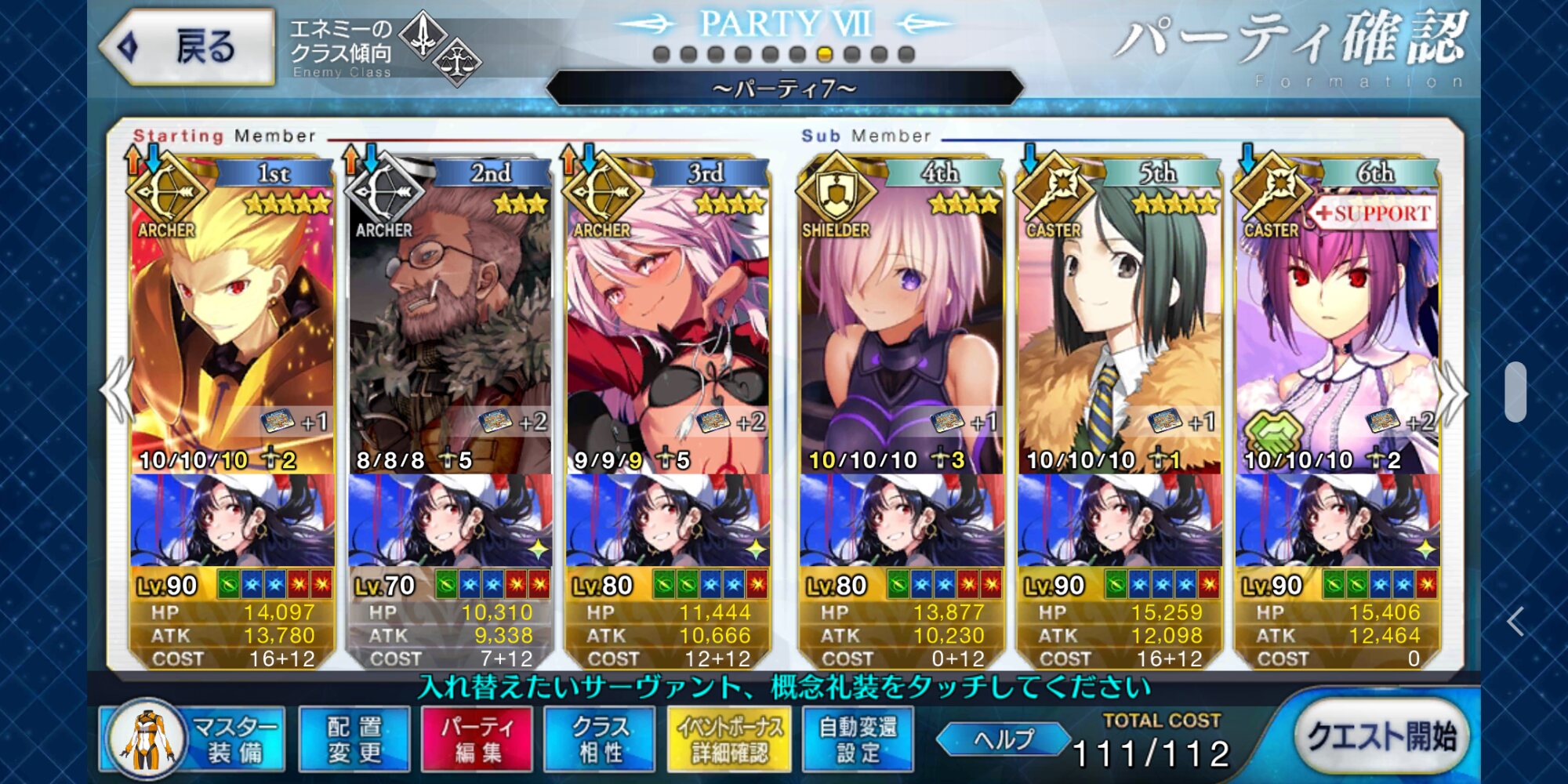 取り敢えず、かなり短時間で宝具使う場面が出てくるから孔明とマーリンが逆にして、次にフレンド枠をゲオルギウスや絆ヘラクレスのように確実に数ターン凌げる連中にしておくと良いと思う>>38