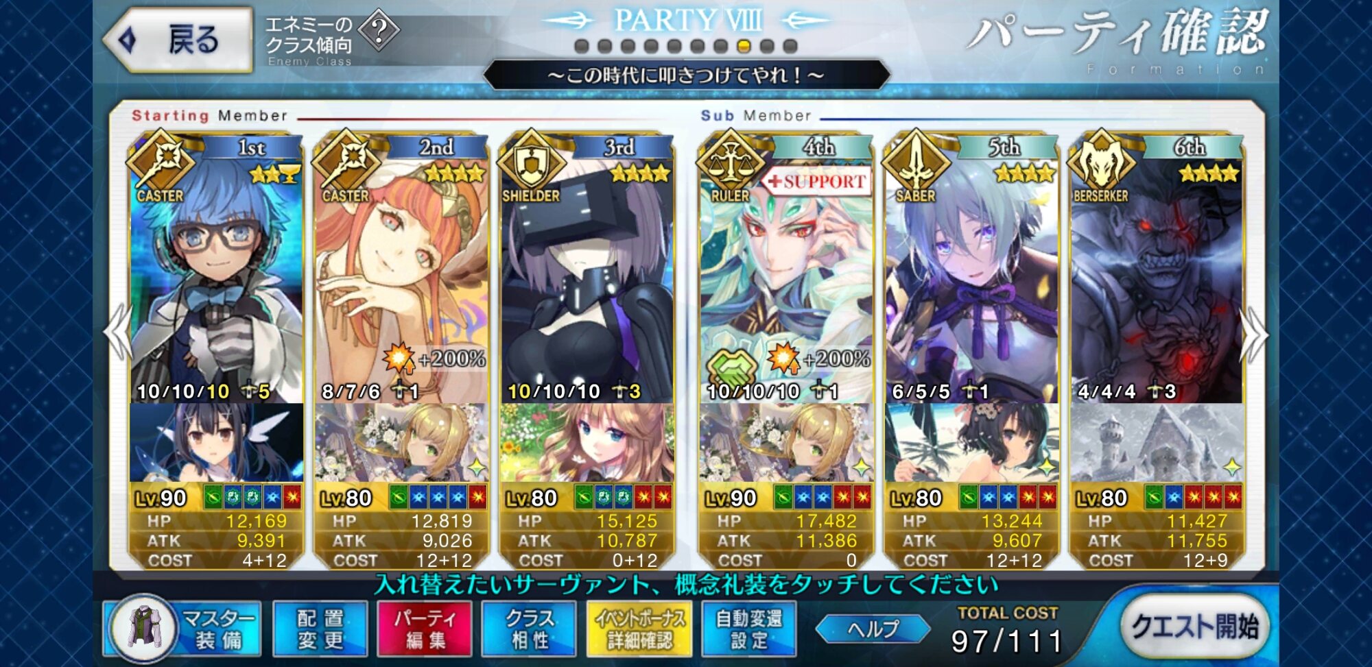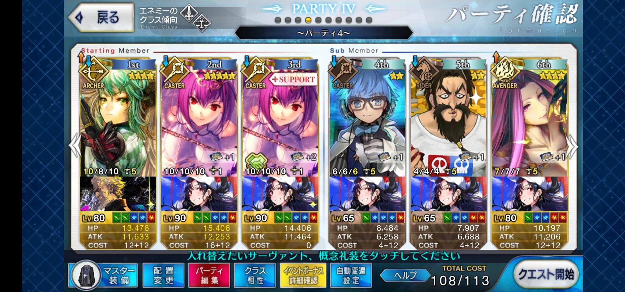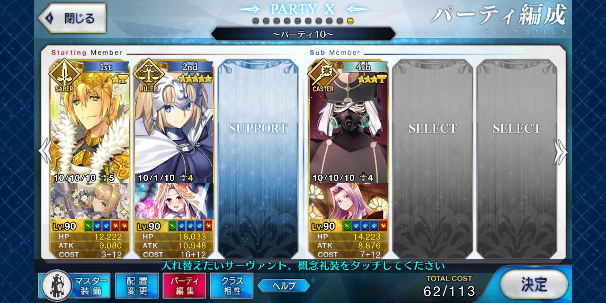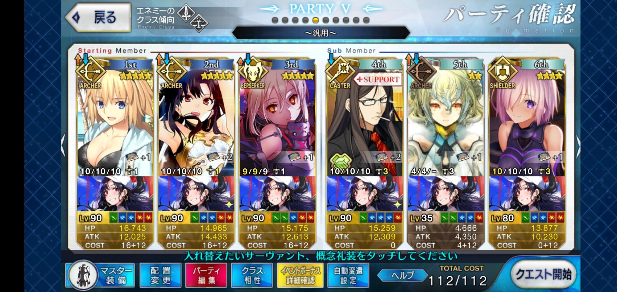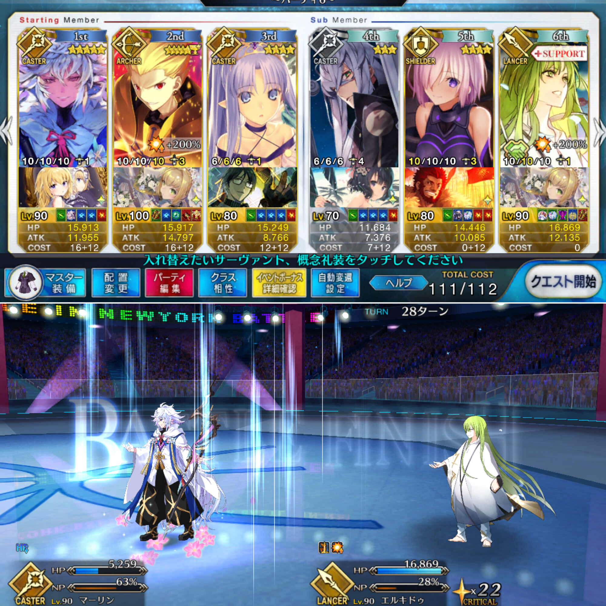 取り敢えず、かなり短時間で宝具使う場面が出てくるから孔明とマーリンが逆にして、次にフレンド枠をゲオルギウスや絆ヘラクレスのように確実に数ターン凌げる連中にしておくと良いと思う>>38