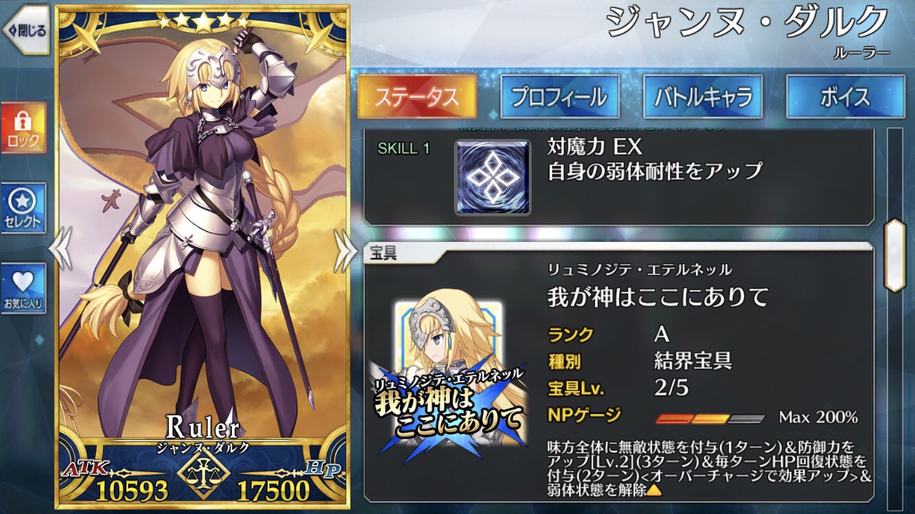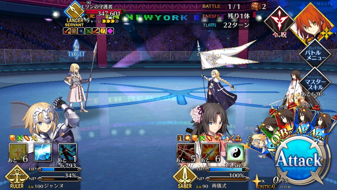 ジャンヌはやめといたほうがいい。クラス相性で不利だからルーラーとしての耐久力が全く発揮されない。それやるならまだ始皇帝の方がターン数稼ぎやすい。