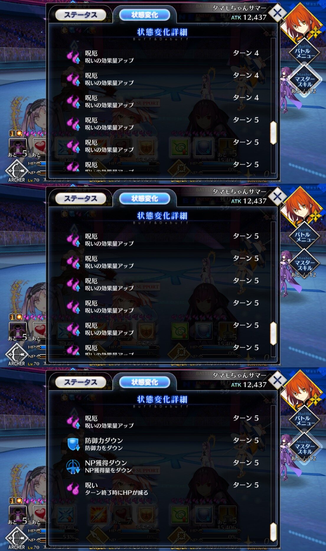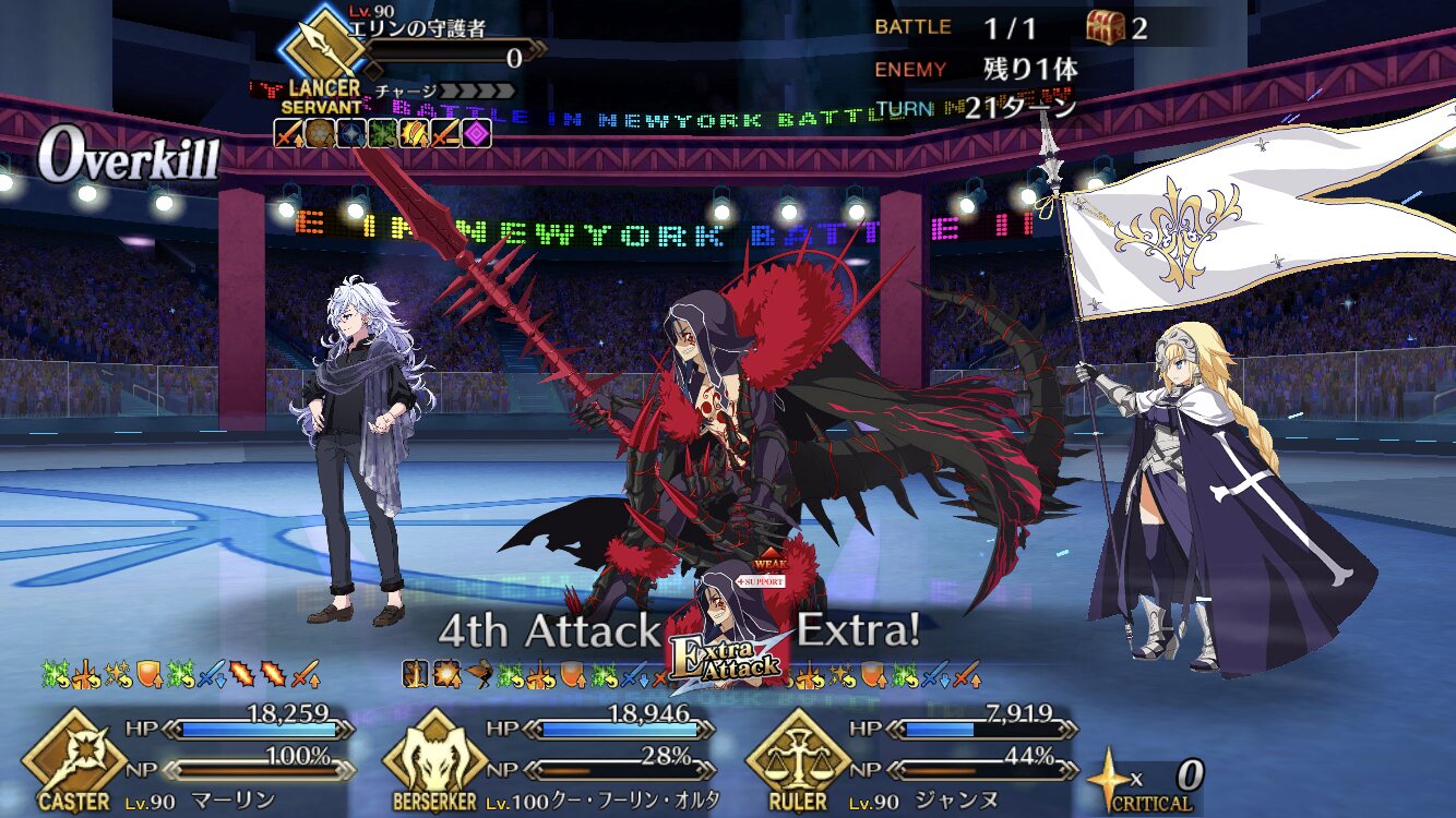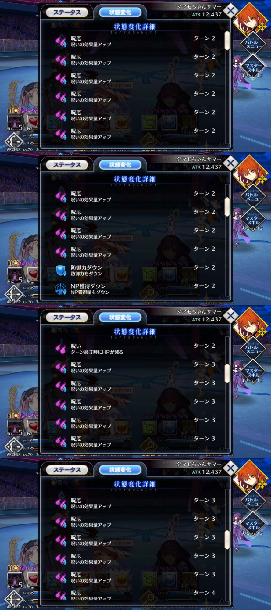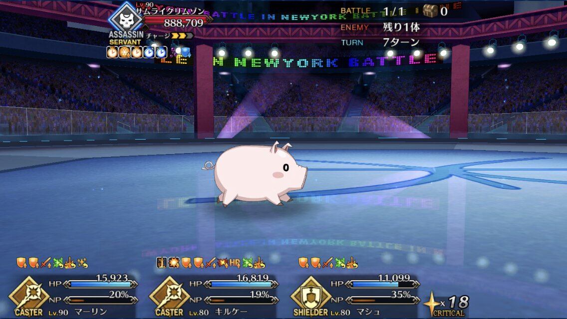 トリガーがわからんけど時々味方全体に「最大HPダウン+敵のHP回復」か「NP減+敵のチャージ増加」がとんでくるな