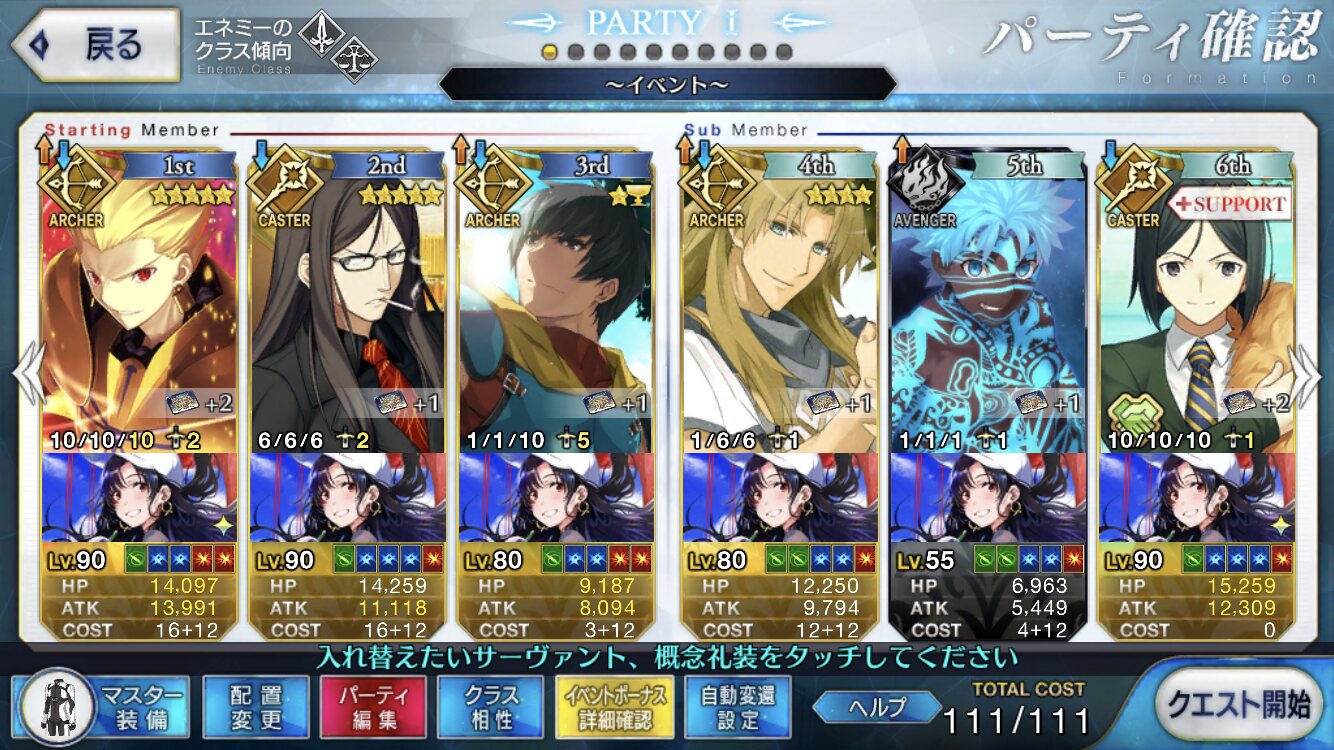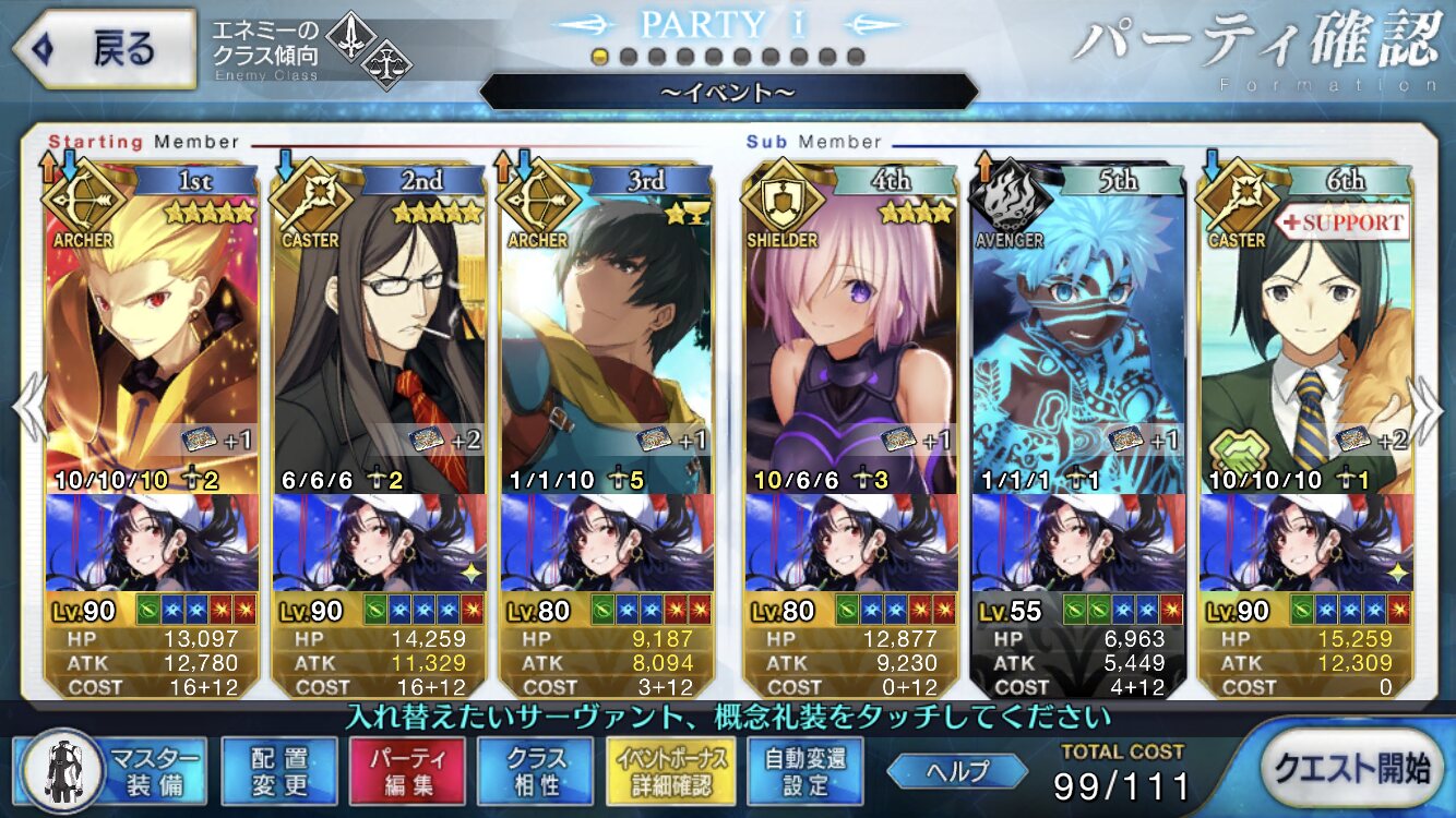 この辺気をつければすぐにいけそうね。特攻礼装頼っちゃったし次はなしでやろうかな早速表に記事上げてくれたようで管理人さん有難う