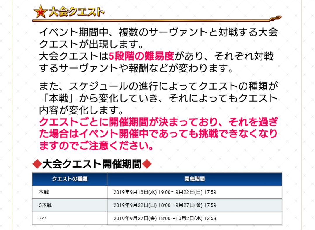 ◆大会クエスト開催期間◆