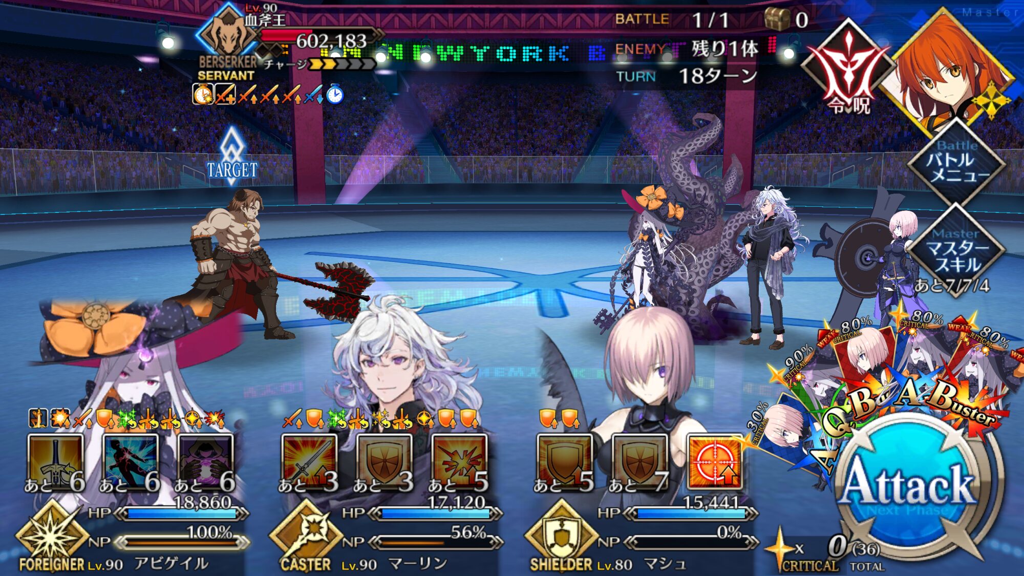 (宝具Bクリチェイン出来るターンに英雄作成し忘れたせいで17ターンもかかった)魅了後の裏切り、これHP吸収以外にNP吸収もあるのか