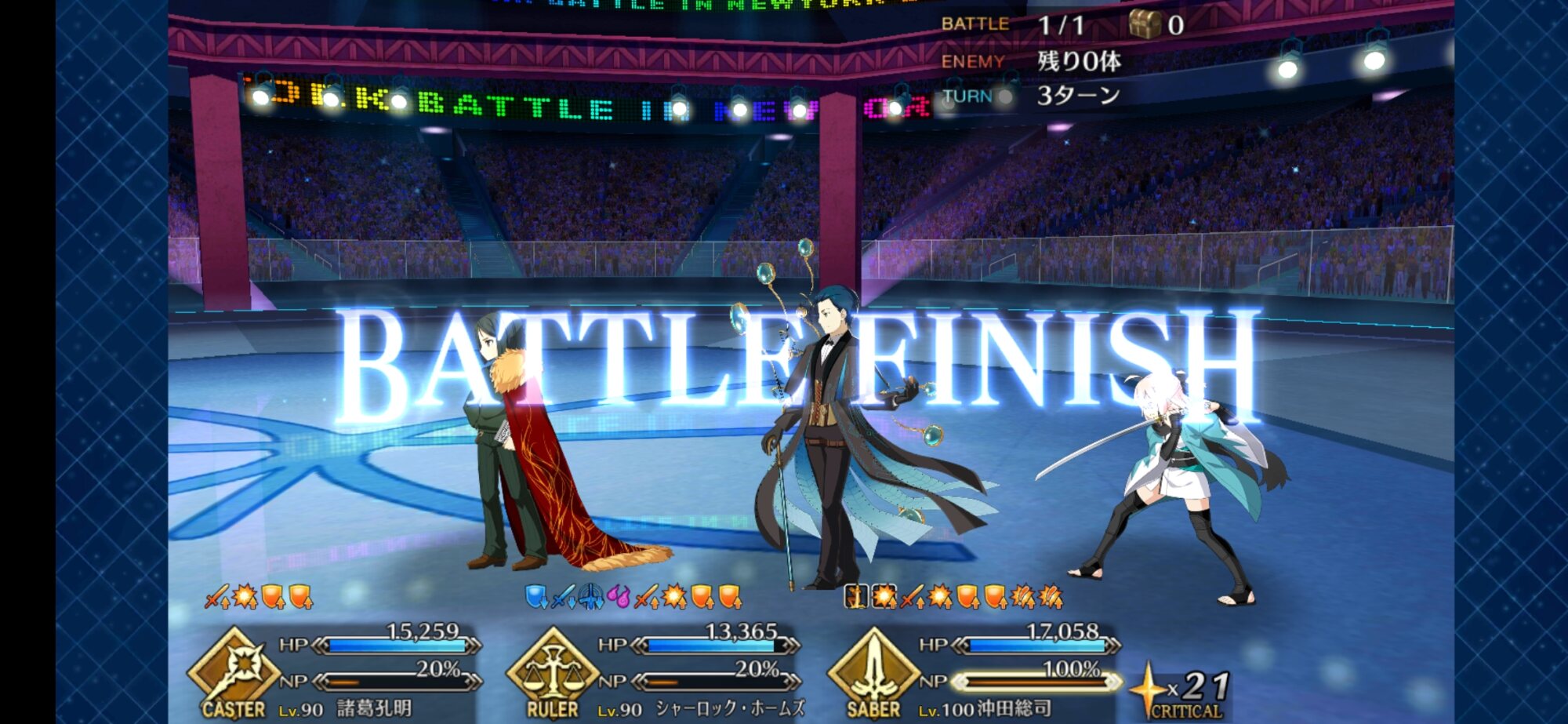 ホームズは本戦フィナーレの確率回避を無効化してクリティカル入れるバリツの鬼だったし、今後も活躍してもらうわ。まさかのレティシアさん大活躍である