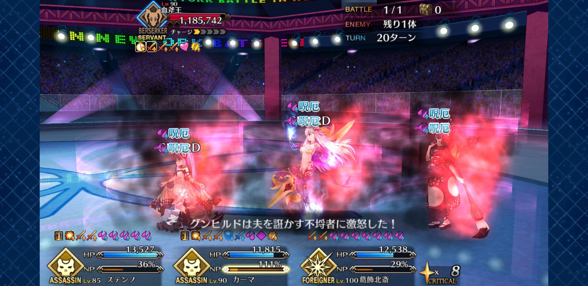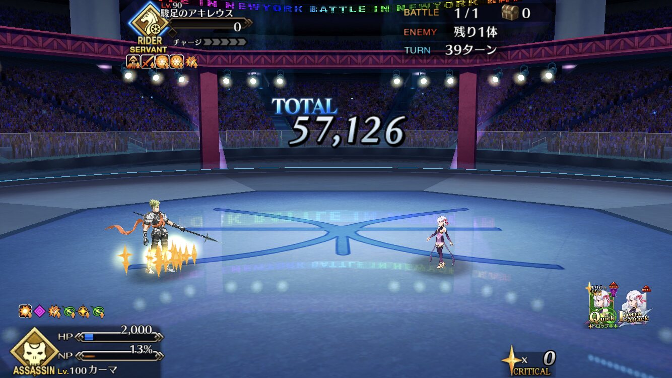 そう、ギル祭でアサシンを活躍させられる機会が全くなかったことだ。バーサーカーや等倍殴りをするなら、補正でATKが下げられているアサシンを使う理由があまり湧かないし、ライダーのアキレウスはアサシンを見ると轢き殺しにかかるチキンになってしまったし!