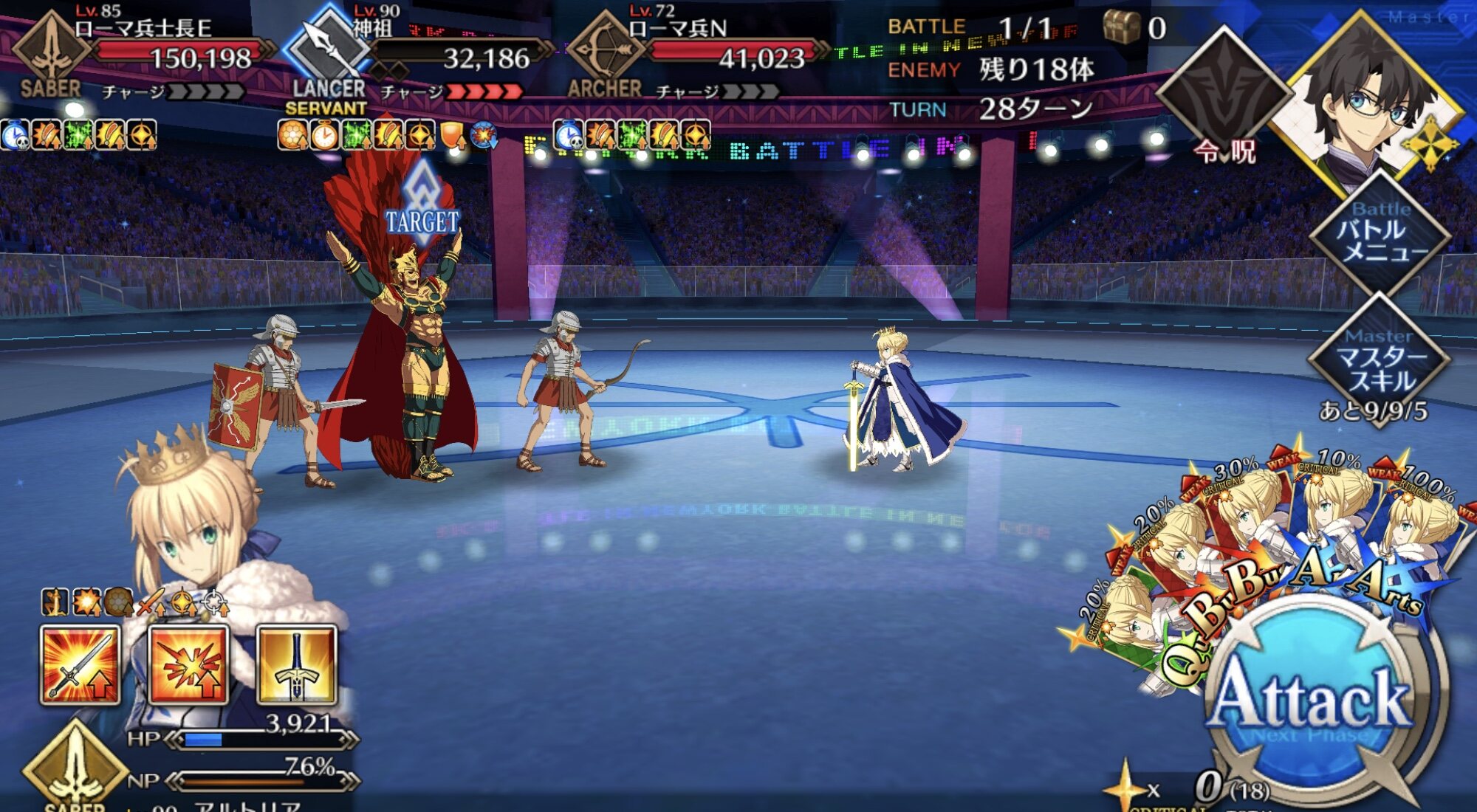 ?「俺(ローマ)の麗しのアルトリウスと神祖殿の決闘か。実に見応えのある一戦だ早く俺(ローマ)も天文台のメイガスに召喚されて歴代のローマの皇帝達や騎士王と円卓の騎士と技を凌ぎながら戦いたいものだ」>>24