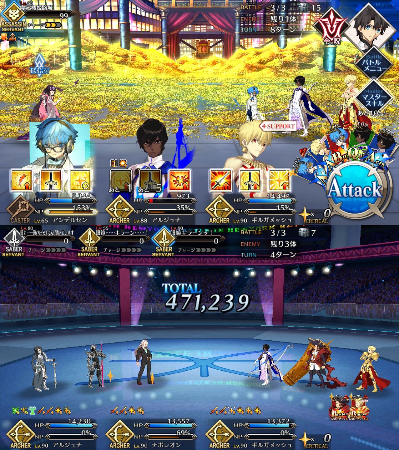 何かしらモチベーション上げる要素は必要だからね(敵のライネス嬢にゴルゴーンのスキル3を使いながら)イシュタル、モーション追加と言ってるけど、頭身も上がってるし宝具演出も変わってて、メルトリリスのモーション改修と同じくらい手が入ってる気がする。
