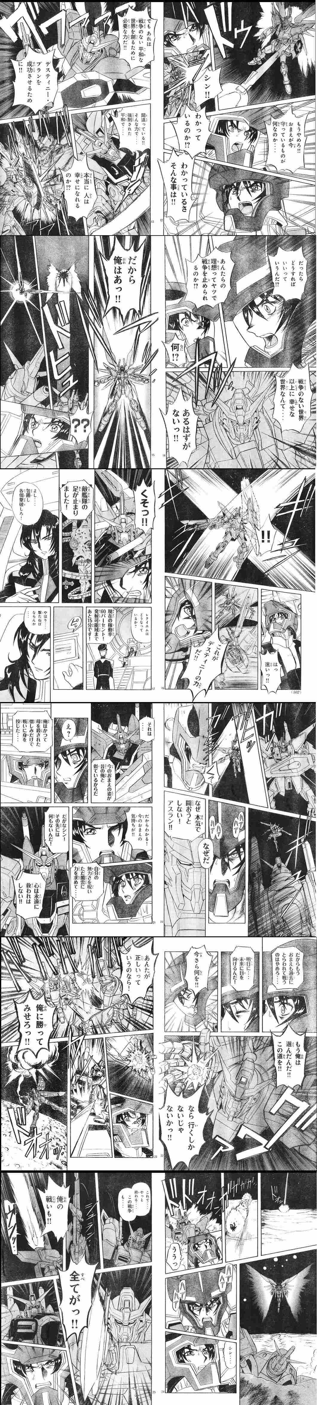 こうみるとやっぱりシンって終盤空気というか、叫んでばかりで何言ってたかとか一切印象残らんよな。逆シャアのギュネイみたいなポジションになっていた高山版アスランはミネルバでやめろシン!やめろキラ!やめろお!やめろお!とミネルバの軍人からしたら煩いうぜえ実況することなく