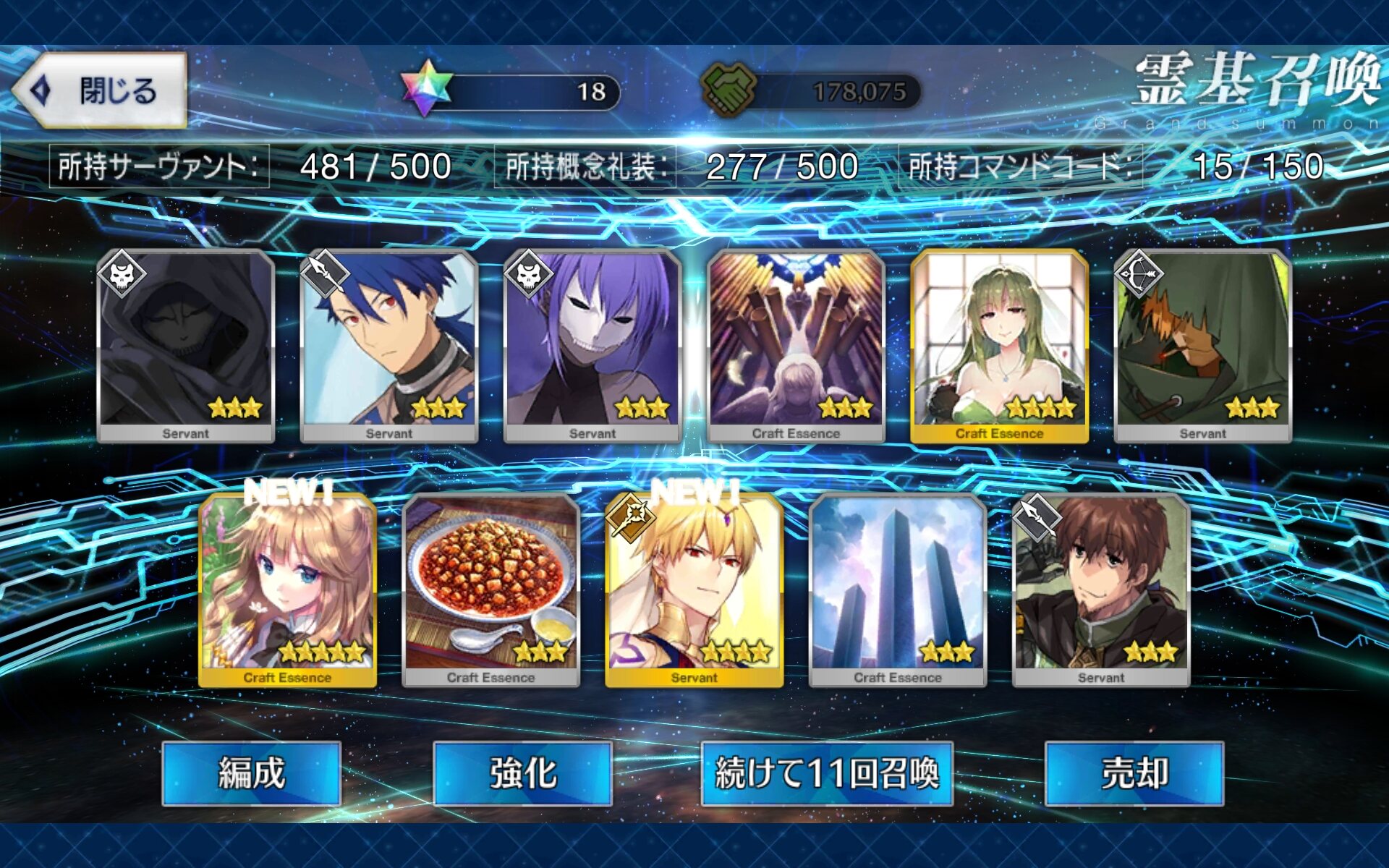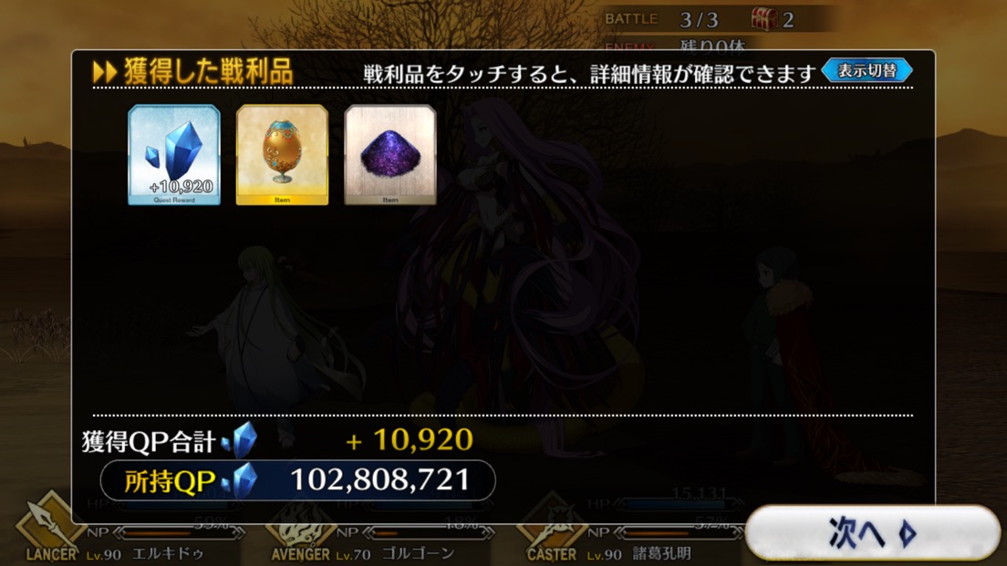 んんー、こっちもちょっと術ギル絡みで新しい組み合わせ思いついたから、鍛えて試運転してみるかー。と思ったがウチのカルデアの伝結とっくに枯渇してたので土台無理な話であった。伝結あと30個欲しい。