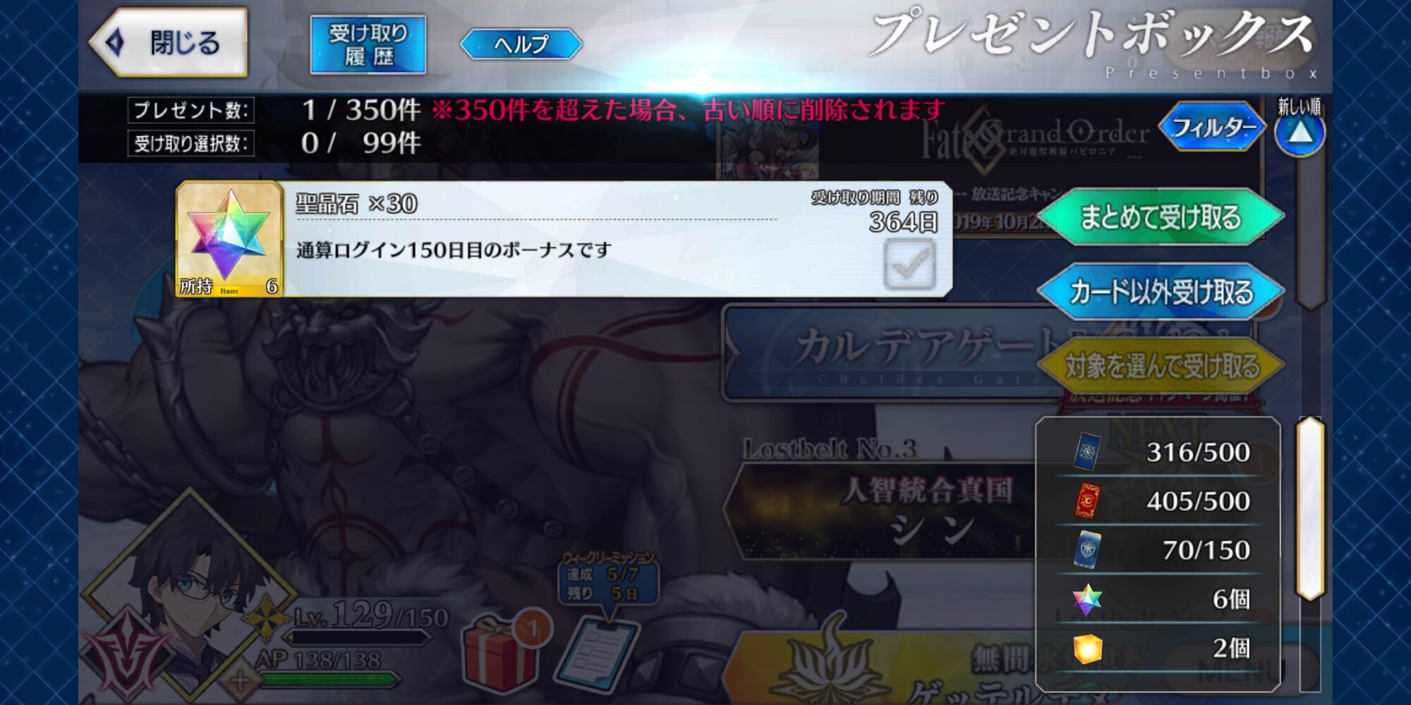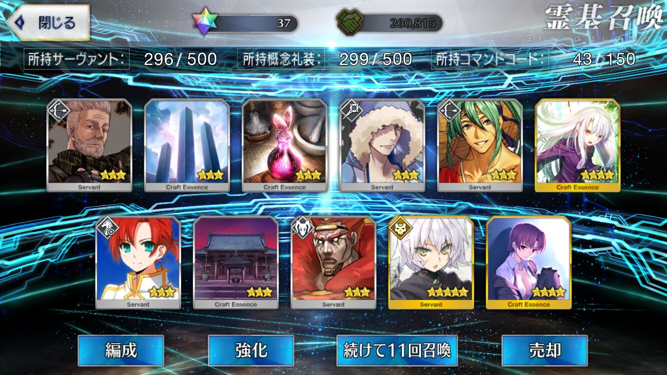 ちなみに願掛けにマイルームにギルガメッシュに置いてたんだけど
