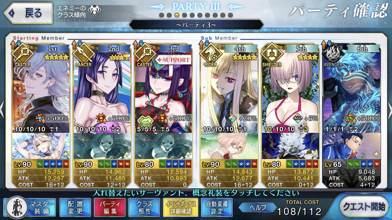 上にもあるけれどサポ揃ってるなら宝具5のフレ借りる、もしくはアタッカーを二枚にして宝具連打とかは必要かも>>38