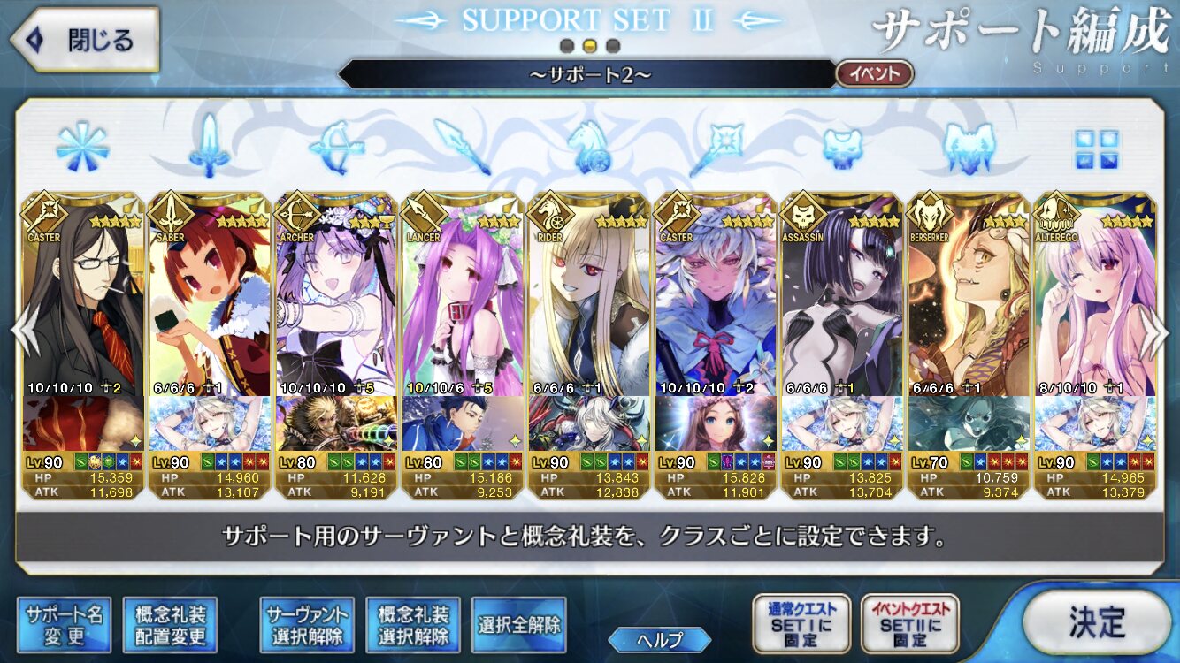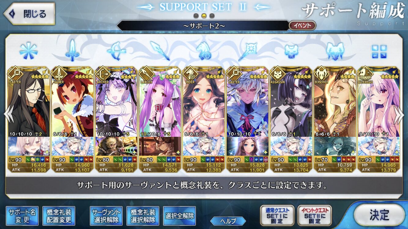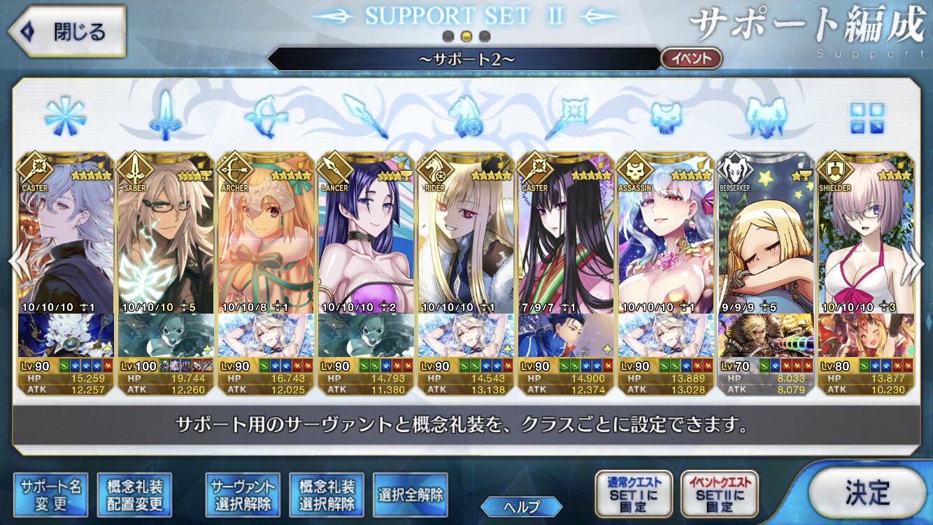 スーパーイシュタルといいアロハ騎士達といい、良質デザインなのに霊衣として披露もされない衣装達よ