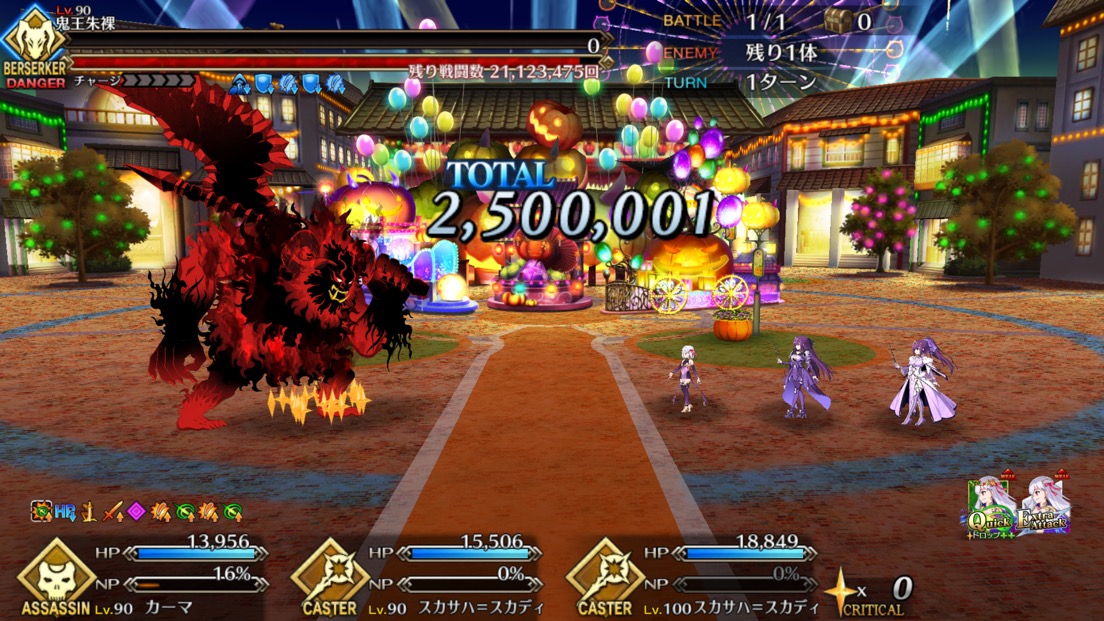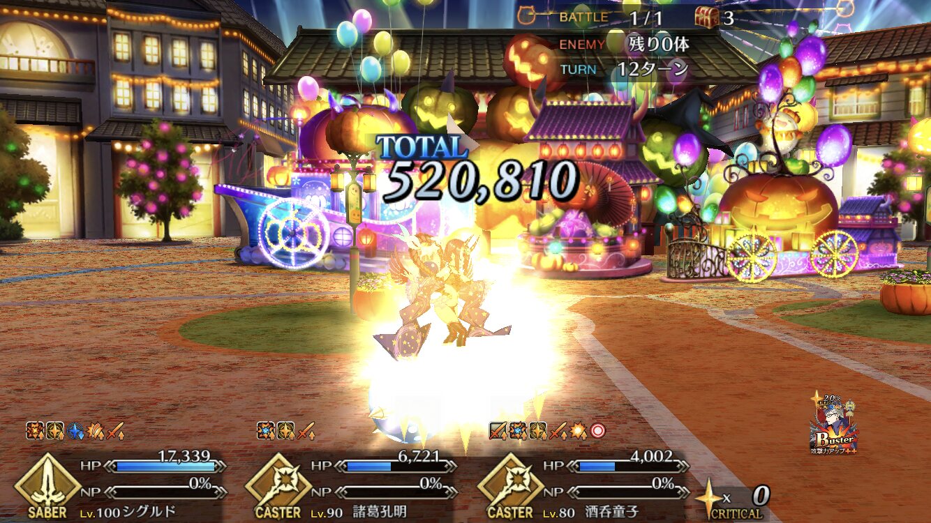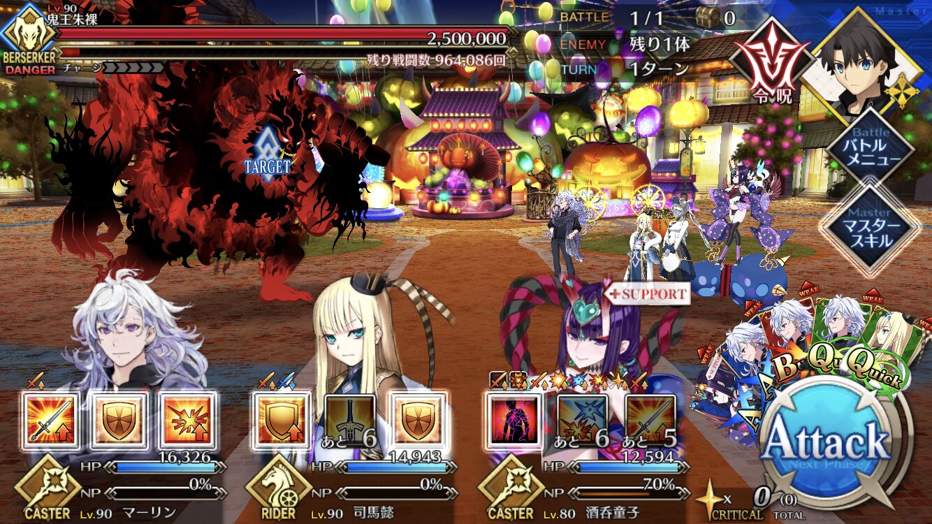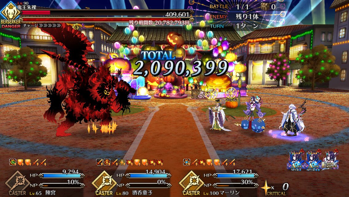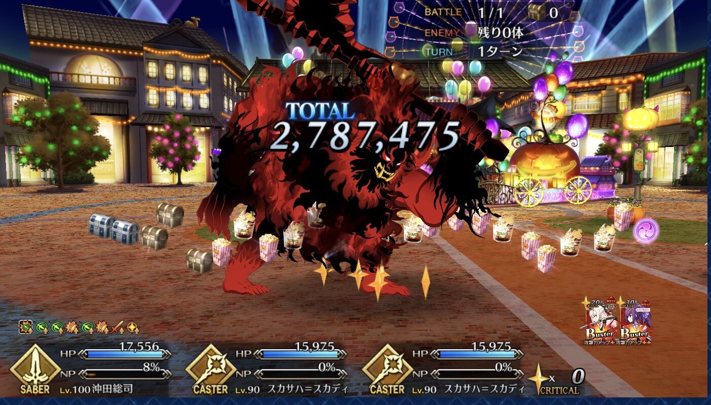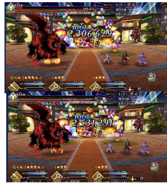 術酒呑にパフあったり一部敵クラスに変更あるようだから去年の参考にならんかもだけれど、特攻最大(500%)でもワンパンは厳しかった、と記憶
