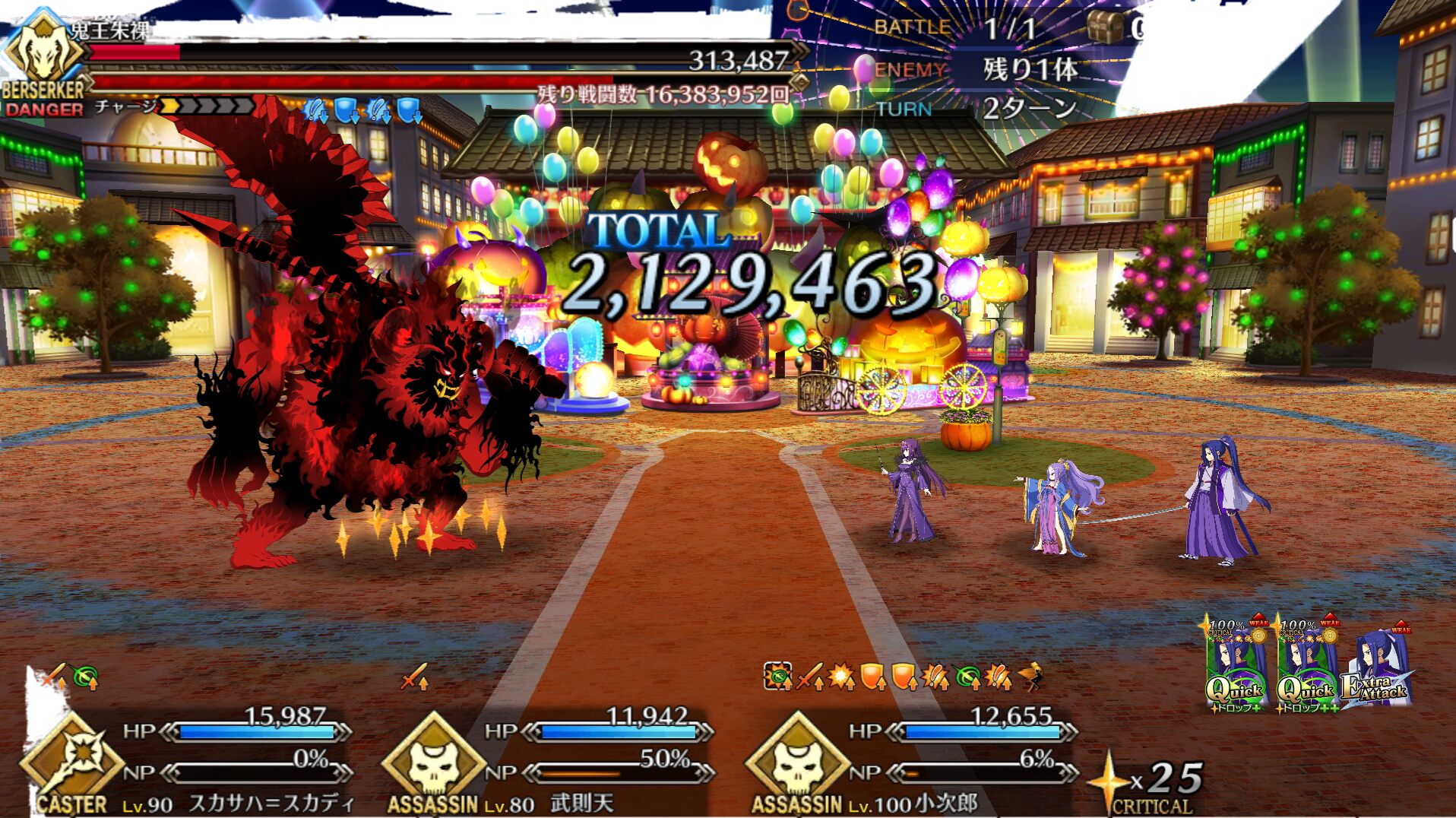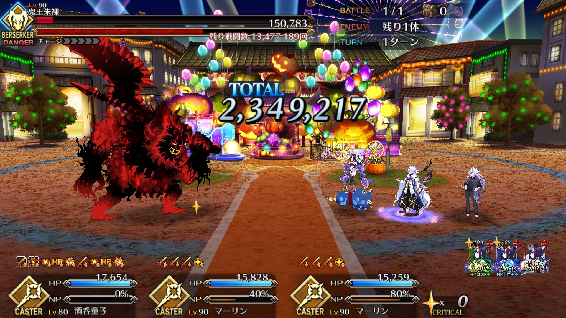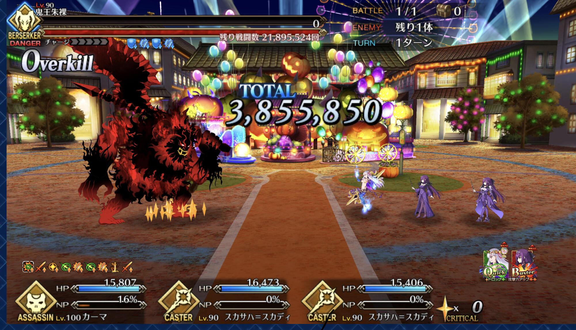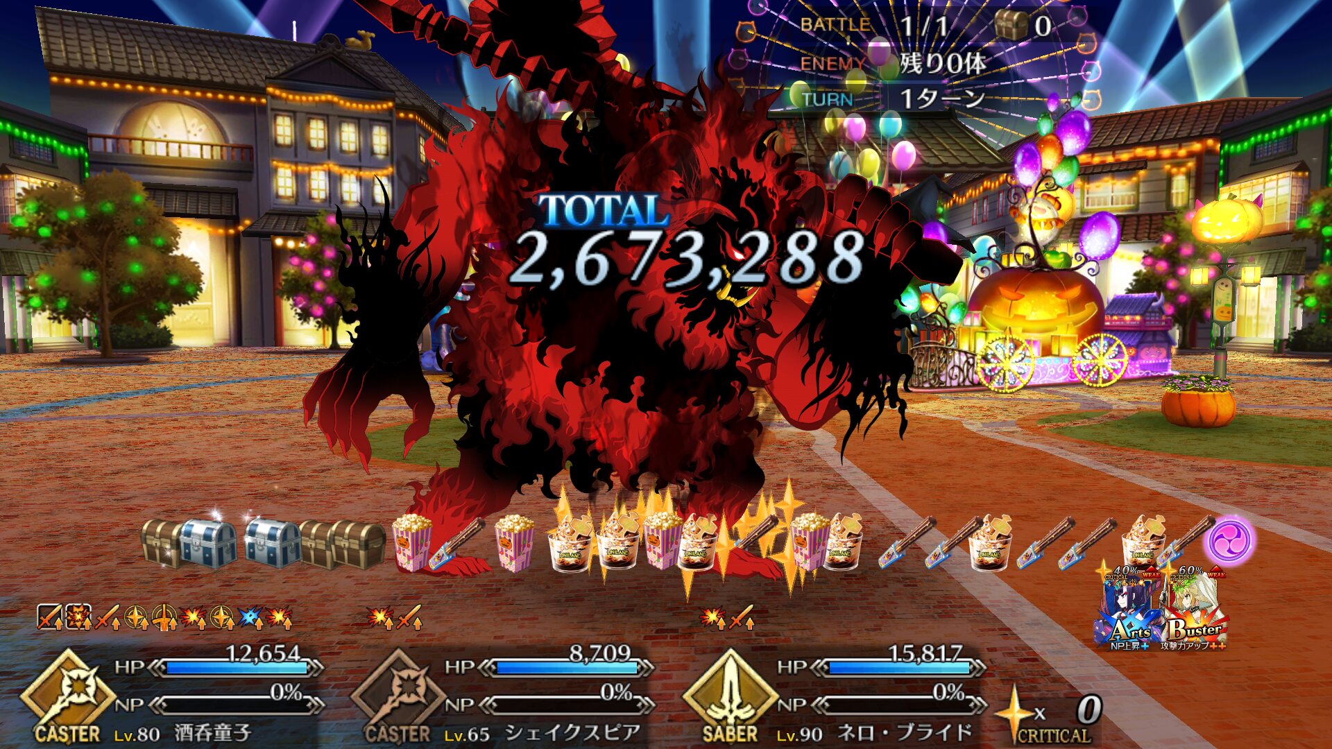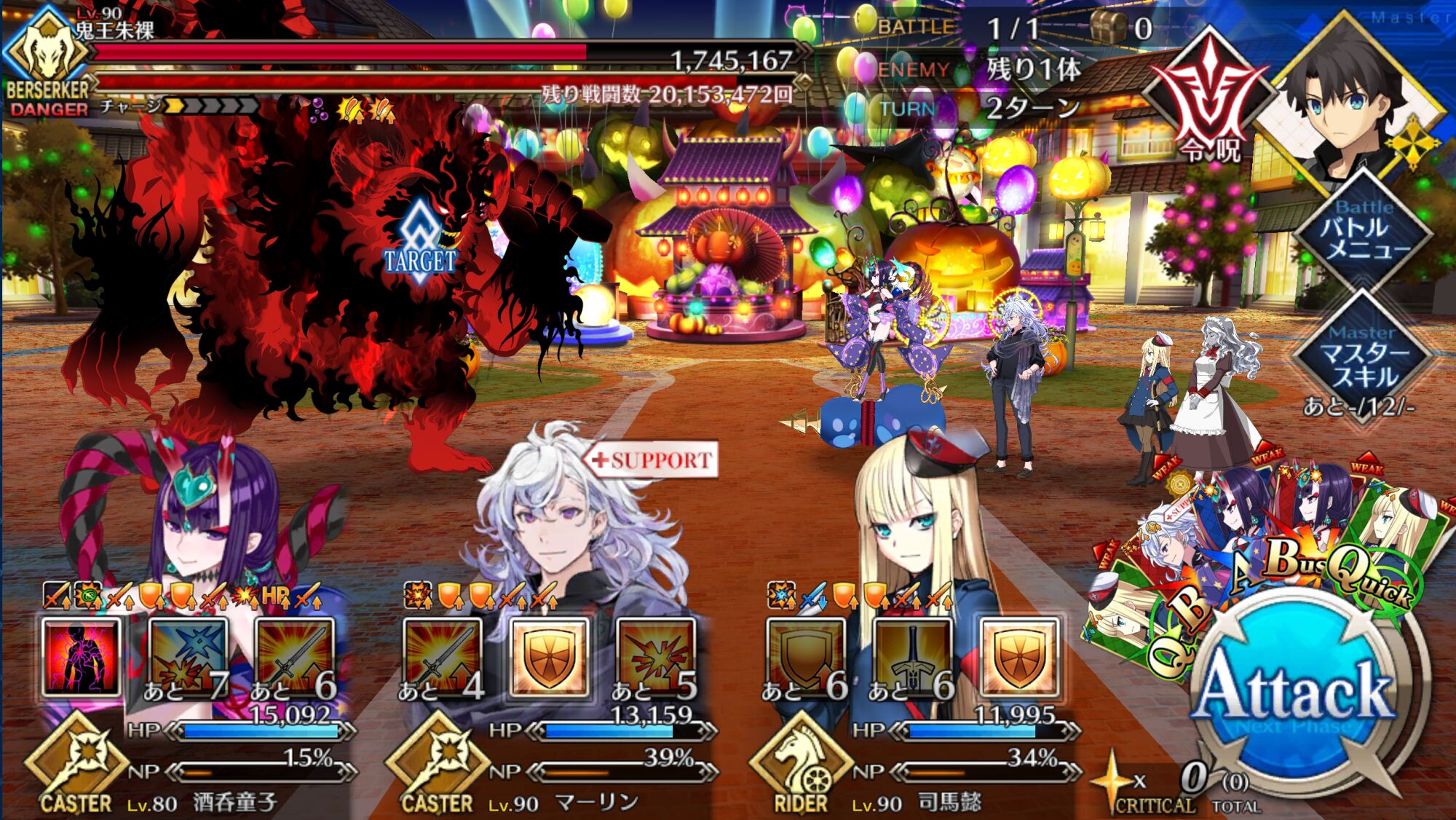 術酒呑にパフあったり一部敵クラスに変更あるようだから去年の参考にならんかもだけれど、特攻最大(500%)でもワンパンは厳しかった、と記憶