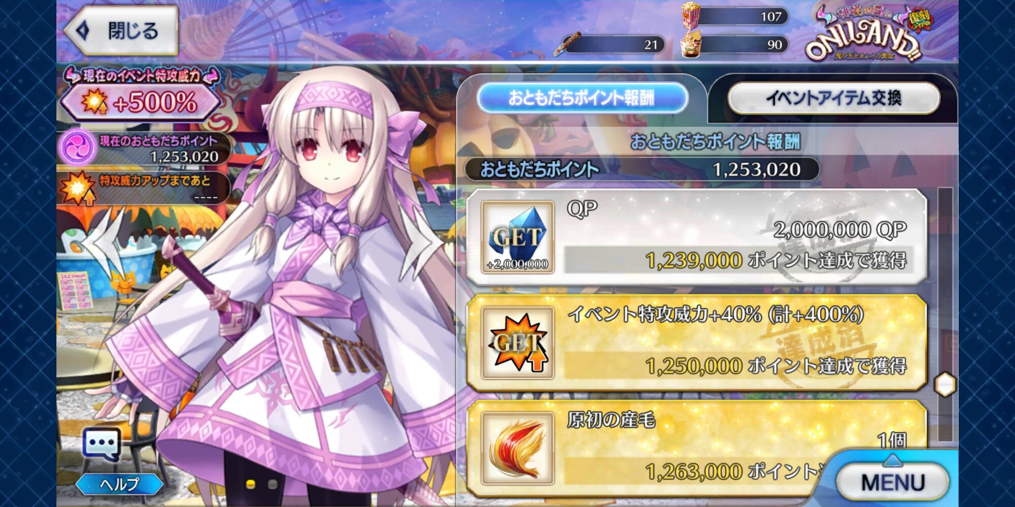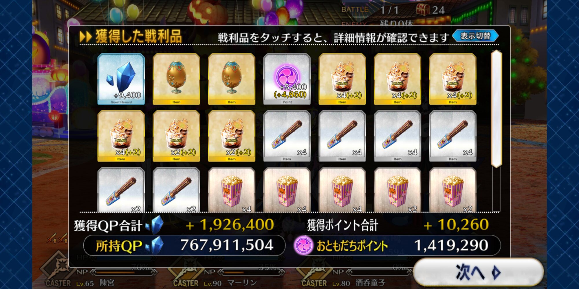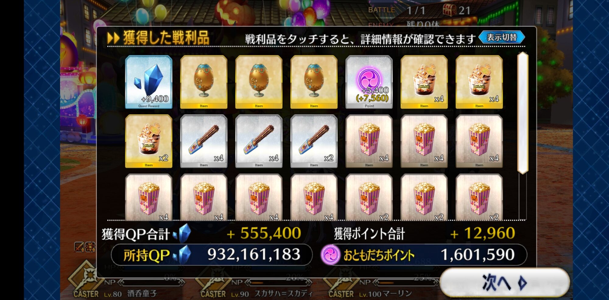 ボーナス礼装多めで銀と銅のアイテム交換も大方終わり。ポイントは100万超えた。