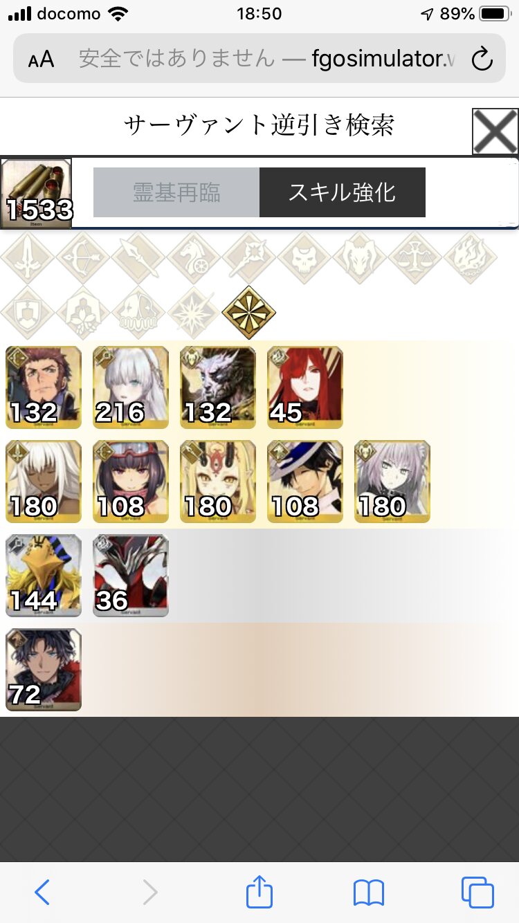 全部足りない→スキル石が足りない→素材とQPとスキル石が足りない→素材とQPが足りない→素材と伝承結晶と鯖が足りない