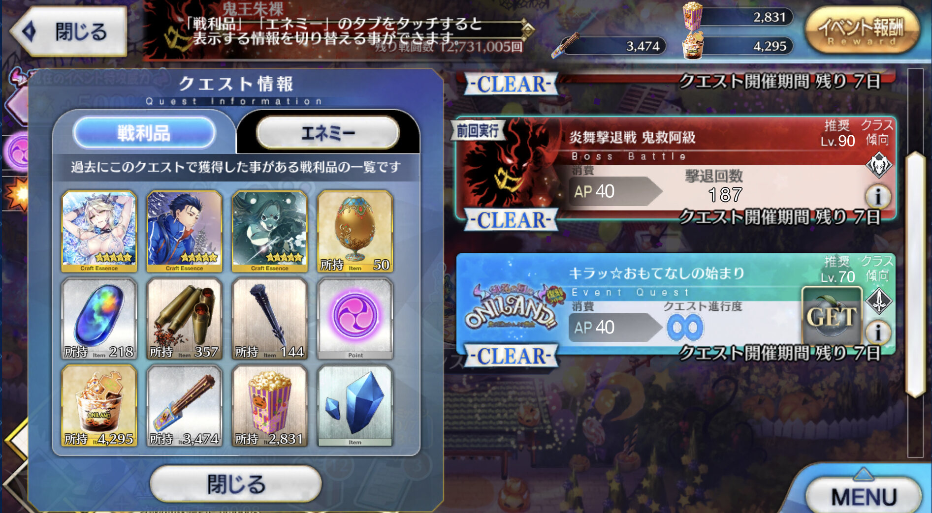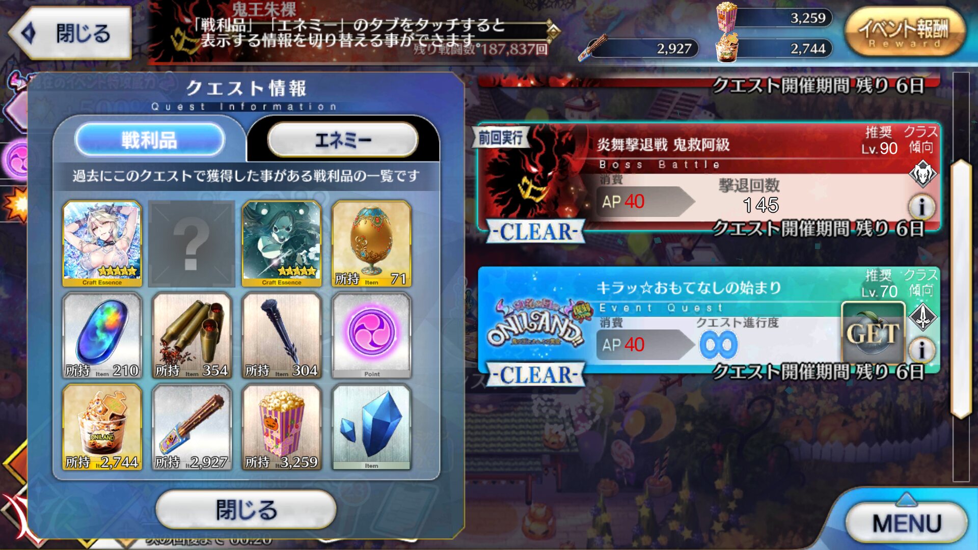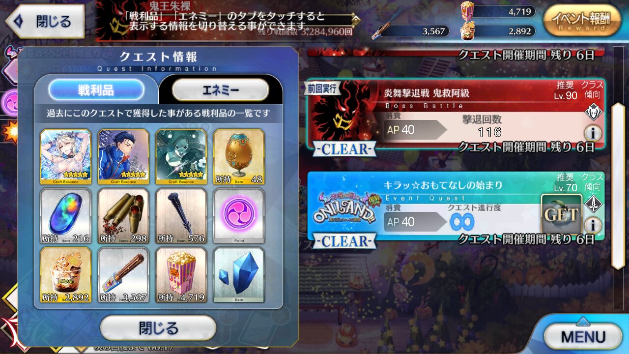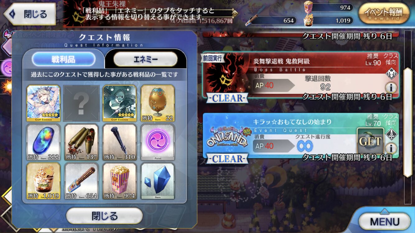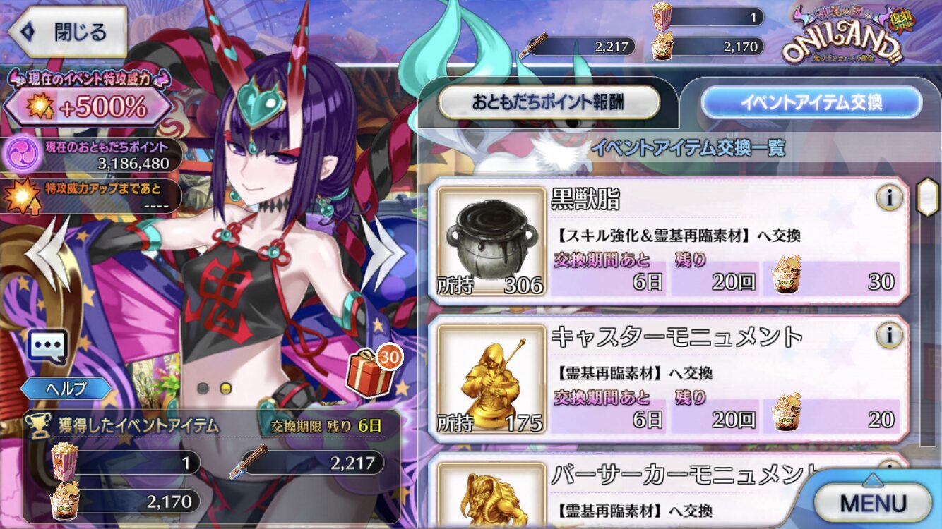 FGO2018・2019復刻ハロウィンイベント「神秘の国のONILAND‼︎〜鬼の王とカムイの黄金〜」の攻略スレッドです